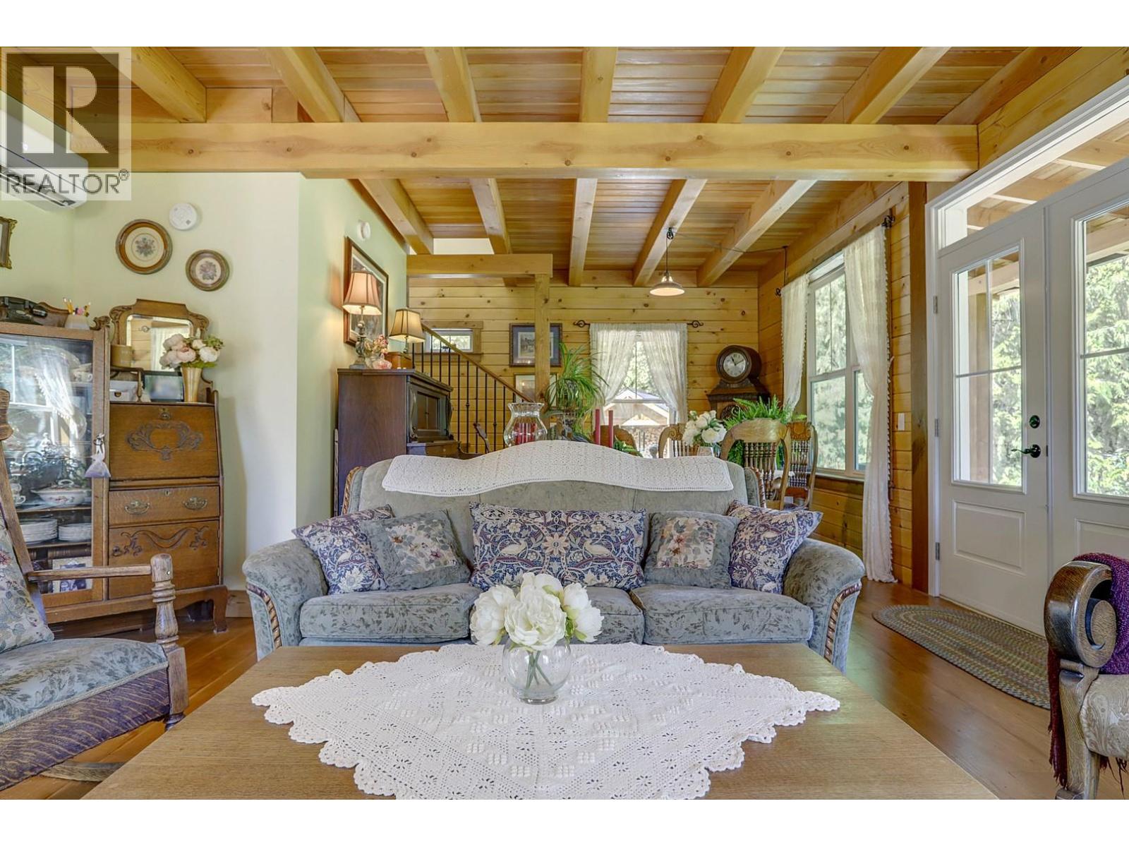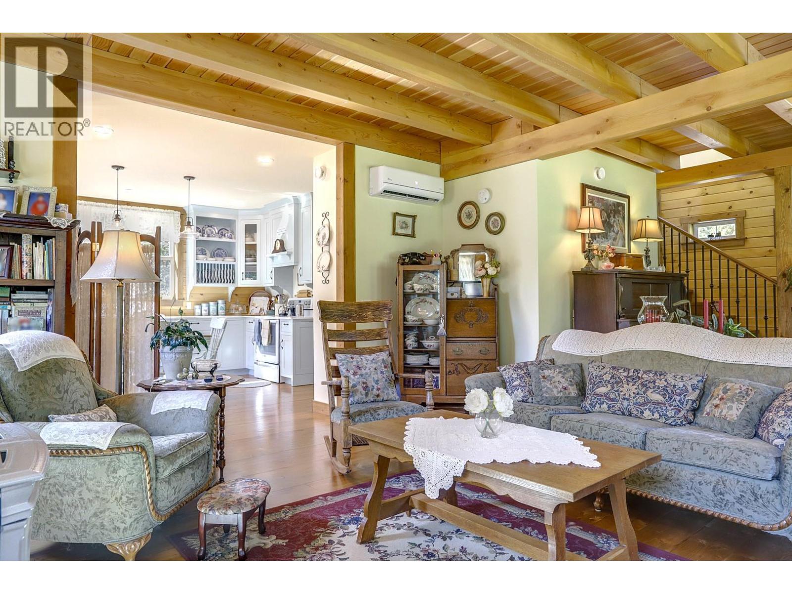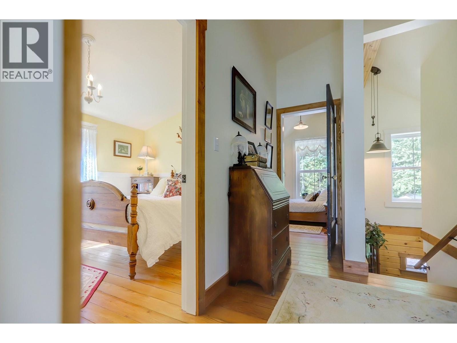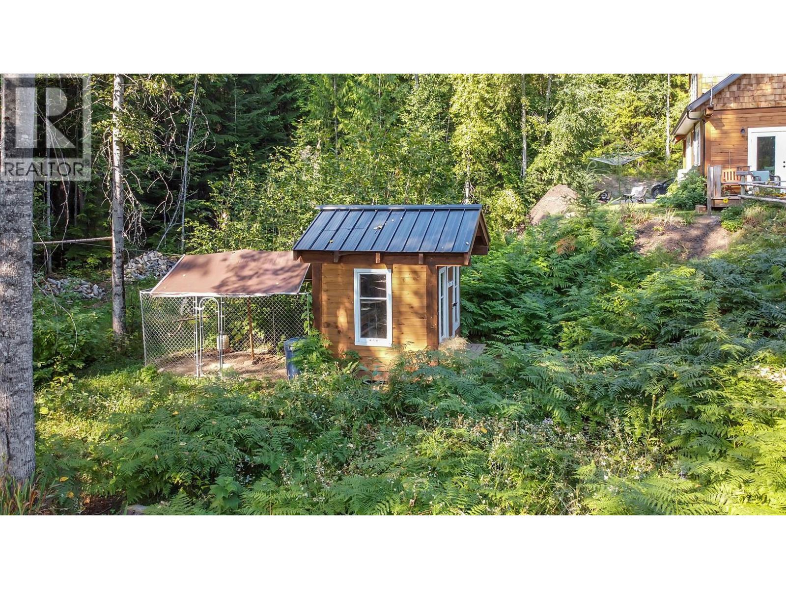 Tucked into the base of the Larch Hills, this magical 4-acre retreat feels like it’s been painted into the landscape. Winding garden paths & forest surround a 2021-built home that glows with natural woodwork & light, along with a picture-perfect ski/garden cottage tucked away for cozy apre ski stays. Two wells provide abundant water—one for the flourishing gardens & another for the home & cottage. Inside, the kitchen forms the heart of the home—bright, striking, & crafted with rich wood features. Upstairs, the primary suite is a serene escape, joined by a charming den, a generous second bedroom, & a spa-like bath complete with a classic clawfoot tub. The wide front porch offers privacy & quiet, where no neighbours—or even the guest cottage—are in sight. The partially finished lower level provides a cozy family room, workshop, & ample storage. Whether it’s evenings by the fire, tending gardens through summer, or retreating into the stillness of the forest, this property is a true sanctuary—private, warm, & filled with character. Adding to the charm, is a quintessential chicken coop. A wood stove offers cozy warmth on winter evenings, complemented by the efficiency of a heat pump for year-round comfort. Practicality meets possibility with loads of parking & a flat, open area ideal for a future garage or shop. Every detail speaks to the pride & care with which it was built. Measurements care of iGuide & should be verified by a buyer, along with all information in the listing. (id:6770)