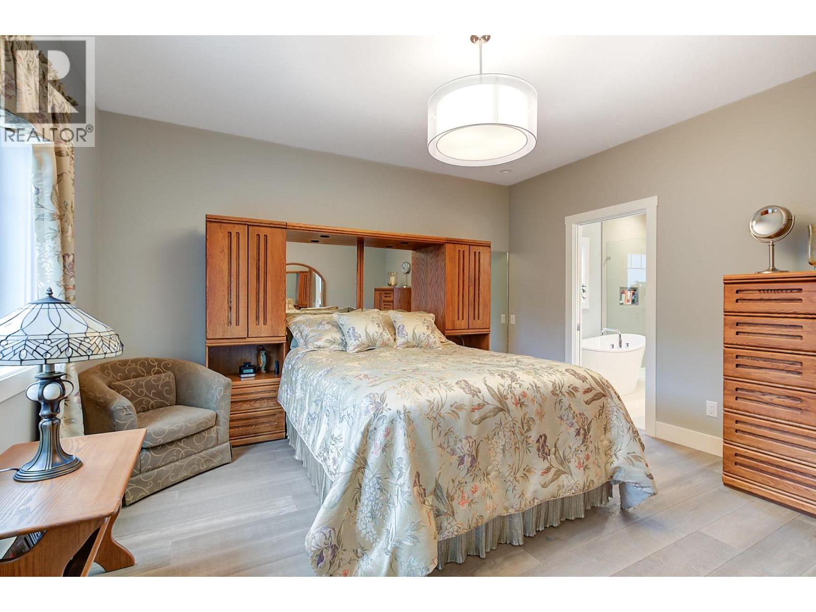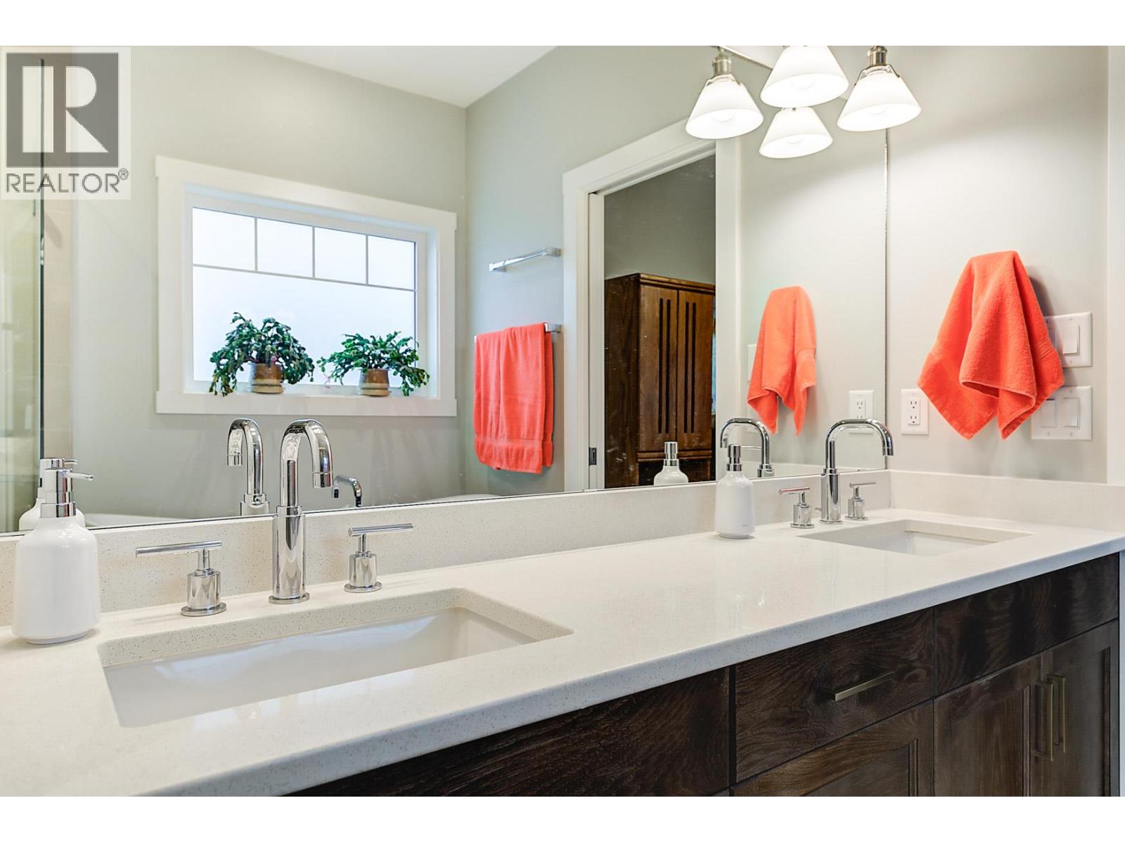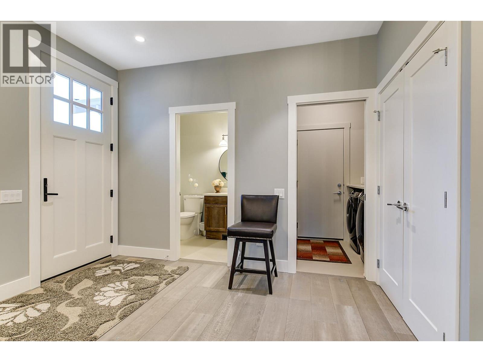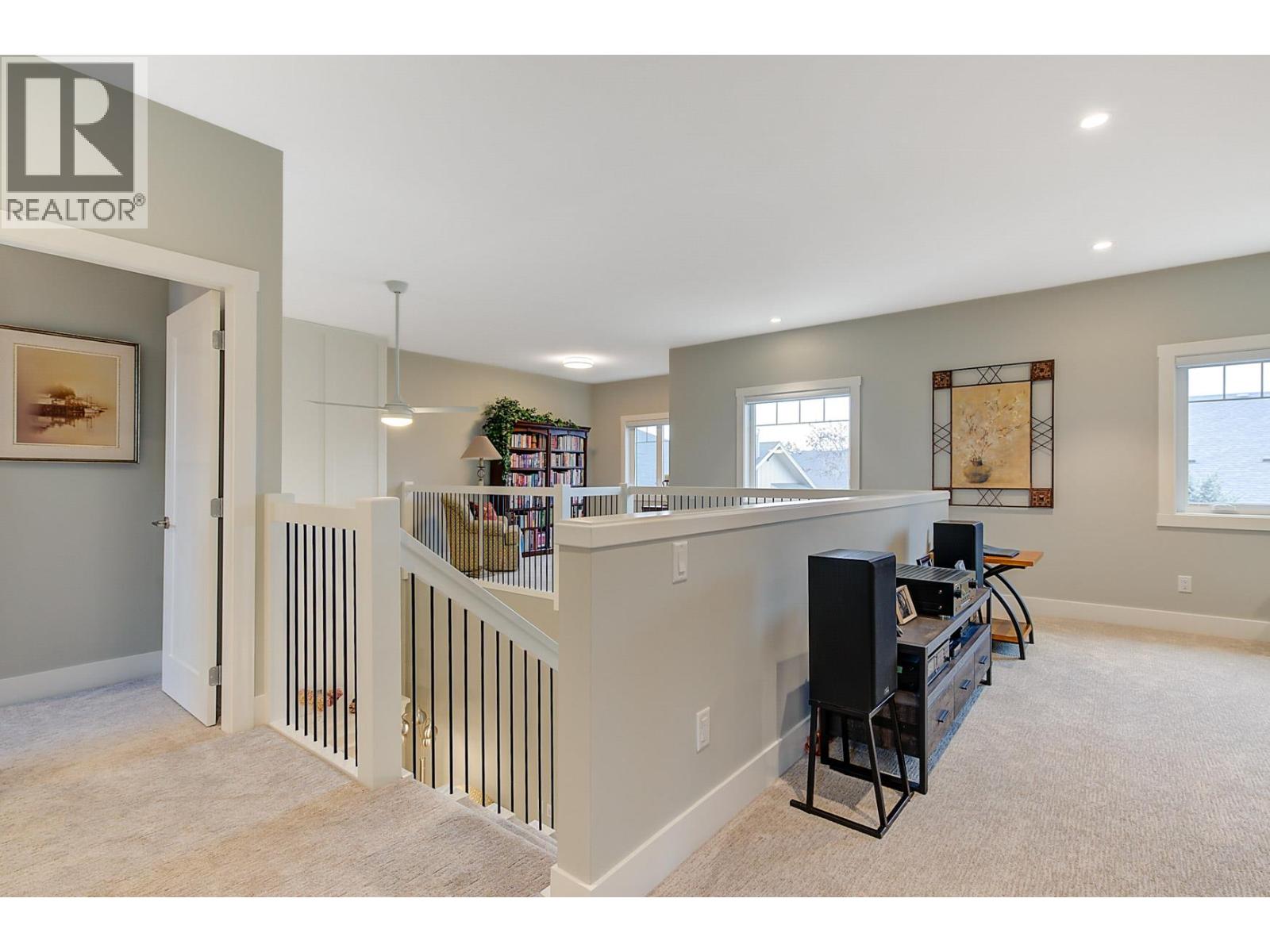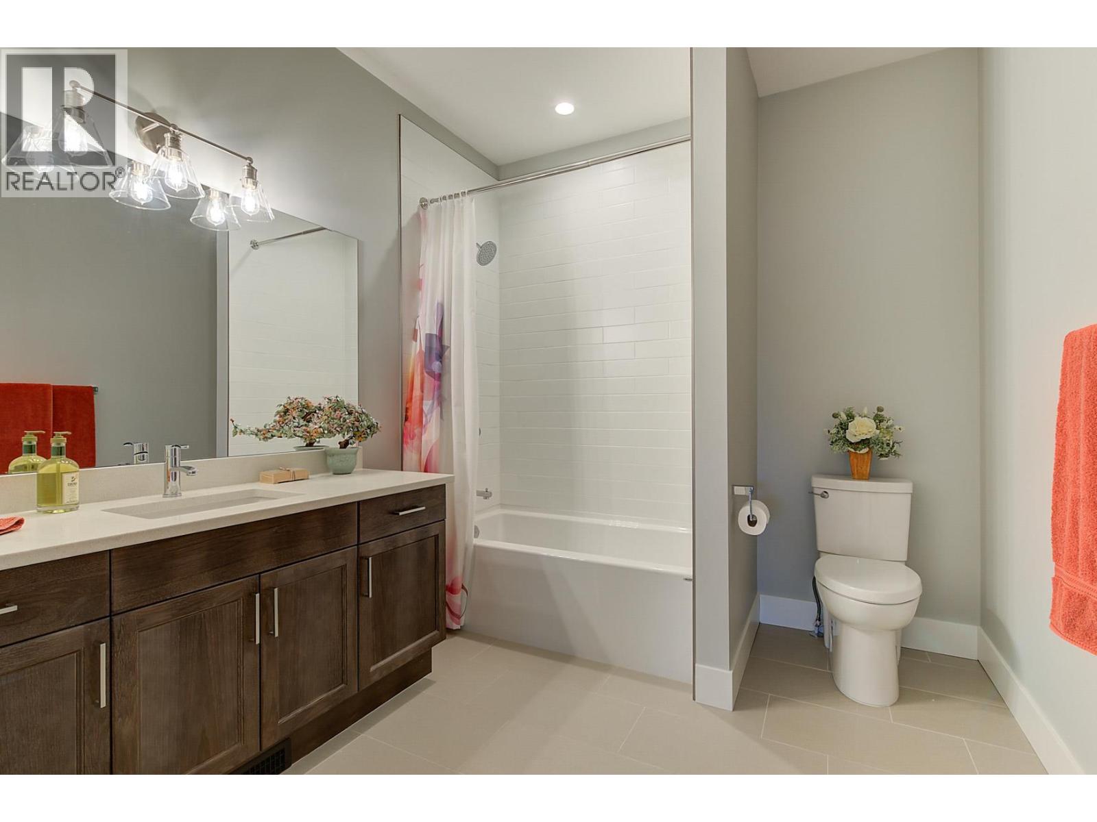 This meticulously cared-for 3-bedroom + den home combines modern design with functional living spaces. The open-concept main level is flooded with natural light, showcasing soaring ceilings and a stylish neutral palette that highlights the quartz countertops, island kitchen, and spacious walk-in pantry. The luxurious primary suite, conveniently located on the main floor, features a double vanity ensuite, a freestanding tub, and a walk-in shower. Adjacent to the garage, the mudroom offers practicality with laundry facilities, a sink, and abundant storage. Upstairs, a versatile loft serves as a second living area, complemented by two large bedrooms and a well-appointed bathroom. The fenced, low-maintenance backyard is ideal for relaxation or entertaining. The good sized double garage provides ample room, with additional storage, while the flat driveway offers extra parking. Nestled in a prime location just minutes from world-class golf courses, exceptional dining, shopping, and the breathtaking shores of Lake Okanagan, this home delivers the ultimate combination of elegance and convenience. (id:6770)