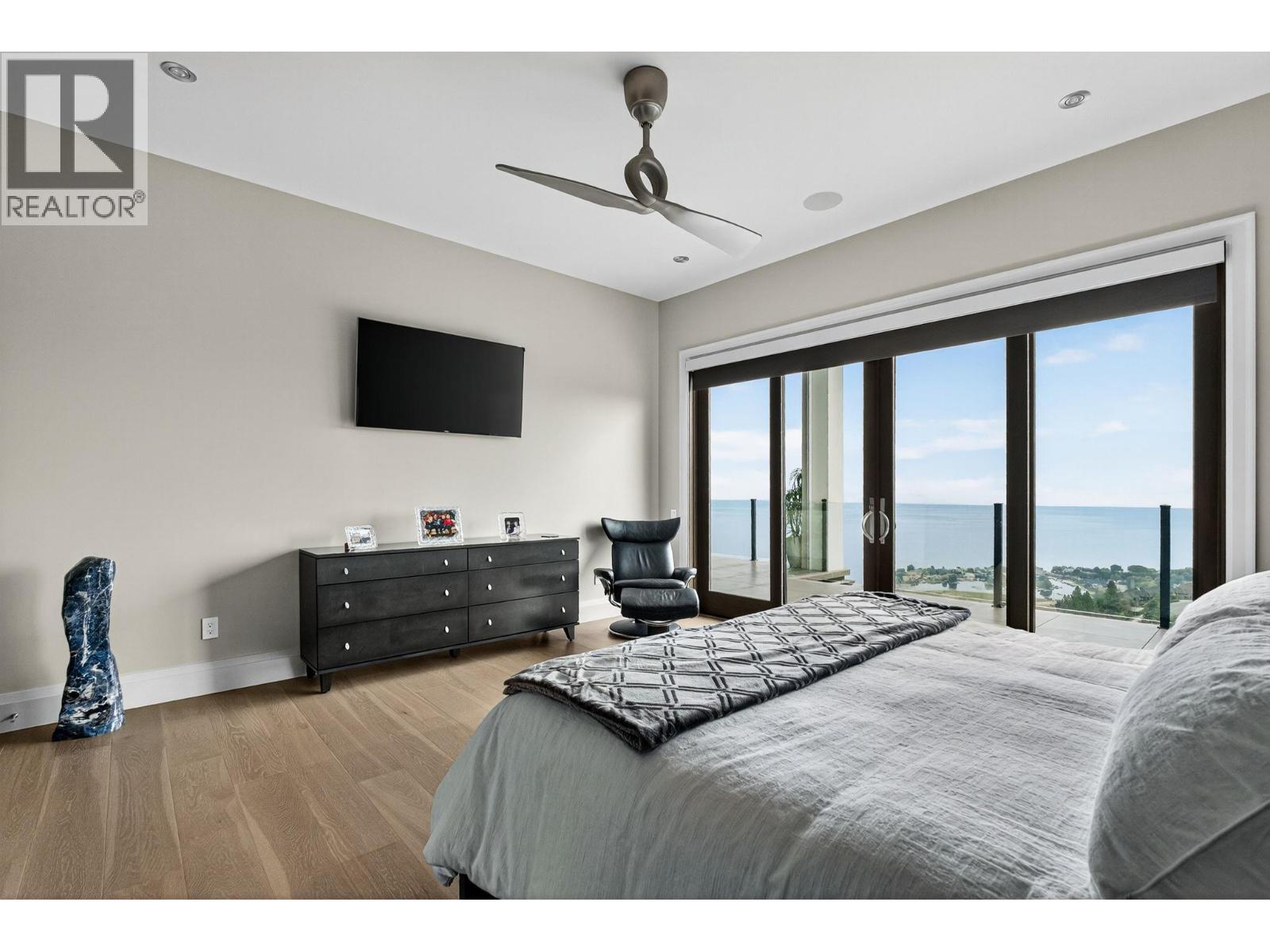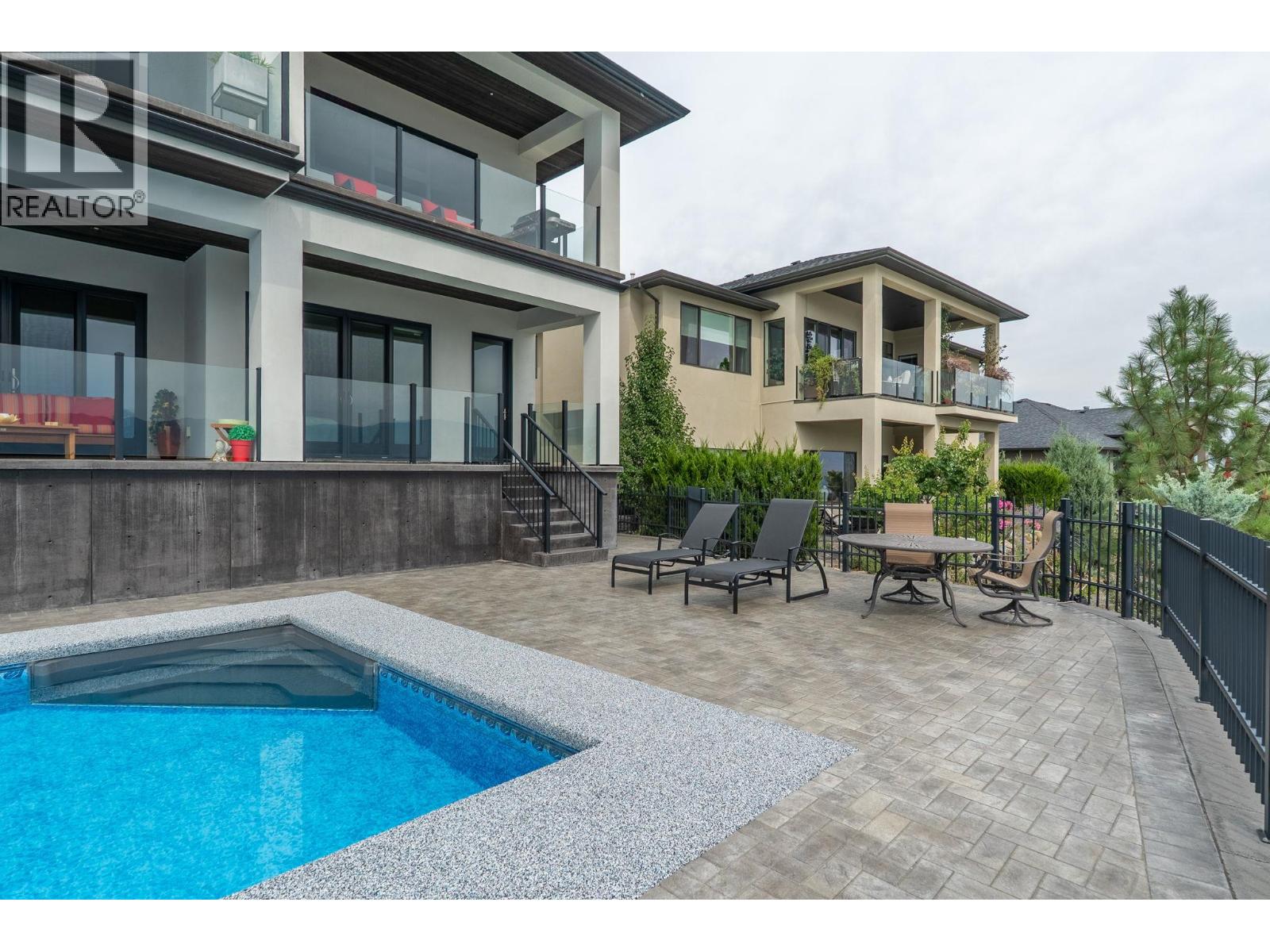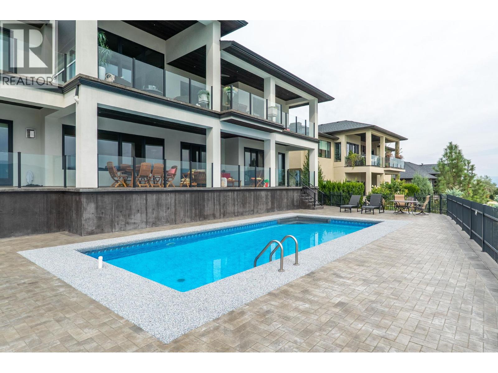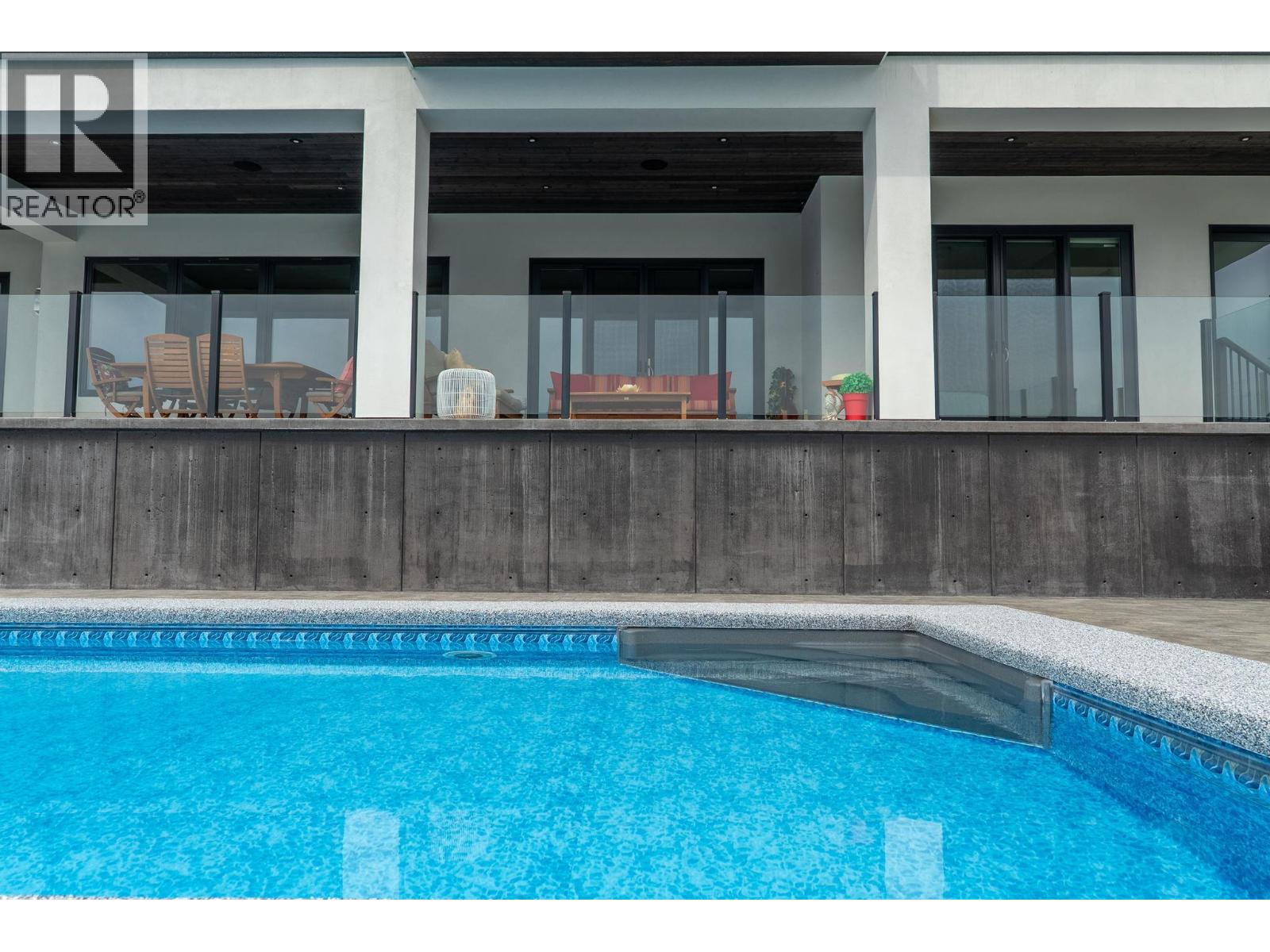 Welcome to an unparalleled luxury residence where custom design meets timeless elegance. This 5,172 sq ft architectural gem is a testament to superior craftsmanship, offering captivating lake, vineyard, and mountain views—a backdrop as exquisite as the home itself. Step inside to discover an expansive primary bedroom, highlighting a luxurious ensuite with steam shower, soaker tub, heated floors and interim lighting. The walk-in closet, complete with its own washer and dryer, adds convenience to luxury living. The modern kitchen boasts top-of-the-line appliances, an instant hot water tap, and a large quartz island, complete with a prep sink—perfect for gatherings with family and friends. A welcome addition is a Butler’s pantry complete with fridge and stove. Adjacent to the dining room, there’s a beverage centre with wine fridge, sink, and built-in shelving/storage with elegant sliding wood doors. Throughout the home, you’ll find soaring ceilings, wide plank flooring, modern lighting along with stainless steel/glass railings. The executive office can overlook the garage if need be, catering to car enthusiasts. It highlights a triple car garage with an epoxy floor, but for discretion and practicality the windows have customized wooden louvered blinds. The walk-out basement features three additional bedrooms, including a Jack and Jill bathroom—ideal for teenagers seeking their own space. Unwind in the saltwater heated pool or relax on the large deck and patio, overlooking a maintenance-free, fully fenced yard. This immaculate home features a backup generator, electric blinds, built-in audio system, kids’ play loft, theatre room, a second laundry room in the basement, and newly sealed driveway, deck and patio. Plus Rubroc accent added around the pool deck, an artificial front lawn, and a “no-grass” backyard! This Lakeview Heights masterpiece truly looks and feels brand new—crafted for those who appreciate luxury, elegance, and flawless attention to detail. (id:6770)