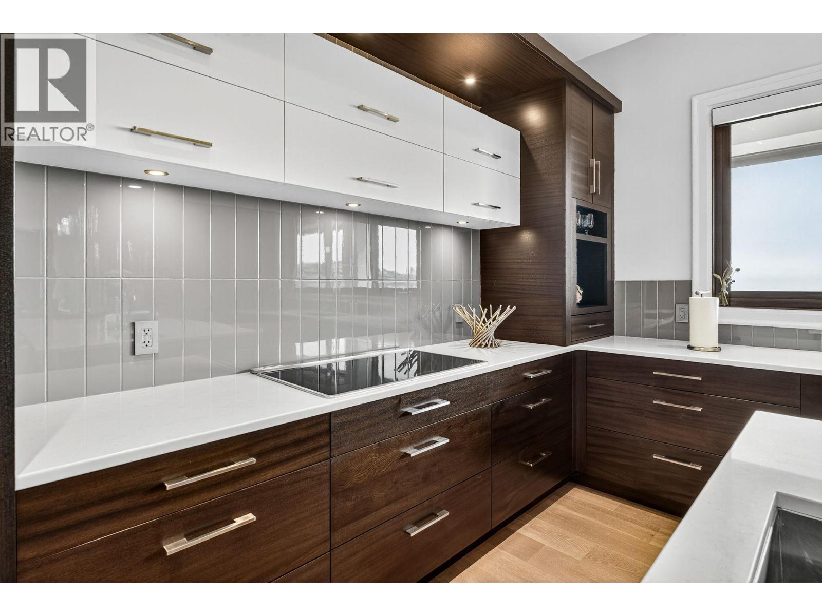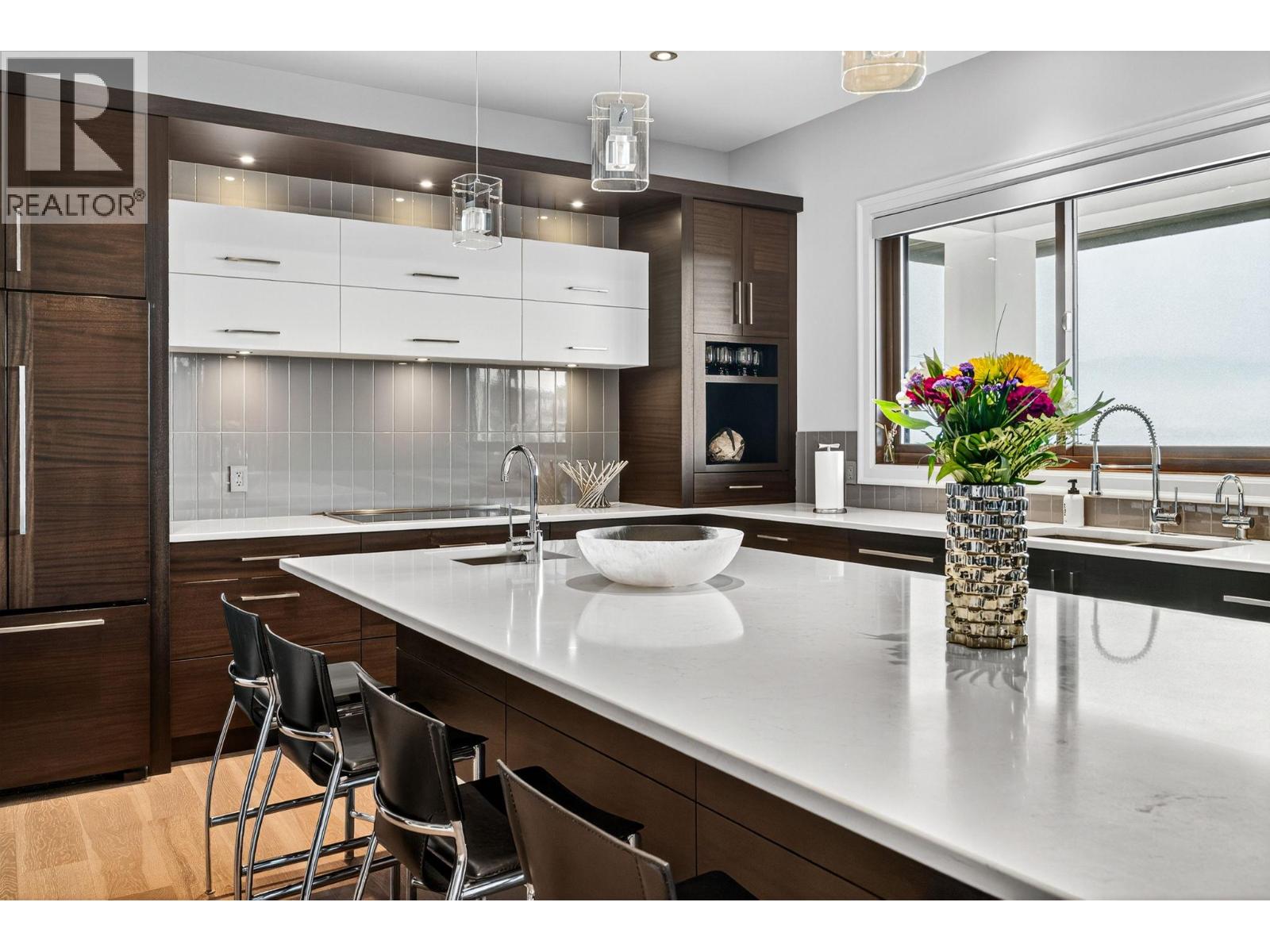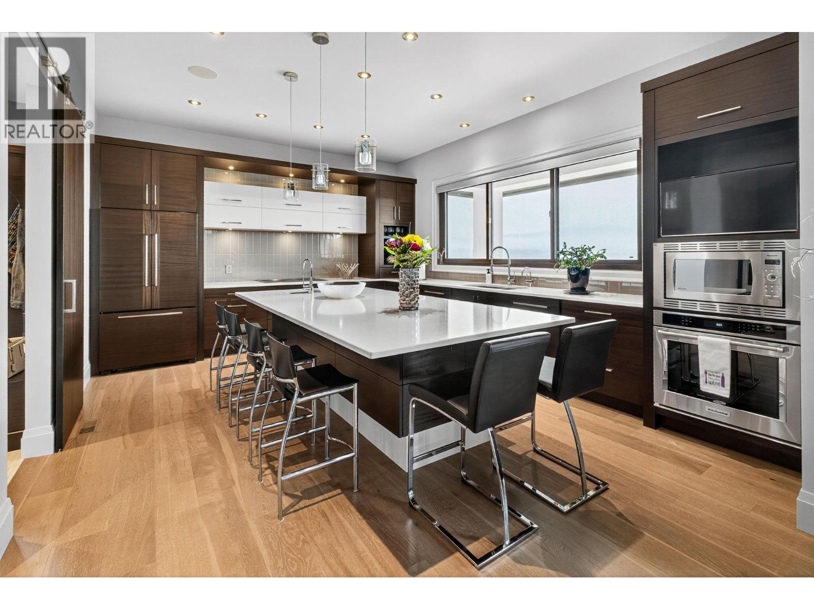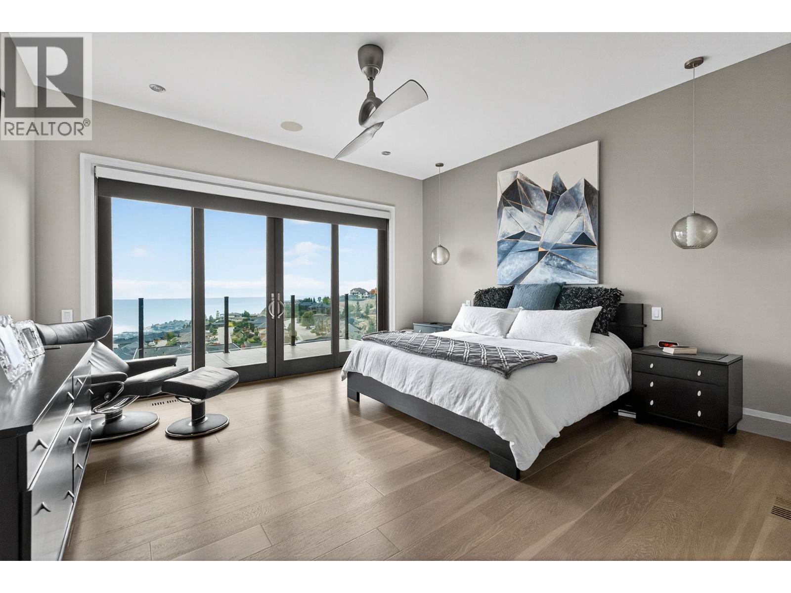 Welcome to an unparalleled luxury residence where custom design meets timeless elegance. This 5,172 sq ft architectural gem is a testament to superior craftsmanship, offering captivating lake, vineyard, and mountain views—a backdrop as exquisite as the home itself. Step inside to discover an expansive primary bedroom, highlighting a luxurious ensuite with steam shower, soaker tub, heated floors and interim lighting. The walk-in closet, complete with its own washer and dryer, adds convenience to luxury living. The modern kitchen boasts top-of-the-line appliances, an instant hot water tap, and a large quartz island, complete with a prep sink—perfect for gatherings with family and friends. A welcome addition is a Butler’s pantry complete with fridge and stove. Adjacent to the dining room, there’s a beverage centre with wine fridge, sink, and built-in shelving/storage with elegant sliding wood doors. Throughout the home, you’ll find soaring ceilings, wide plank flooring, modern lighting along with stainless steel/glass railings. The executive office can overlook the garage if need be, catering to car enthusiasts. It highlights a triple car garage with an epoxy floor, but for discretion and practicality the windows have customized wooden louvered blinds. The walk-out basement features three additional bedrooms, including a Jack and Jill bathroom—ideal for teenagers seeking their own space. Unwind in the saltwater heated pool or relax on the large deck and patio, overlooking a maintenance-free, fully fenced yard. This immaculate home features a backup generator, electric blinds, built-in audio system, kids’ play loft, theatre room, a second laundry room in the basement, and newly sealed driveway, deck and patio. Plus Rubroc accent added around the pool deck, an artificial front lawn, and a “no-grass” backyard! This Lakeview Heights masterpiece truly looks and feels brand new—crafted for those who appreciate luxury, elegance, and flawless attention to detail. (id:6770)