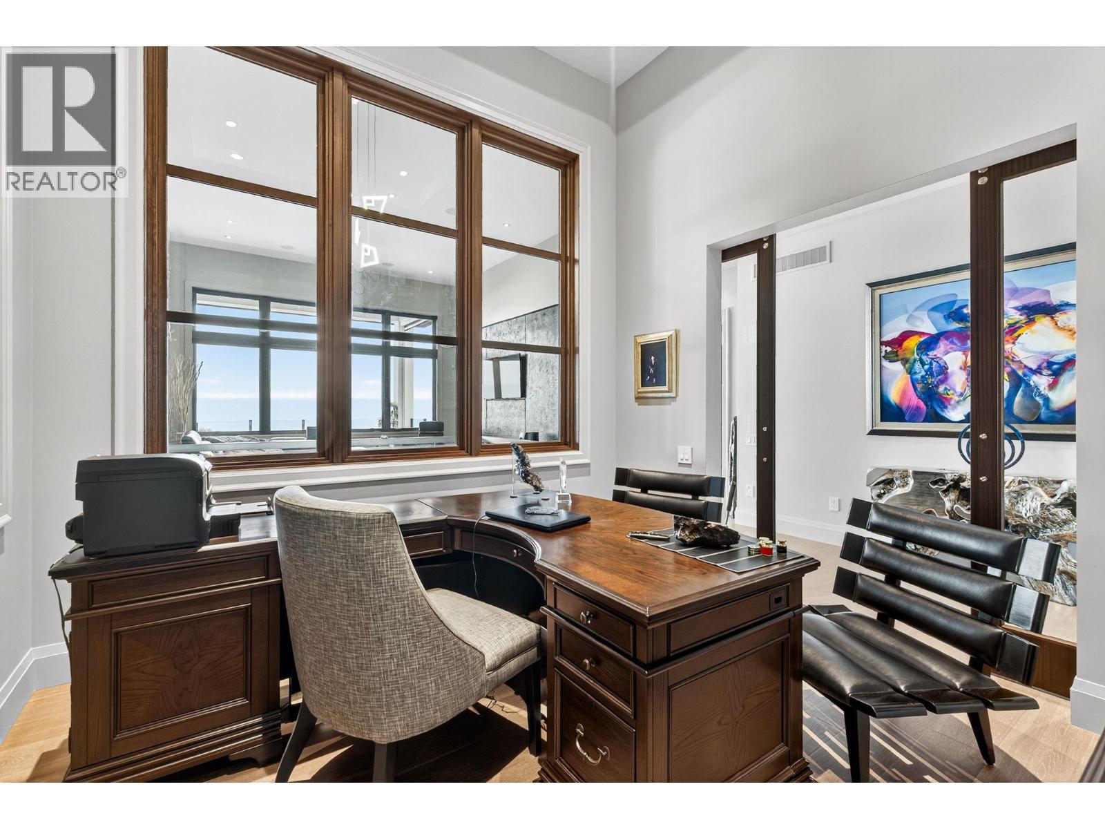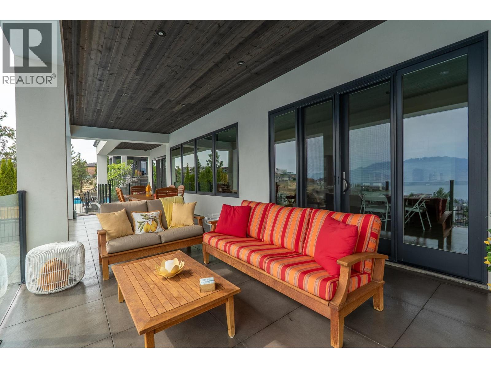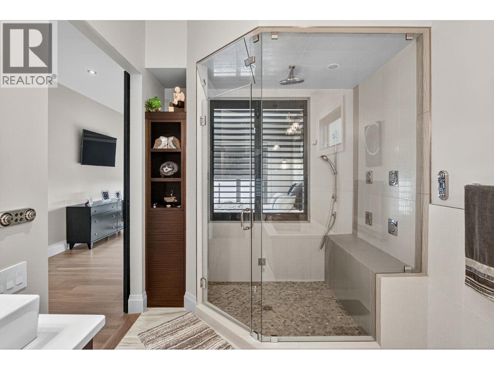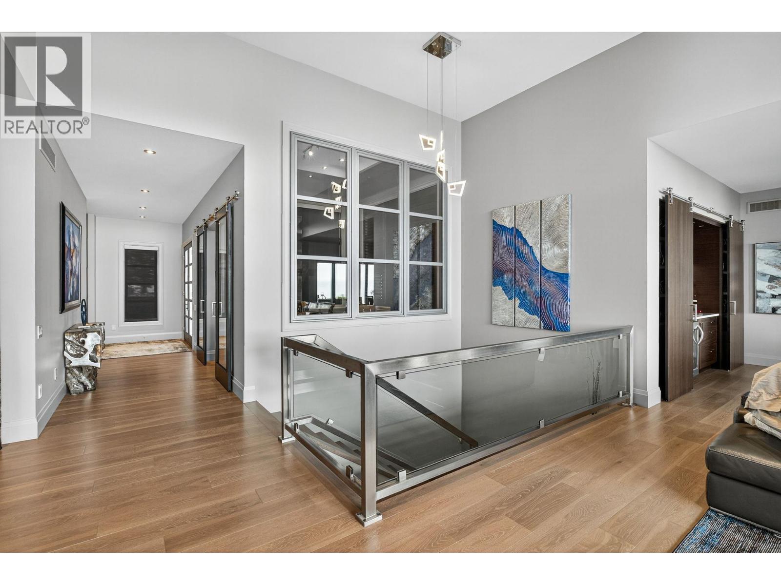Welcome to an unparalleled luxury residence where custom design meets timeless elegance. This 5,172 sq ft architectural gem is a testament to superior craftsmanship, offering captivating lake, vineyard, and mountain views—a backdrop as exquisite as the home itself. Step inside to discover an expansive primary bedroom, highlighting a luxurious ensuite with steam shower, soaker tub, heated floors and interim lighting. The walk-in closet, complete with its own washer and dryer, adds convenience to luxury living. The modern kitchen boasts top-of-the-line appliances, an instant hot water tap, and a large quartz island, complete with a prep sink—perfect for gatherings with family and friends. A welcome addition is a Butler’s pantry complete with fridge and stove. Adjacent to the dining room, there’s a beverage centre with wine fridge, sink, and built-in shelving/storage with elegant sliding wood doors. Throughout the home, you’ll find soaring ceilings, wide plank flooring, modern lighting along with stainless steel/glass railings. The executive office can overlook the garage if need be, catering to car enthusiasts. It highlights a triple car garage with an epoxy floor, but for discretion and practicality the windows have customized wooden louvered blinds. The walk-out basement features three additional bedrooms, including a Jack and Jill bathroom—ideal for teenagers seeking their own space. Unwind in the saltwater heated pool or relax on the large deck and patio, overlooking a maintenance-free, fully fenced yard. This immaculate home features a backup generator, electric blinds, built-in audio system, kids’ play loft, theatre room, a second laundry room in the basement, and newly sealed driveway, deck and patio. Plus Rubroc accent added around the pool deck, an artificial front lawn, and a “no-grass” backyard! This Lakeview Heights masterpiece truly looks and feels brand new—crafted for those who appreciate luxury, elegance, and flawless attention to detail. (id:6770)