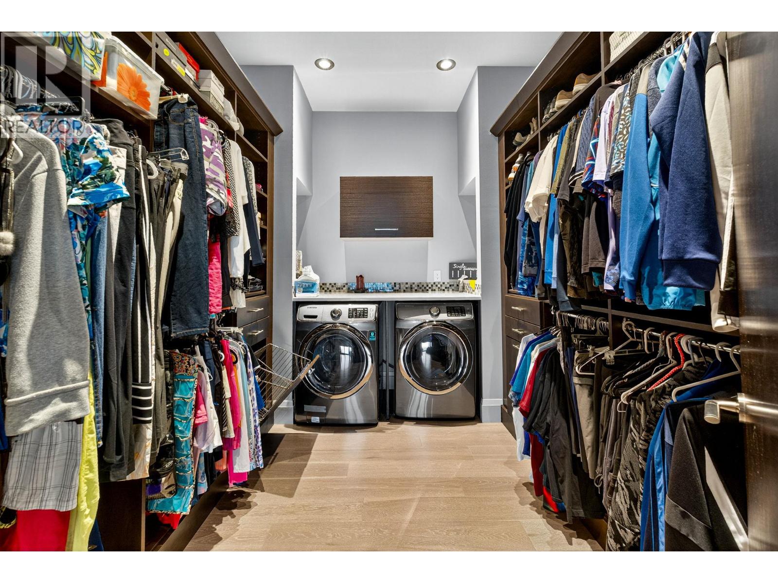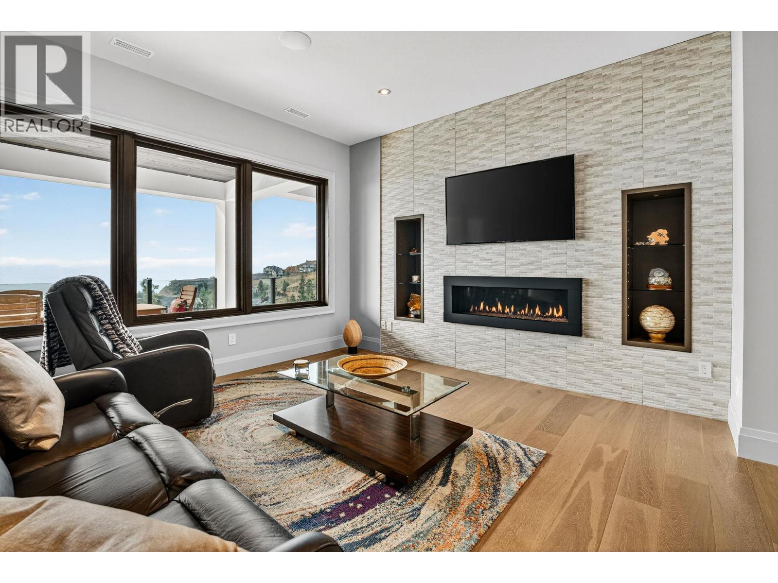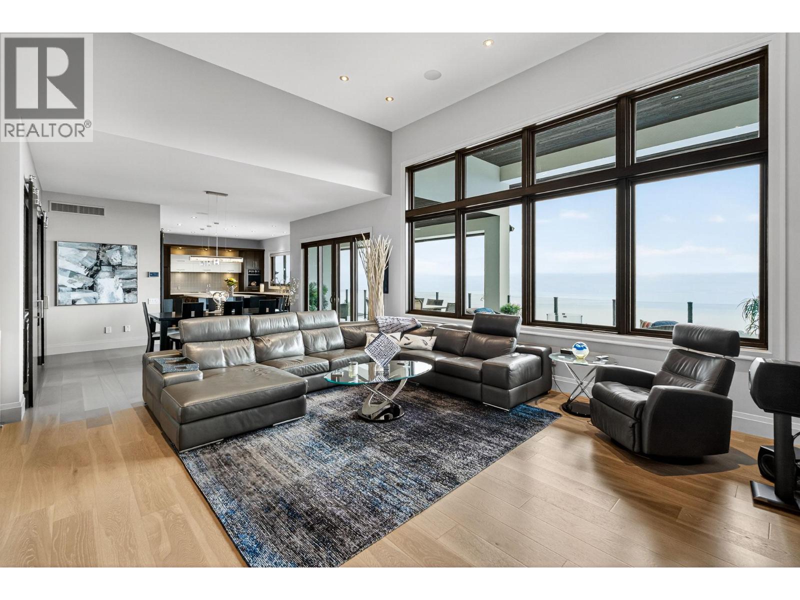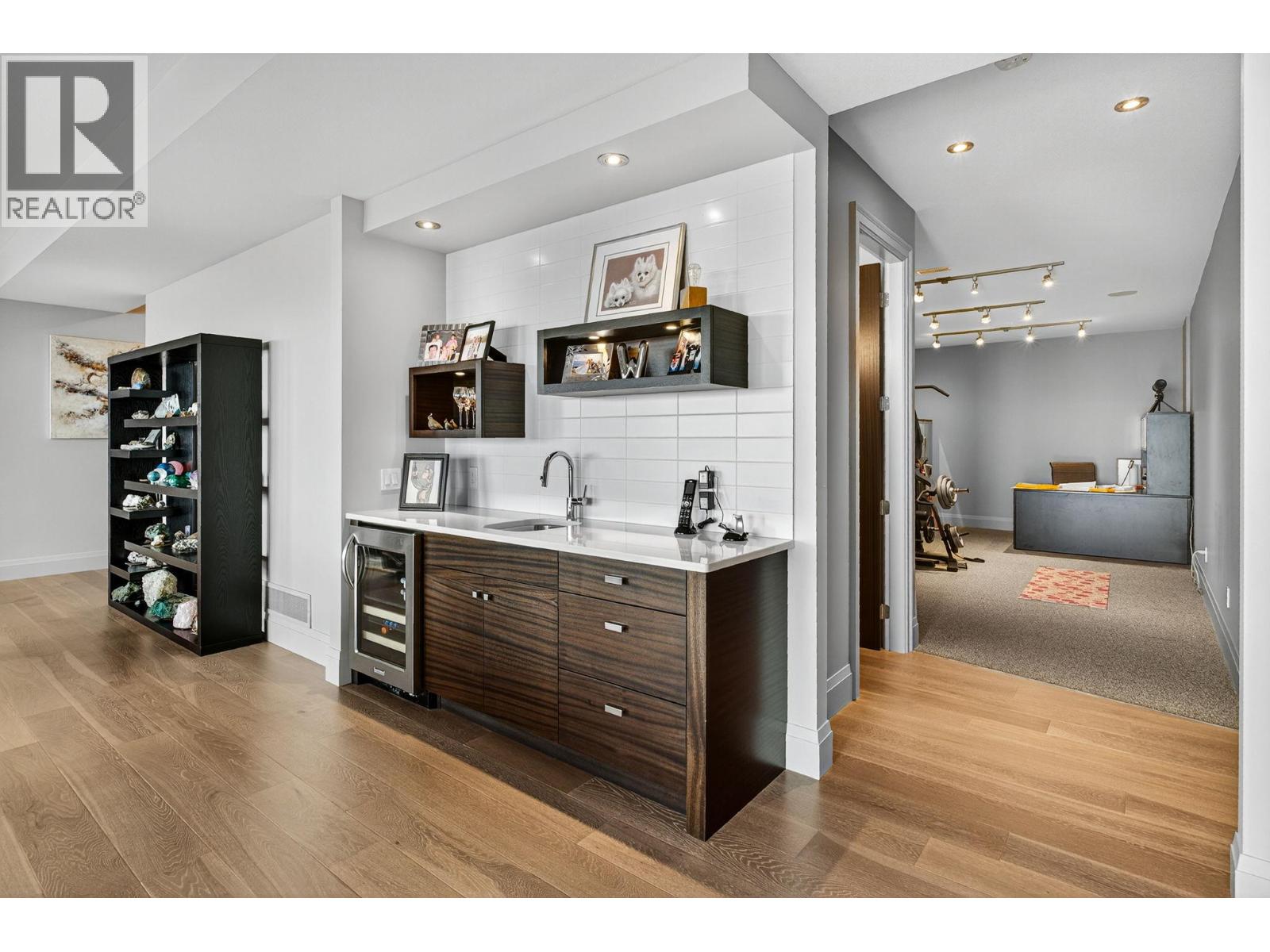 Welcome to an unparalleled luxury residence where custom design meets timeless elegance. This 5,172 sq ft architectural gem is a testament to superior craftsmanship, offering captivating lake, vineyard, and mountain views—a backdrop as exquisite as the home itself. Step inside to discover an expansive primary bedroom, highlighting a luxurious ensuite with steam shower, soaker tub, heated floors and interim lighting. The walk-in closet, complete with its own washer and dryer, adds convenience to luxury living. The modern kitchen boasts top-of-the-line appliances, an instant hot water tap, and a large quartz island, complete with a prep sink—perfect for gatherings with family and friends. A welcome addition is a Butler’s pantry complete with fridge and stove. Adjacent to the dining room, there’s a beverage centre with wine fridge, sink, and built-in shelving/storage with elegant sliding wood doors. Throughout the home, you’ll find soaring ceilings, wide plank flooring, modern lighting along with stainless steel/glass railings. The executive office can overlook the garage if need be, catering to car enthusiasts. It highlights a triple car garage with an epoxy floor, but for discretion and practicality the windows have customized wooden louvered blinds. The walk-out basement features three additional bedrooms, including a Jack and Jill bathroom—ideal for teenagers seeking their own space. Unwind in the saltwater heated pool or relax on the large deck and patio, overlooking a maintenance-free, fully fenced yard. This immaculate home features a backup generator, electric blinds, built-in audio system, kids’ play loft, theatre room, a second laundry room in the basement, and newly sealed driveway, deck and patio. Plus Rubroc accent added around the pool deck, an artificial front lawn, and a “no-grass” backyard! This Lakeview Heights masterpiece truly looks and feels brand new—crafted for those who appreciate luxury, elegance, and flawless attention to detail. (id:6770)
