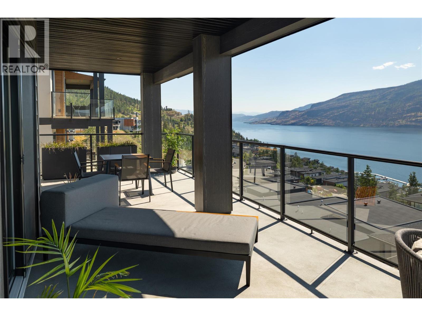 This stunning 6-bedroom, 4-bathroom modern contemporary home in McKinley Beach offers 3,642 SF of thoughtfully designed living space, perfectly positioned to take in the panoramic lake views from both levels. Ideally situated on a dead end street, the home is walking distance to hiking trails, the lake, amenities, & the upcoming Azhadi winery.The main floor features a bright, open-concept layout with expansive windows to take in the incredible views, & a stylish tile fireplace in the great room. The show-stopping kitchen includes a massive quartz island, an induction range, oversized fridge & freezer, and walk-in pantry. 2 large decks finished in Flexstone extend your living space outdoors, with the upper deck featuring power shades to keep you cool on warm summer days.The spacious primary suite offers breathtaking lake views and a spa-like en-suite complete w/ a soaker tub, walk-in glass shower, & heated floors.A 2nd bedroom & full bathroom complete the main level. Downstairs features a rec room with a cozy fireplace, a wet bar & wine fridge, 2 more bedrooms & a full bathroom. The home includes a self-contained 2-bedroom legal suite with a lakeview & its own entrance & laundry.Additional features include an oversized double garage, a spacious driveway, and an electric vehicle charger. McKinley Beach amenities include a private marina with boat, kayak, & paddleboard storage, a gym, indoor pool, hot tub, yoga studio, tennis & pickleball courts, playground & community gardens. (id:6770)