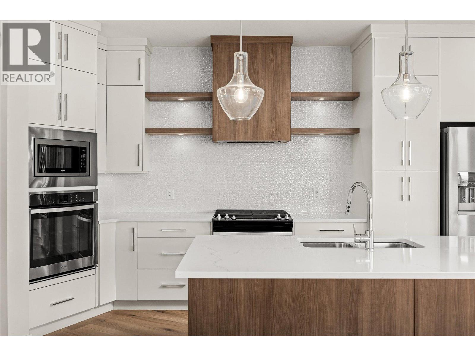 Welcome to this spectacular four-bedroom, four-bathroom walk-out rancher complete with one-bedroom suite—an incredible opportunity you won’t want to miss. Built by award-winning Gibson Homes, every inch of this residence has been thoughtfully and tastefully designed. Soaring eleven foot ceilings make a striking first impression, leading you into an expansive open-concept living space. The gourmet kitchen features quartz countertops, stainless steel appliances, and a generous dining area, perfect for entertaining. Step out onto the spacious balcony and take in breathtaking mountain and valley views, ideal for enjoying your morning coffee or evening glass of wine. The primary suite is a true retreat, offering a walk-through closet and a luxurious spa-inspired ensuite. Enjoy marble-style tile throughout, heated floors, motion-sensor lighting, a free-standing platform tub, and a sleek, glassless shower for a truly elevated experience. The lower level offers a large recreation room, an additional bedroom, and full bathroom, providing plenty of space for family or guests. The fully self-contained one-bedroom suite has a private entrance on the side of the home and does not interfere with the main living areas—ideal for extended family or rental income. Still covered under partial home warranty and located just minutes from downtown Kelowna, shopping, schools, the airport, UBCO, and golf courses, this location truly can’t be beat. (id:6770)