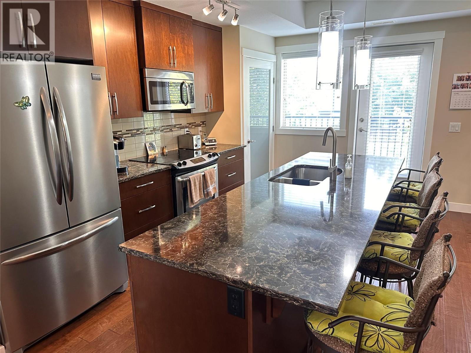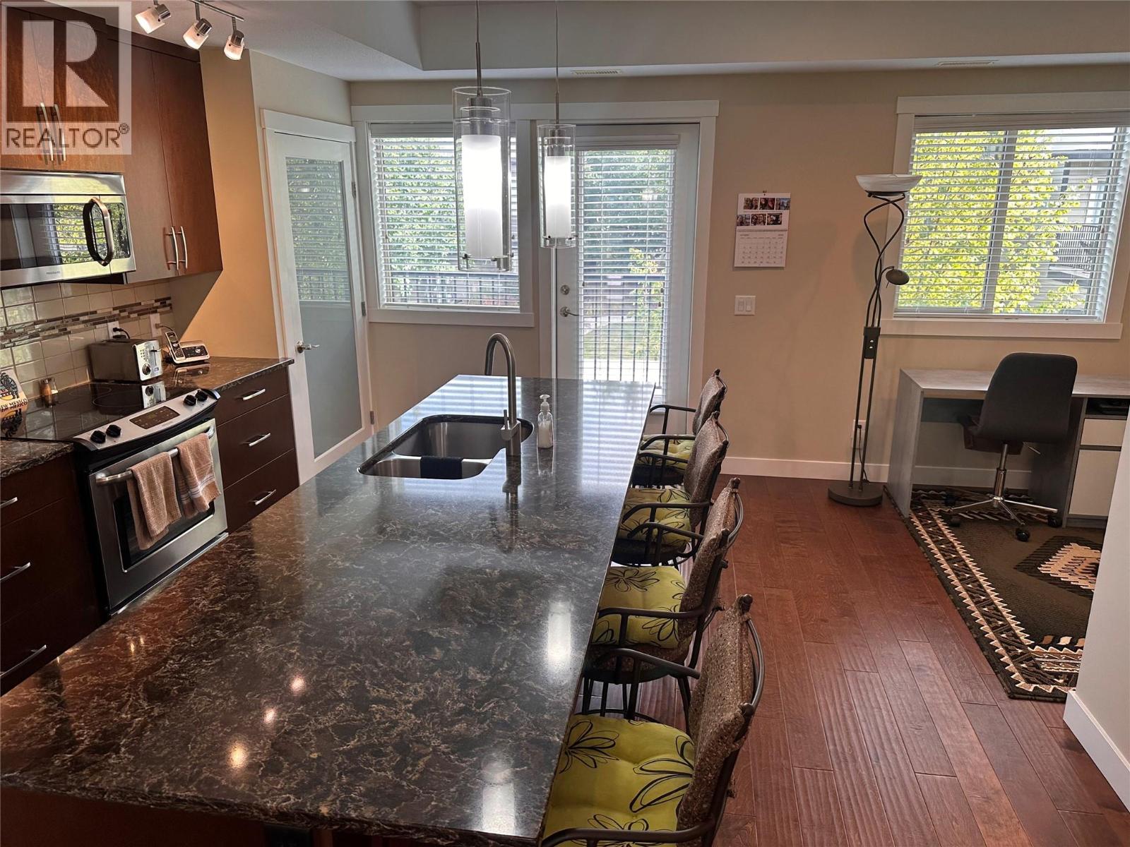 Incredible location - Kelowna's coveted Lower Mission - close to the best beaches, recreation, schools and shopping within a short walking distance to all. Built in 2015, this well maintained, 3 bed/ 2.5 bath home on the west side of Green Square is move-in ready with room for the whole family. Beautiful quartz countertops, hand-scraped finish hardwood floors and a built-in pantry closet will be found in the open concept kitchen. There are two decks in this well-appointed home: one facing an open playfield to the west and a spacious area off the kitchen to the east. The master bedroom includes a walk-in closet and ensuite with beautiful and large glass-enclosed shower. Number 37 is a three-storey townhome and includes a 2-car garage (tandem) which many owners use as a flex space for storage when only one vehicle is parked. There is also room for a workbench and more. The home comes with a radon mitigation system for peace of mind. Ample visitor parking is right across from this home and the complex has a community gym. Perfect for downsizing or first-time home buyers. Measurements taken from scan app. (id:6770)