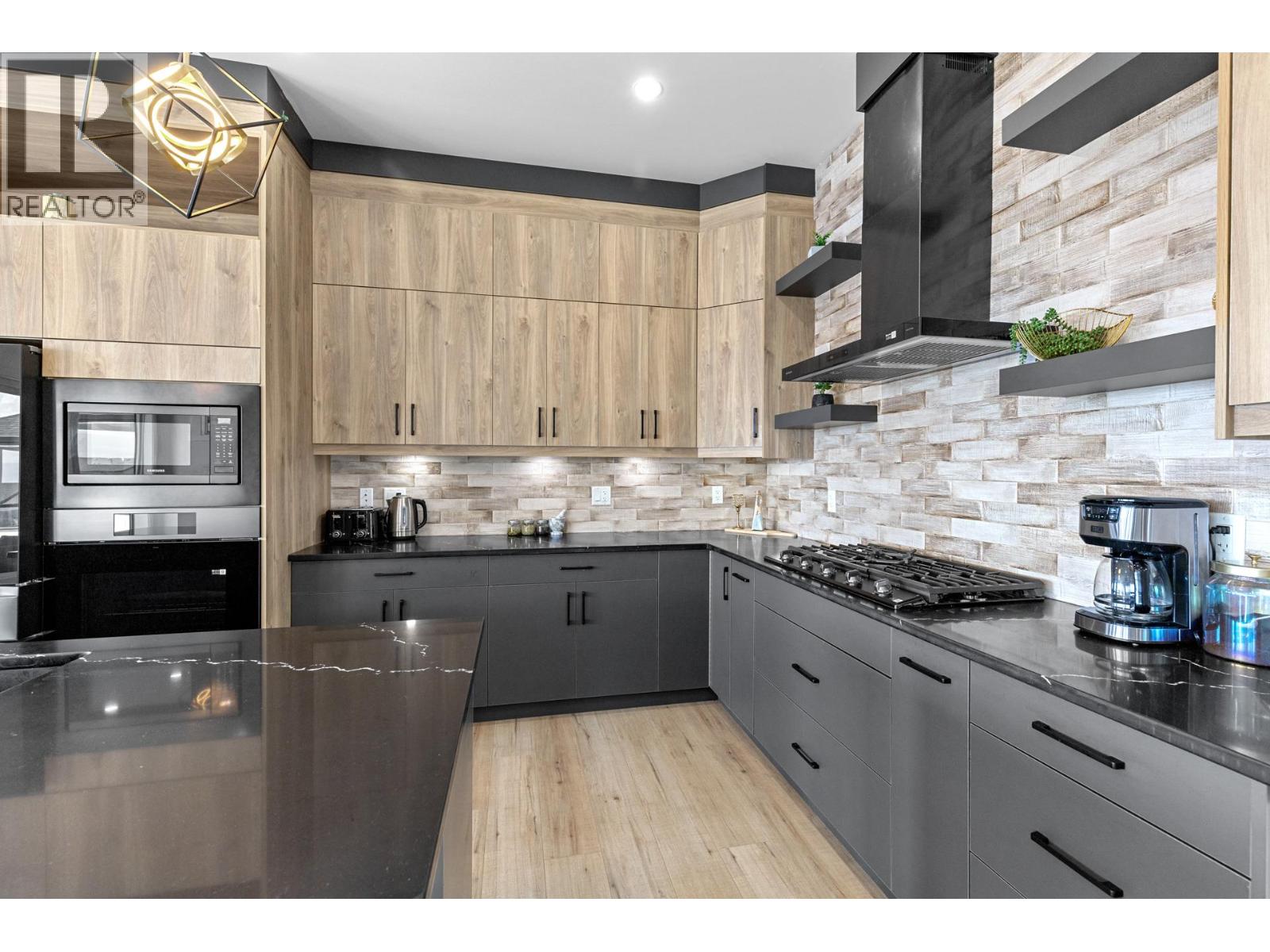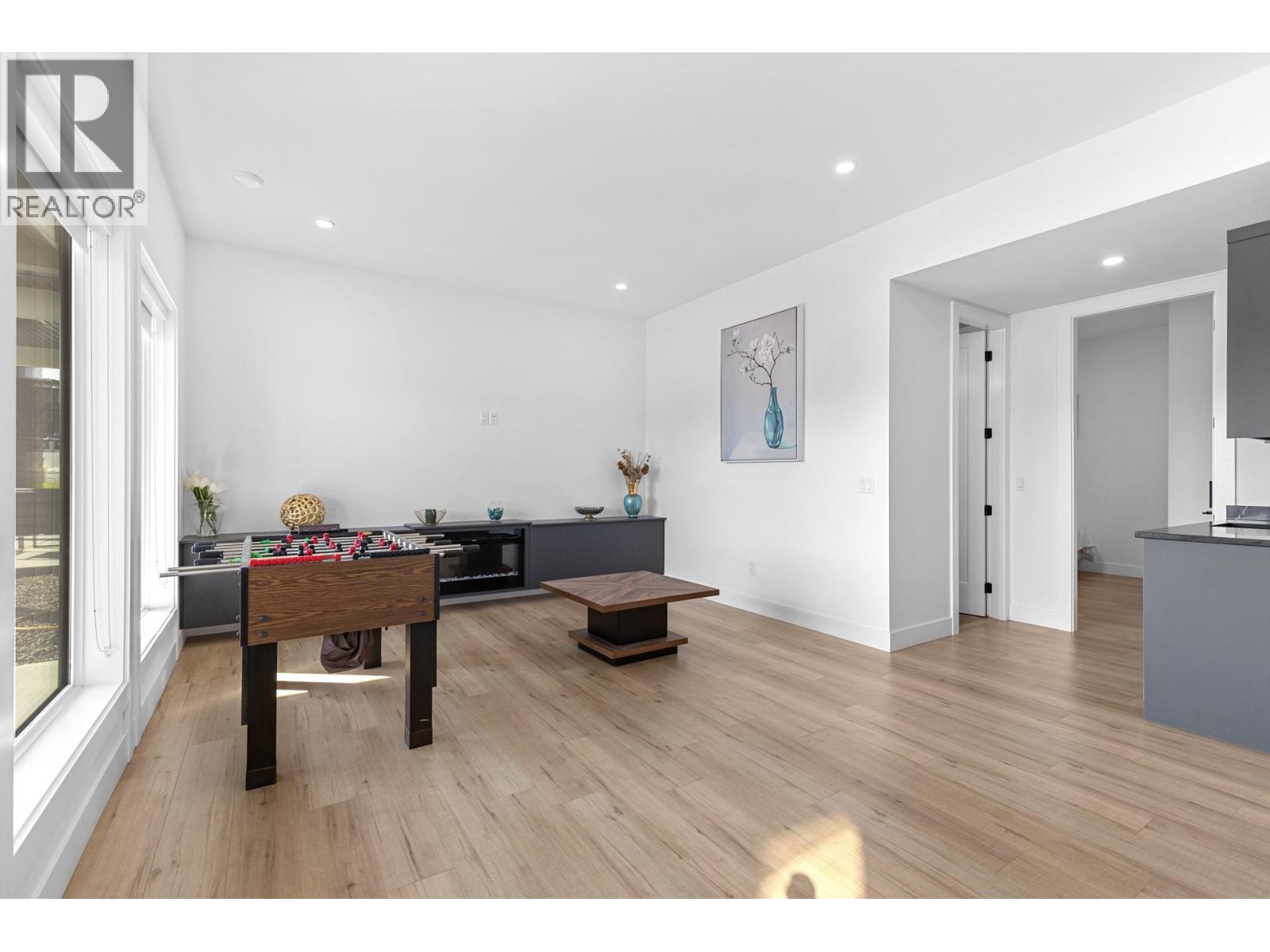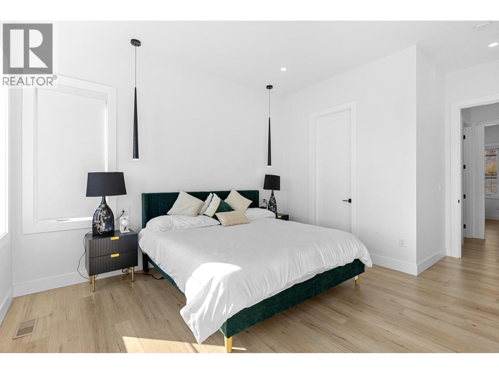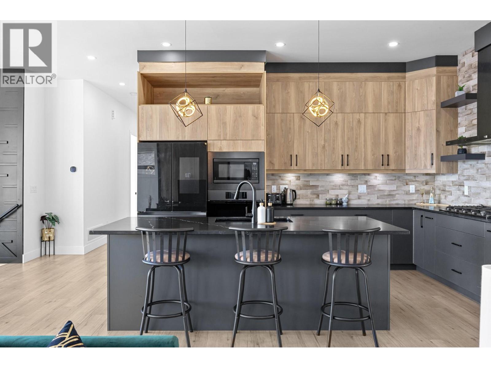 Experience elevated Okanagan living in this nearly new, architecturally designed modern home featuring a rooftop deck with panoramic lake and mountain views, and a fully self-contained legal suite approved for Airbnb. Step inside to discover sleek lines, open-concept living, and thoughtful craftsmanship throughout. The main floor showcases designer lighting and custom finishes, and a chef-inspired island kitchen with quartz countertops, beautiful cabinetry, and top-tier appliances. Expansive windows fill the space with natural light, creating a warm and inviting atmosphere that seamlessly blends comfort with sophistication. Designed for entertaining, the home features a built-in wet bar and an impressive rooftop deck offering unobstructed lake views for sunset gatherings, morning coffee, or evening cocktails under the stars. The primary suite provides a private retreat with a spa-inspired ensuite, while additional bedrooms offer flexibility for family, guests, or a home office. The separate self-contained legal suite includes its own entrance, full kitchen, and laundry, presenting an incredible opportunity for short-term rental income or long-term tenants. Situated in a desirable, newer neighborhood close to beaches, wineries, schools, and amenities, this property blends luxurious living with smart investment potential. Whether you’re looking for a showpiece home or an income-generating opportunity, this residence offers the perfect balance of style, function, and value. (id:6770)