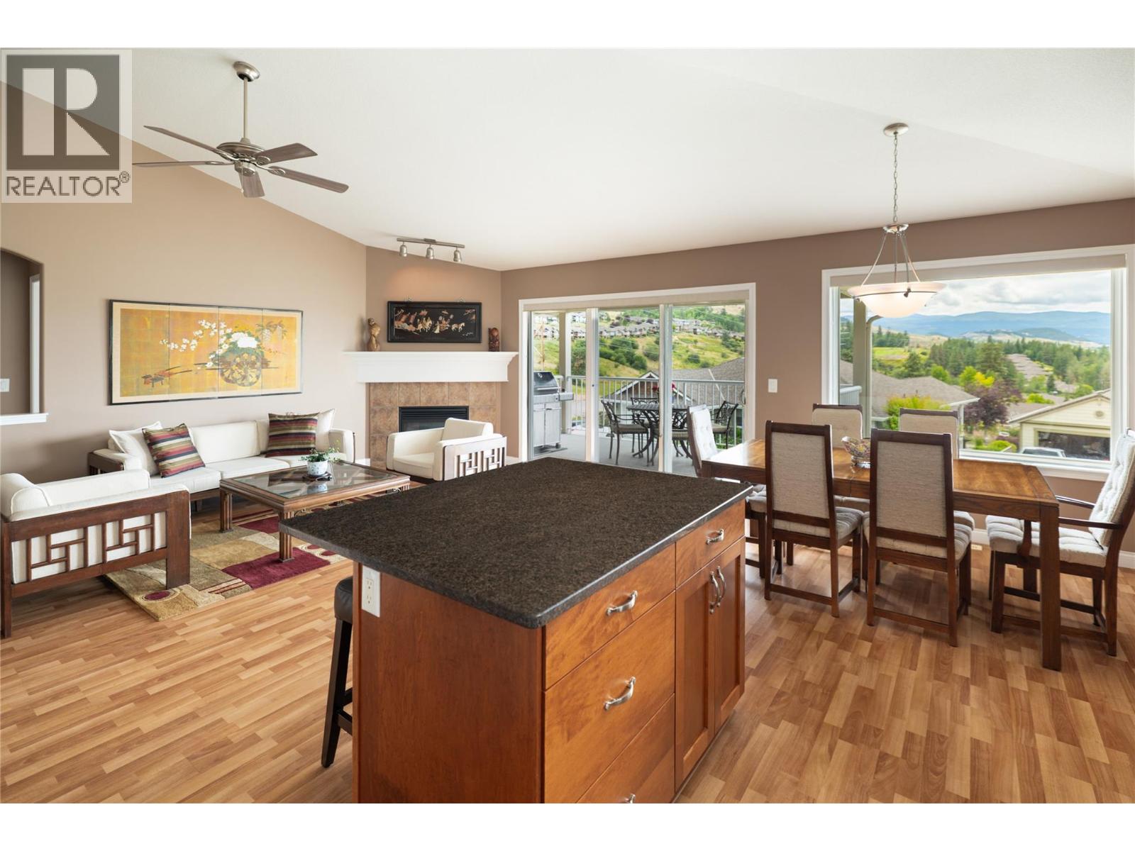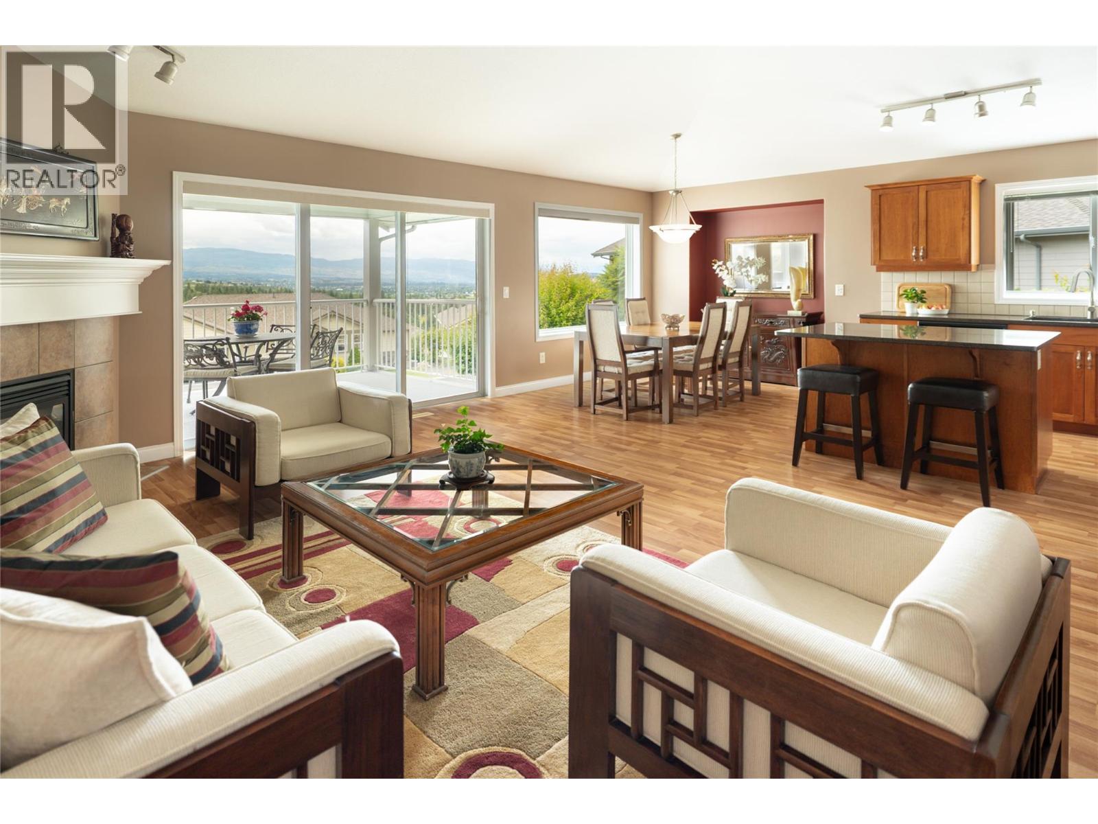 Lovingly cared for by the original owner and presented in pristine condition, this immaculate home has never been on the market before. It offers an open-concept layout with soaring vaulted ceilings and breathtaking views of the city, valley, and lake. The main level features two bedrooms, including a spacious primary suite, along with updated bathrooms finished with quartz countertops. The bright kitchen showcases granite counters and flows effortlessly into the living and dining areas—perfect for entertaining or relaxing at home. Downstairs, you’ll find one finished bedroom with the option to add a second, plus tons of storage space and a flexible layout to suit your needs. Additional highlights include a newer A/C unit, water softener, hot water tank replaced in 2018, and a lovely backyard space to enjoy. Set in a quiet, well-established neighbourhood just minutes to Sunset Ranch Golf Course, the airport, UBCO, and shopping. A perfect option for retirees or those seeking a lock-and-leave lifestyle—this rare opportunity combines comfort, location, and long-term value. (id:6770)