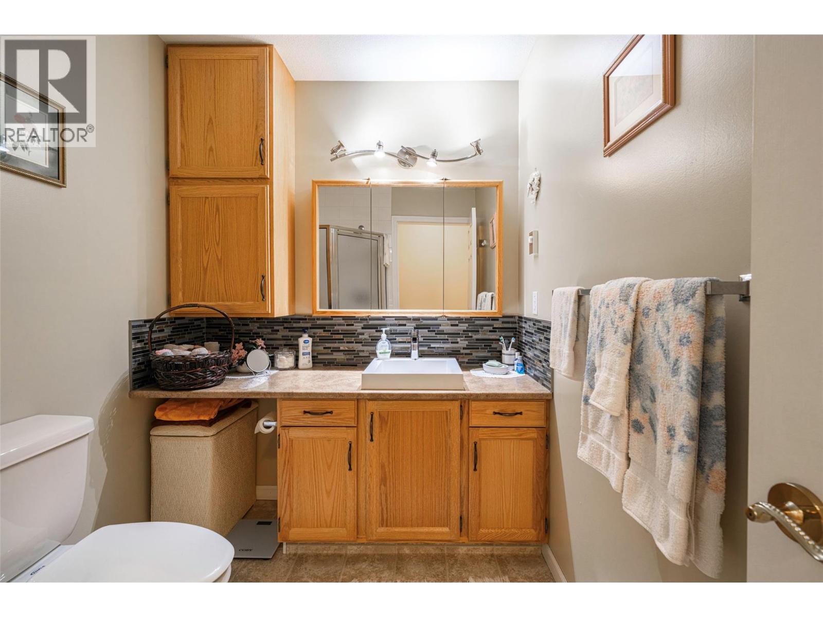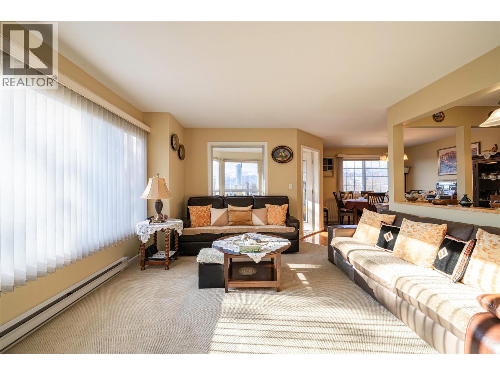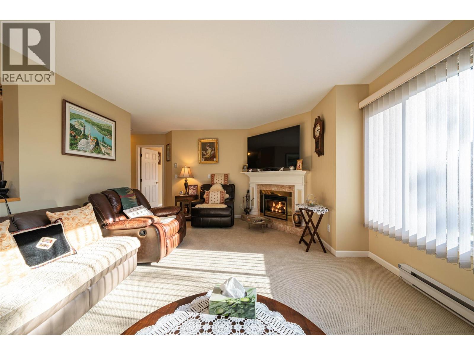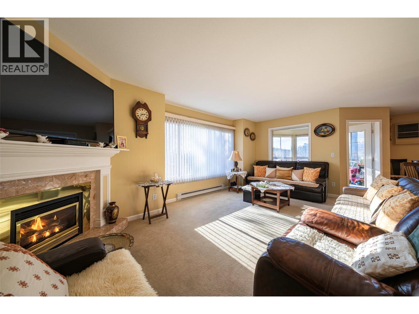 Beautifully maintained top floor corner 2-bedroom, 2-bathroom S.W. facing home! Very spacious, extra large rooms ,tons of storage space including a large walk-in laundry room . Since 2015 a number of updates including Kitchen: S/S appliances, sinks, taps, countertops, backsplash. Bathrooms: toilets and main bath counters. New lighting, cabinet hardware, reflective sun screen on windows. Livingroom has a cozy gas fireplace, separate dining area and an enclosed 100 sf. sun room with lovely mountain views. This home comes with a secure parking stall and storage locker , social room with kitchen, exercise room plus a games room with a pool table. One of Kelowna's' most desirable 55+ communities , fantastic central location, just a short few blocks to all amenities. The furniture minus a few personals may also be included if desired. (id:6770)
