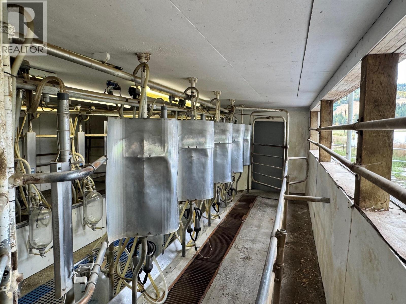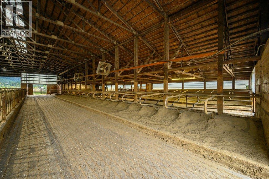 Exceptional opportunity to own this well-maintained no-through bare dairy farm in the North Okanagan on a quiet no thru road location that has 2 road frontages. 28.4 acres of some of the best irrigated farmland in the Interior. Used until recently, the 110 'x 124' main dairy barn has 50 free stalls for the main milking herd with w/temperature-driven fans, plus maternity and young stock pens & holding area to the double 5 milking parlour with Boumatic take-offs, I 000 gallon milk tank & updated wash system. The double bunker silo is 124' x 53', the commodity shed is 124' x 26', and the workshop is 36' x 20'. The manure pit is 8' deep and holds 360,000 gallons. With lots of opportunity for expansion, a water license for irrigation, projected growth with/ new processing facilities being built in British Columbia, you have the keys for continued success. Excellent functional 4 bedroom farmhouse features an open floor plan with a country kitchen, a family room w/ gas fireplace and w/ the deck overlooking the farm yard, huge main living room w/ woodstove and a new concrete patio, I bedroom is on the main floor, and 3 bedrooms upstairs includes the massive primary bdrm w/ a 3 piece ensuite and a balcony, and the main bathroom has been totally redone and has a freestanding soaker tub & separate shower. An easy 20 min drive to Salmon Arm, 10 min to Enderby, 35 min to Vernon, and 1 hour to Kelowna airport. Definitely worth a closer look for pursuing any agricultural venture! (id:6770)