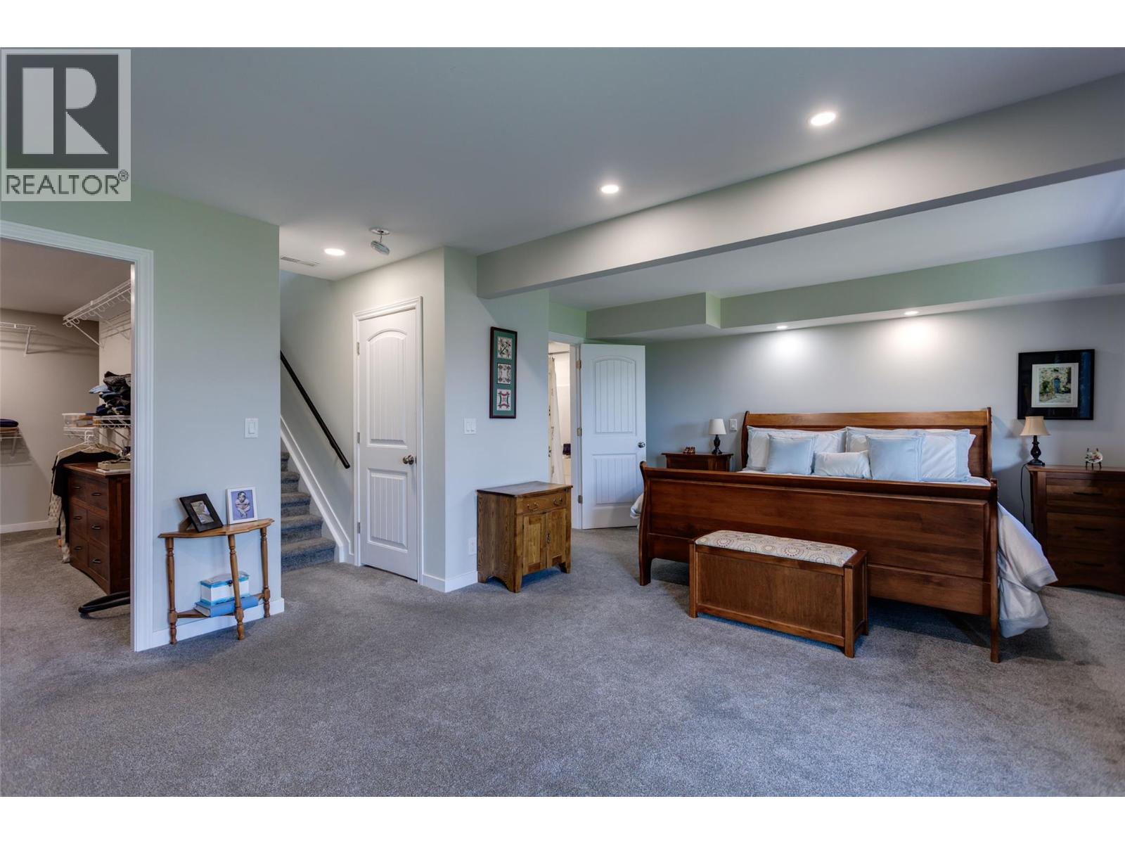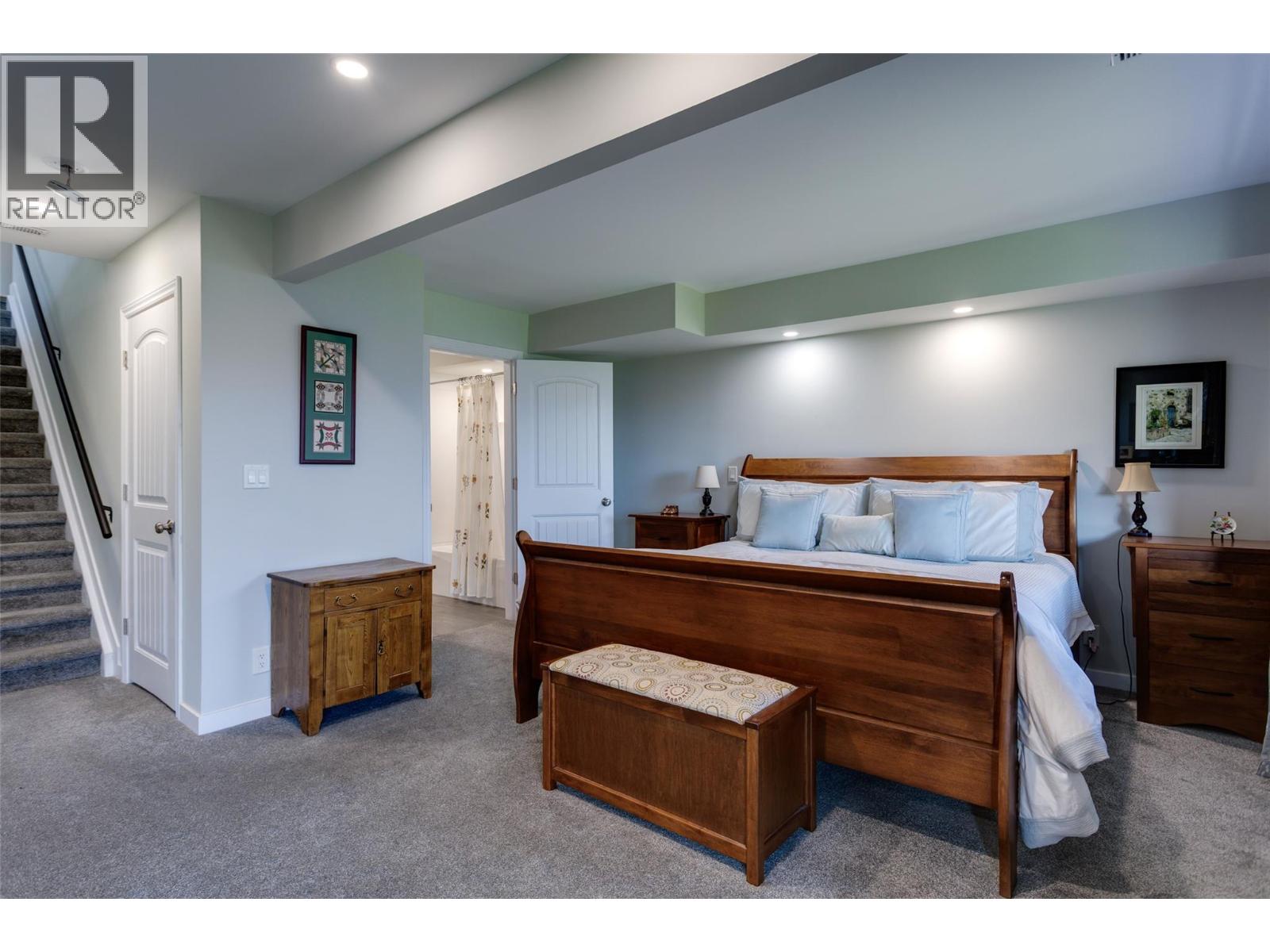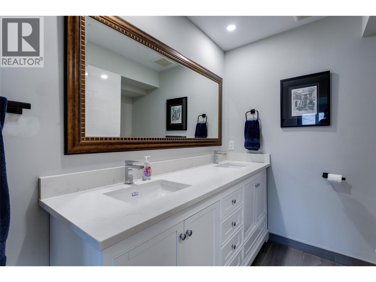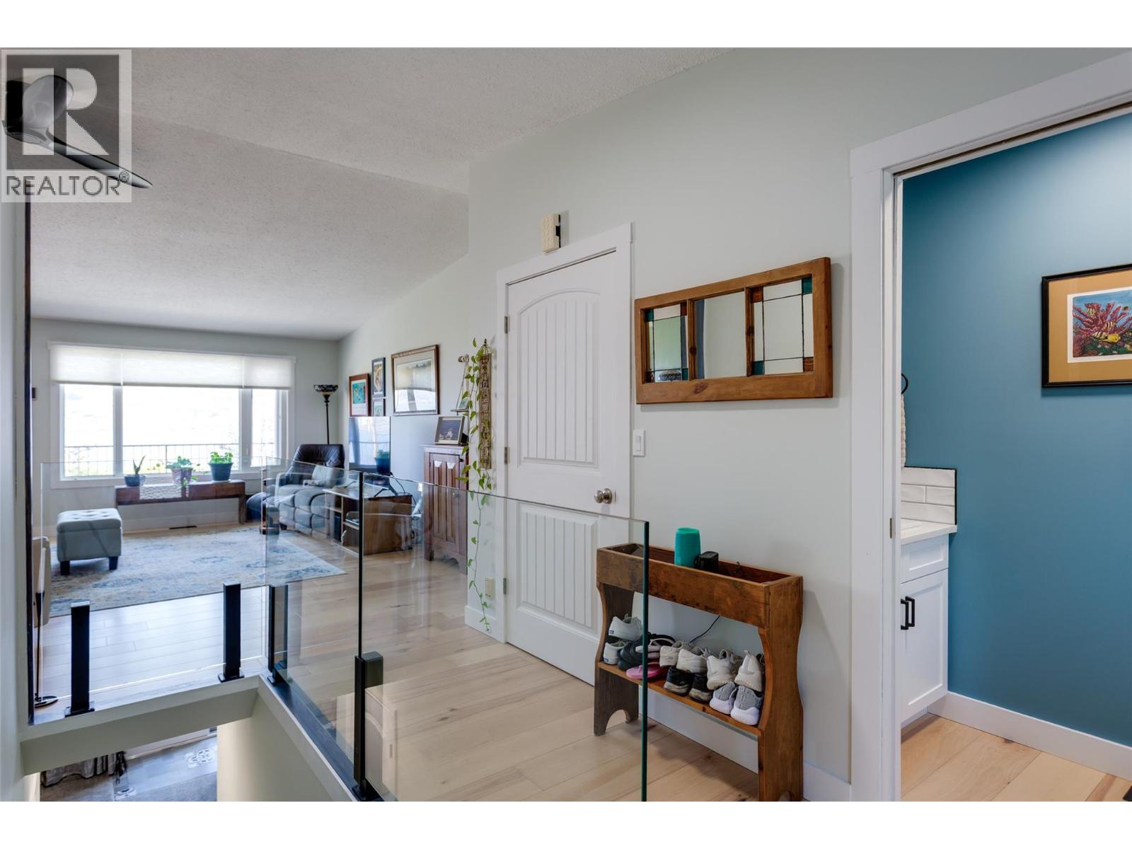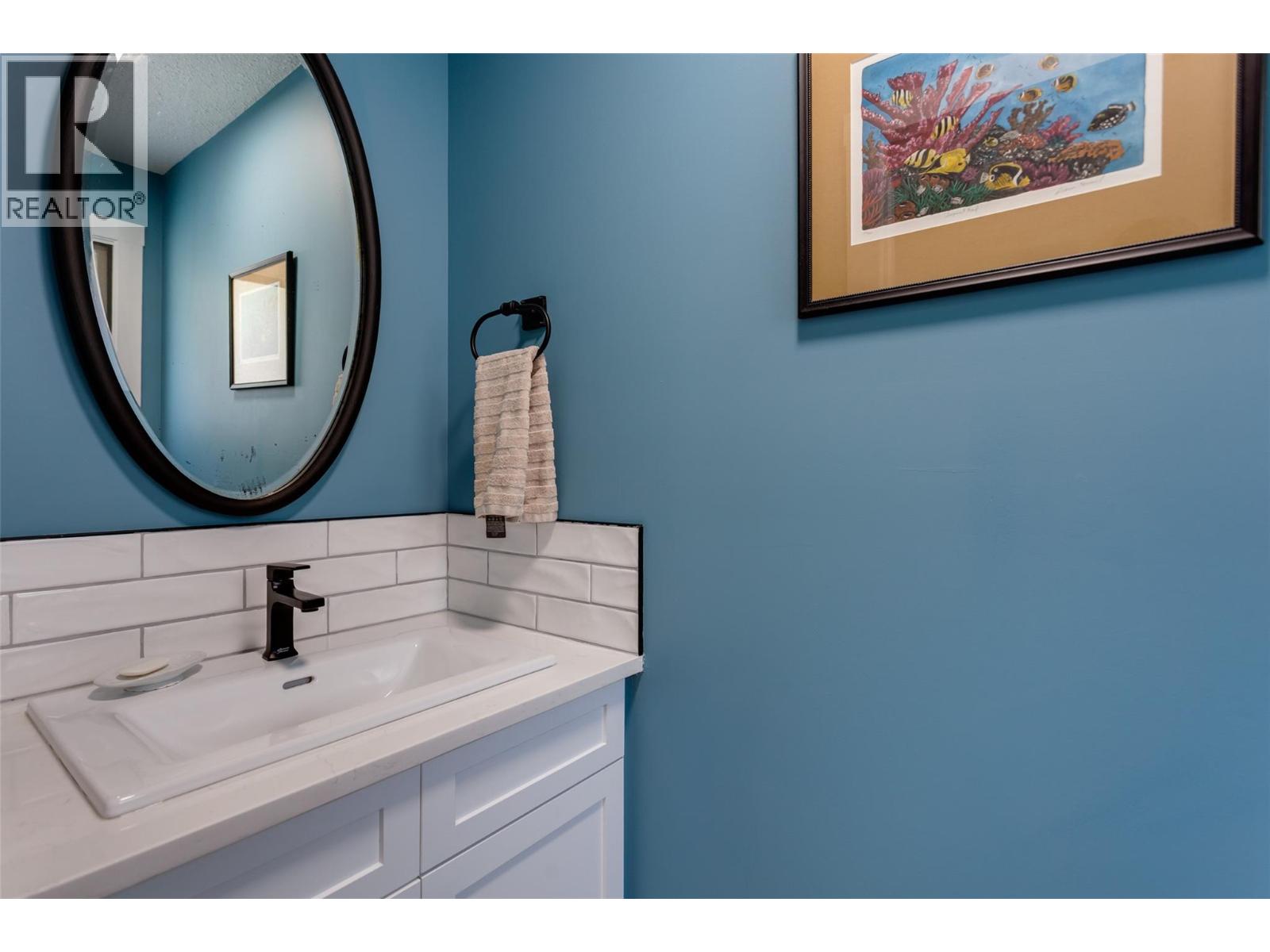 One of the best-priced Lakeview townhouses in Peachland. This walkout rancher features a 180-degree lake and mountain view from both balconies and the master bedroom. The home offers nearly 1,500 square feet of living space with 10-foot vaulted ceilings and a newly designed white kitchen, complete with a stylish backsplash and stainless steel appliances. A gas fireplace adds to the cozy ambiance. Additional updates include high-end flooring, updated bathrooms, new countertops, modern light fixtures, fresh paint, and some new windows with privacy blinds. The spacious master bedroom features a 16 x 7 walk-in closet, a 5-piece ensuite, and a decorative electric fireplace. The low strata fees of $320.00 per month include garbage and a covered carport with additional storage. Okanagan Ridge is a small, 55-plus strata development conveniently located near all amenities. Senior taxes are $1,113 and quick possession is available. This home also offers the potential to be easily renovated back to a two-bedroom layout. (id:6770)