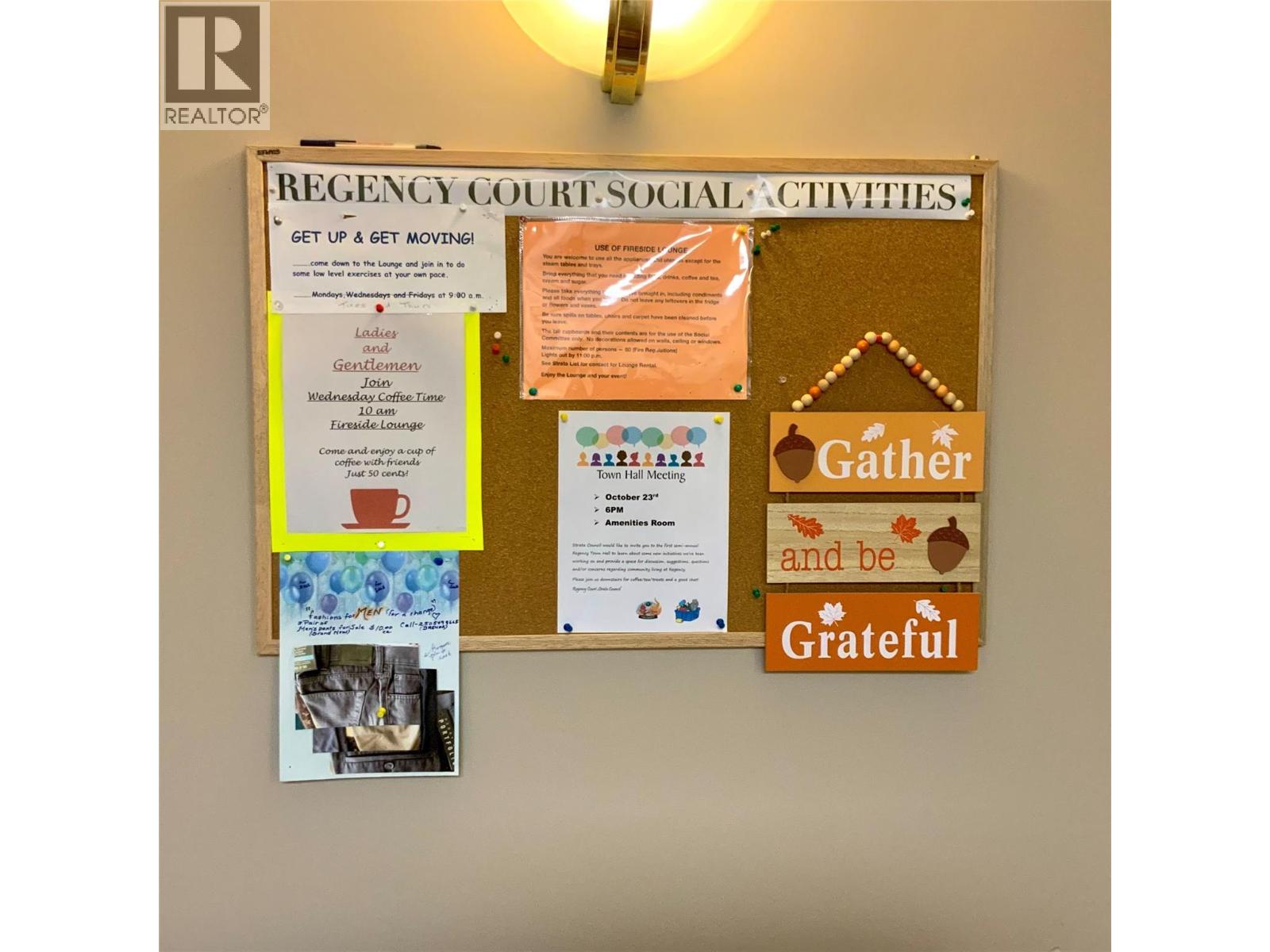 Rare offering, 4th floor 2Bedroom 2bathroom fully renovated unit with a gorgeous east and south views. Don't miss out, these units don't come up often. Top floor unit with nine foot ceilings, 1,102 sq ft plus an approx.100 sq ft covered balcony. Dream kitchen with soft close, white, custom cabinets, high end stainless steel appliances, open concept kitchen /living room. Cozy gas fireplace, heats most of the apartment, gas is included in the strata fees. Great location, on a quiet street, with transit at the door, and only minutes walking to downtown Vernon shops and restaurants. This is the unit you have been waiting for, in one of the most desirable buildings on Centennial Dr. ""Regency Court"" is a 55+, upscale, 4 storey, 65 unit apartment condo complex, with secure underground parking, built in 1994, on a quiet, desirable street, that overlooks downtown Vernon. The building offers independent living for 55+, while providing beautiful common spaces manicured grounds that invite community and socializing. There is a library on the second floor overlooking the inviting open lobby entrance. On the parkade level there is a large community meeting room that opens to a beautiful terrace with BBQ 's and common facilities , there is also an exercise room, and storage facilities. Look no further, find your luxurious and practical retirement right here in Vernon. (id:6770)