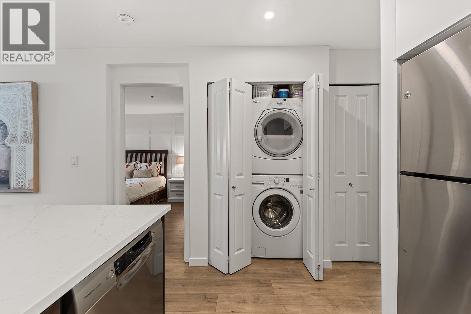 Urban comfort meets resort-style living at The Verve! Tucked away in a quiet corner of the complex, this beautifully upgraded 1-bedroom + den condo is perfect for anyone seeking style, function, and convenience. Highlights include new quartz countertops, stainless appliances, porcelain tile throughout the bathroom, built-in entertainment centre with fireplace, new heating + AC system and a large bedroom with walk-in closet! The open-concept layout flows seamlessly to a walkout patio with a private yard which is ideal for relaxing and entertaining. Residents also enjoy a vibrant community with resort-style amenities, including an outdoor pool, volleyball court, BBQ areas and multiple green spaces throughout the park-like grounds! Pet-friendly with with a dog run and no height restrictions for dogs, this community is ideal for animal lovers. Within walking distance to shops, restaurants, coffee shops, and groceries—plus just 10 minutes to Kelowna International Airport, Downtown, and UBCO. Low-maintenance, modern, and move-in ready with a low strata fee—this is the perfect blend of lifestyle and value at The Verve! (id:6770)
