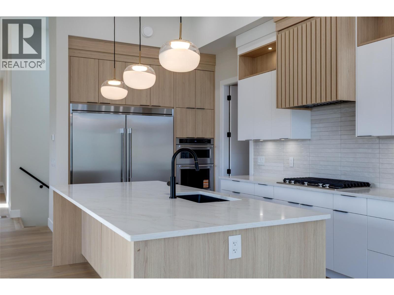 Proudly presented by WESCAN HOMES!!! Discover luxury living in this stunning walkout rancher Villa with no strata fees! Nestled in the prestigious Blue Sky neighborhood of Black Mountain, surrounded by the scenic golf course, this home is situated on a quiet cul-de-sac on a dead-end street – with a beautiful view of Black Mountain, offering the perfect blend of tranquility and convenience. Spanning 3,600+ sq. ft., this impeccably designed home boasts soaring ceilings and breathtaking mountain & valley views. The main residence features 3 bedrooms + den, a 4-piece ensuite, an additional 1.5 baths, and a spacious walk-in closet. A double garage, games room, and rec room provide ample space for relaxation and entertainment, complemented by built-in speakers for a premium audio experience. The high-end appliance package and quartz countertops enhance the elegant kitchen, while the deck and patio offer the perfect outdoor retreat. The legal 1-bedroom suite with optional den comes with a separate entrance, making it ideal for rental income or extended family. A generous-sized yard adds to the home’s appeal. Anticipated completion: end of Nov—don’t miss this incredible opportunity! ***Pictures posted are for right side unit which is finished. Light fixtures are different from right side unit*** (id:6770)
