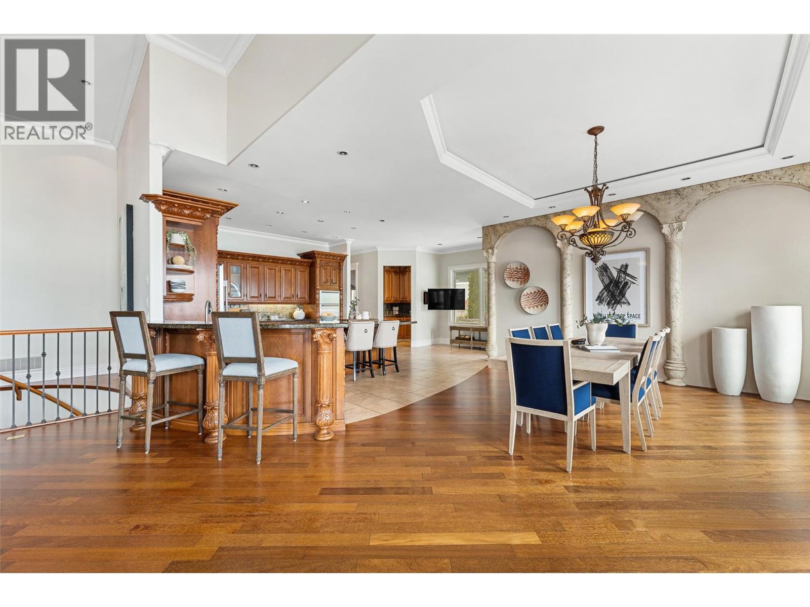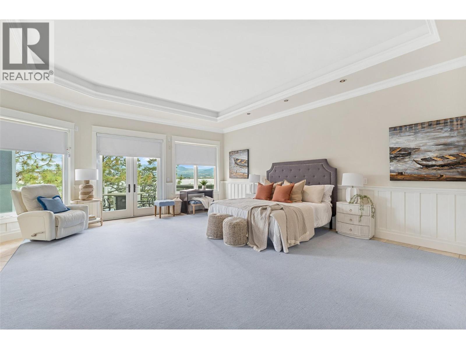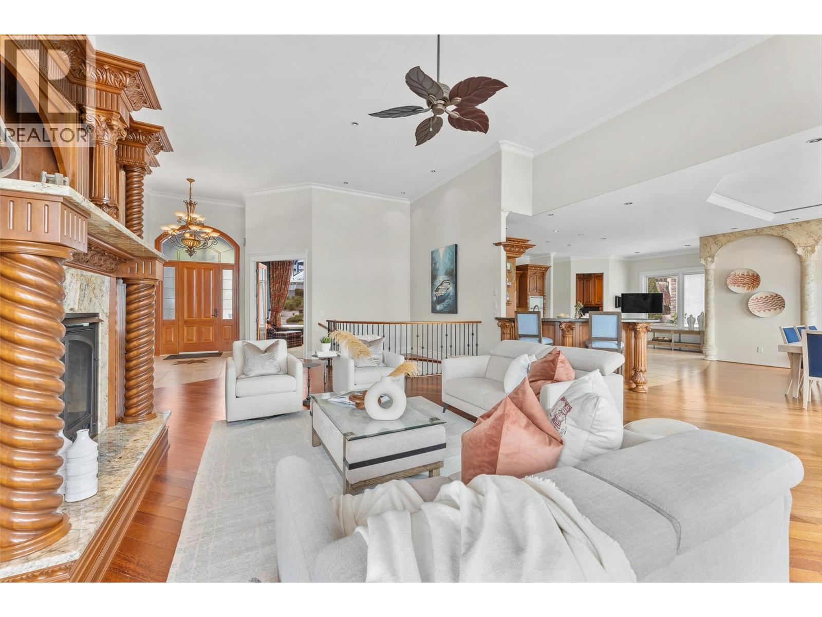 Enjoy sweeping lake and city views from this beautiful home offering over 7000 sq. ft. of living space in the sought-after neighborhood of Lakeview Heights. The home offers 4 bedrooms and expansive areas for entertaining, with 3 levels of lakeview decks. Throughout the home, you’ll find superior craftsmanship, including hand-crafted cabinets, custom wood detailing, wainscoting, coffered ceilings, and molding. On the main level, enjoy open-concept living with high ceilings, a gas fireplace, and stunning lake views as the backdrop. The generous-sized kitchen is ideal for hosting and gathering, finished with custom wood cabinetry, granite countertops, and stainless-steel appliances, including a gas range. Step through the sliding doors to a large deck offering the perfect setting for al fresco dining and outdoor living. The expansive main floor lakeview primary bedroom features built-ins, a walk-through closet, and a large 5-piece en suite with a soaking tub and a glass shower. The lower level is an entertainer’s delight with a rec room, indoor pool, gym, home theater, 2 beds, and 3 baths, and a hot tub on the deck. The in-law suite on the basement level offers 1 bedroom, 1 bathroom, a kitchen, a living room, and another spacious covered patio. The home also includes a two-car garage with an oversized driveway and low-maintenance landscaping. This is an excellent neighborhood just minutes from downtown Kelowna, Okanagan Lake, and West Kelowna amenities. (id:6770)