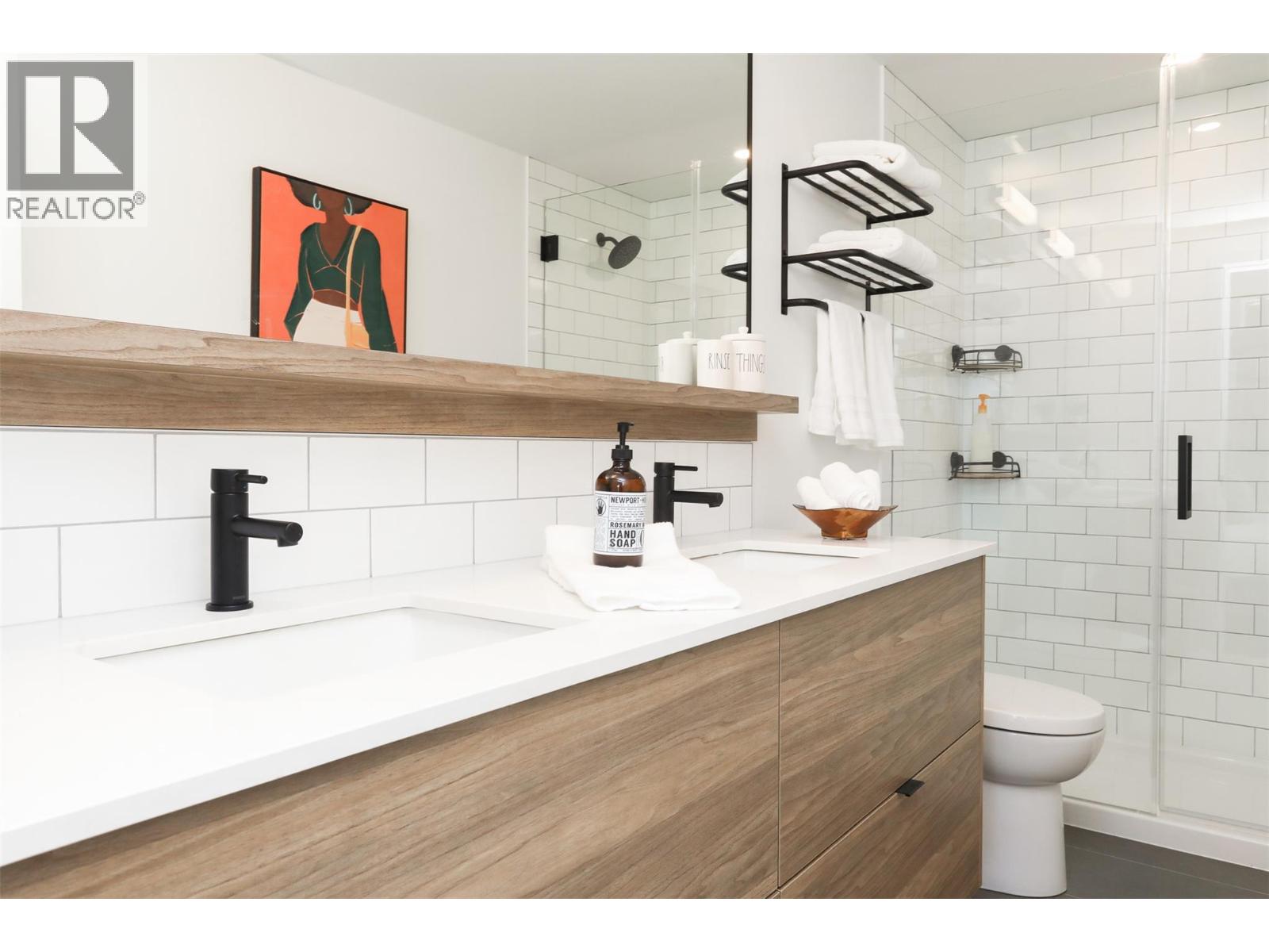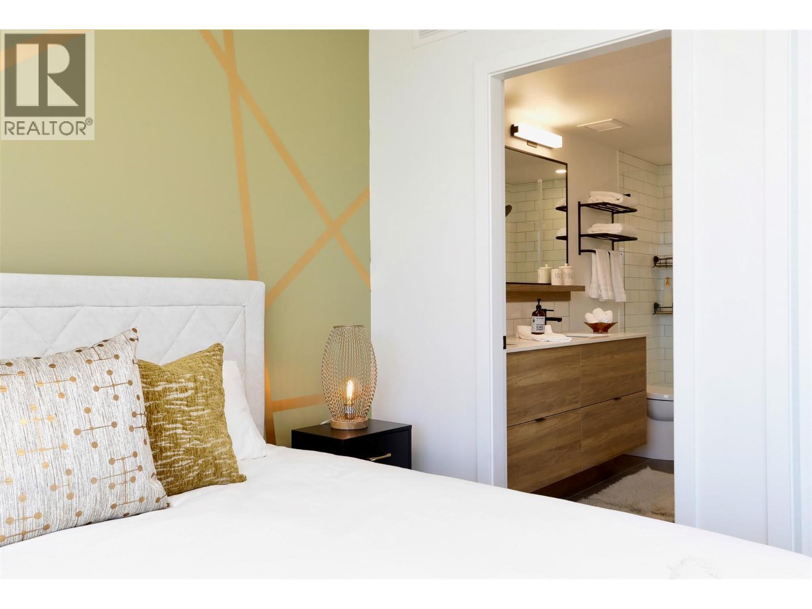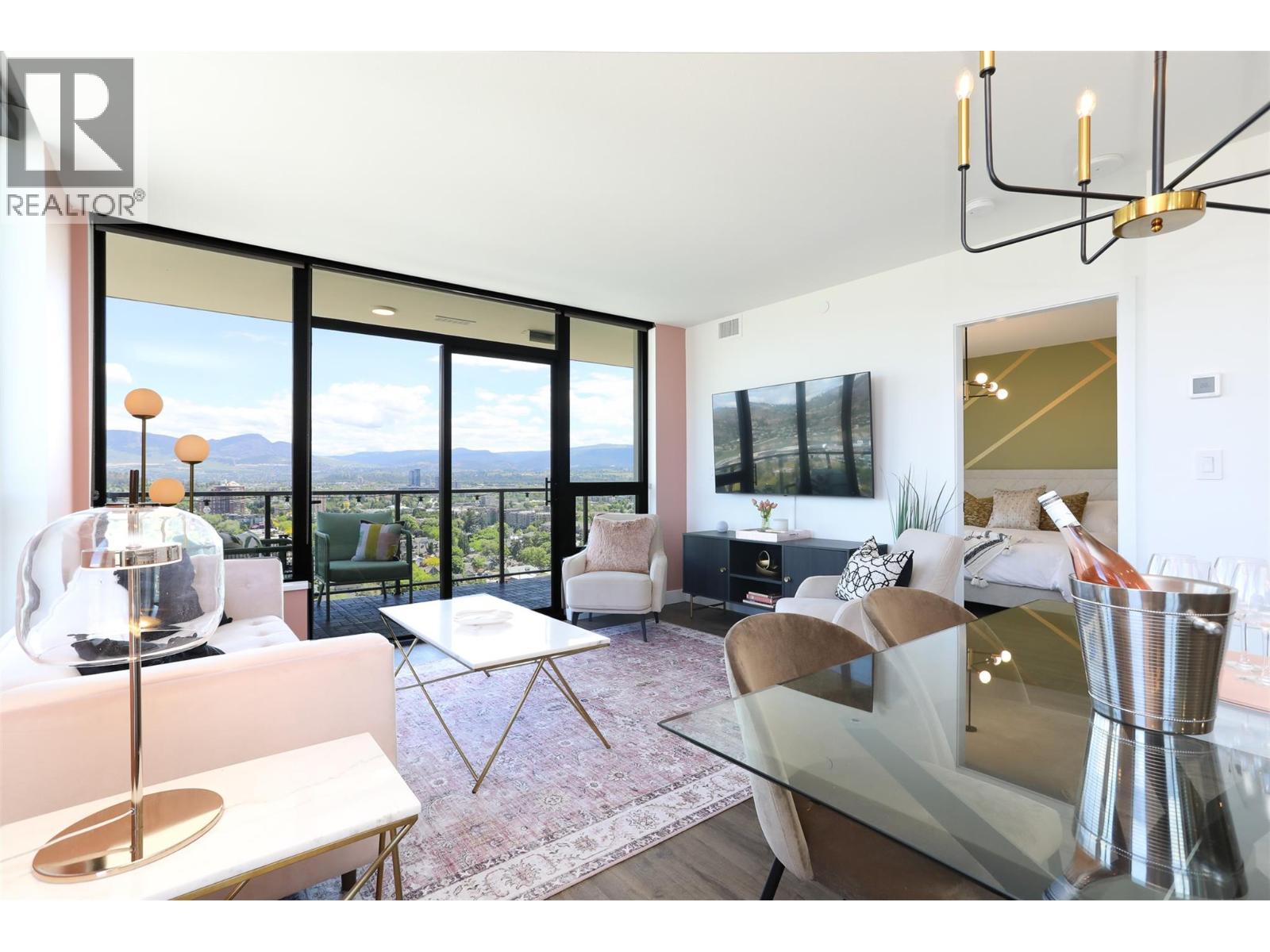 SUB-PENTHOUSE. TWO PARKING. VIEWS. | This exceptional 2-bedroom, 2-ensuite corner suite sits on the sub-penthouse level of Brooklyn, a landmark 23-storey concrete tower by Mission Group in the heart of downtown Kelowna. With over 930 sq. ft. of interior living and a 152 sq. ft. covered patio, this home captures breathtaking lake, mountain, and city views from nearly every angle. Designed for both style and functionality, the residence features smart home integration, modern cabinetry, quality appliances, and an intelligent layout that maximizes light and privacy. As one of the only units with two secured parking stalls, this is a rare and valuable offering in the downtown core. Brooklyn blends urban convenience with lasting quality - solid concrete construction ensures enhanced soundproofing and long-term durability. Located in the lively Bernard District, you’re just steps from Kelowna’s best restaurants, cafes, breweries, boutiques, and the waterfront. With a Walk Score of 98, daily errands and adventures are all within reach. Residents enjoy premium amenities including a rooftop terrace with panoramic views, a Club Lounge, BBQ area, and pet-friendly features like a dog wash station and access to dog beaches nearby. Whether you're seeking a stylish primary home, luxury down-sizer, or performing investment, this residence delivers downtown living at its finest. EXCEPTIONAL PRICE FOR THIS OFFERING. (id:6770)