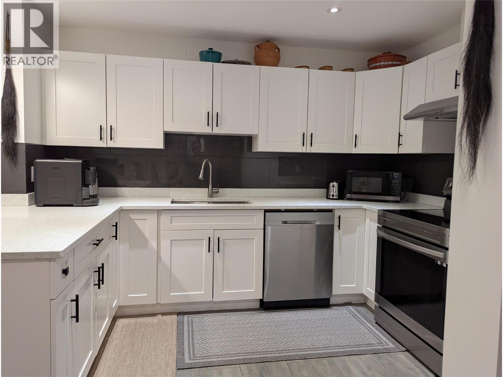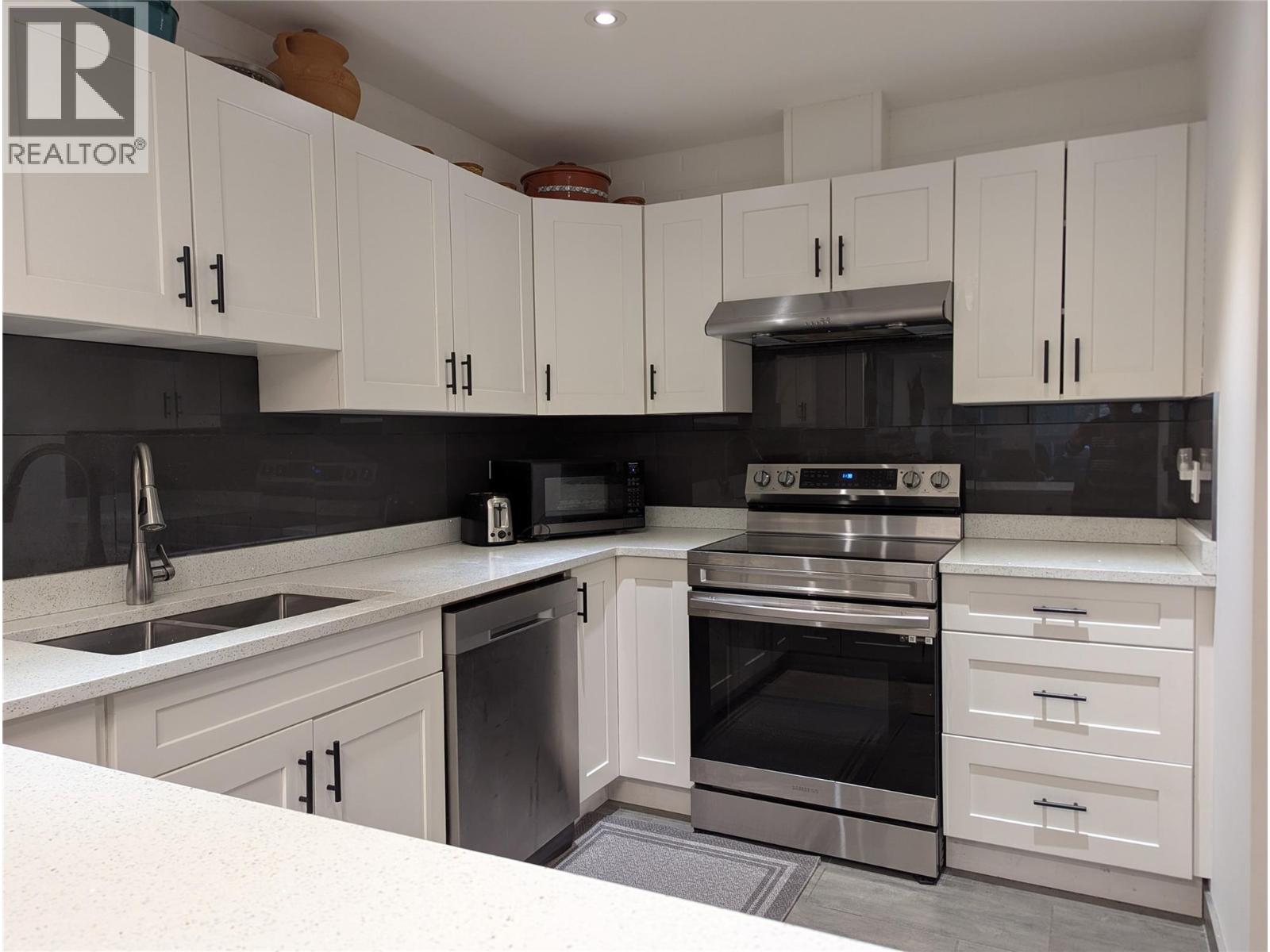 Beautifully renovated move-in ready home in a steel and concrete building. This 2 bedroom home has been updated with new engineered hardwood floors, stylish quartz counter tops, new cabinets, appliances and sink in the kitchen, a stand-alone bathtub and new vanity and tiles in the bright and modern bathroom. The balcony has been enclosed and the baseboards are all new. Nothing to be done but move in. The strata fees are reasonable and include hot water and shared laundry on each floor as well as the use of the hot tub and sauna as well as the building maintenance and the use of the social rooms, including a kitchen and meeting/art room. It is possible to rent an additional covered parking spot and an additional storage unit if required. Enjoy the advantages of this great location, very close to the Parkinson Recreation Centre, the Capri Mall and Orchard Park. Rentals allowed with no age restriction, no pets allowed. (id:6770)