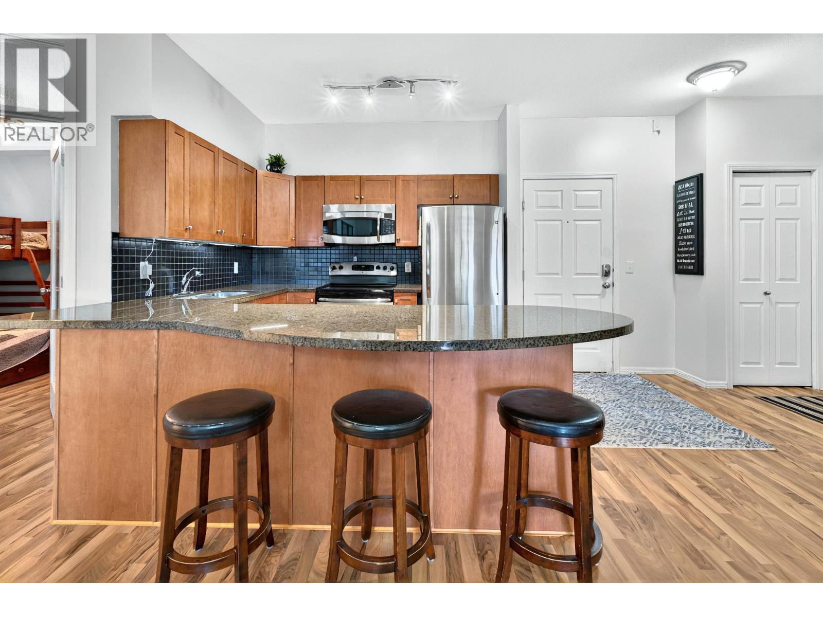 PRICED TO SELL! SELLER WILL PAY 1 YEAR OF STRATA FEES. Bright and spacious 2-bedroom + den, 2-bath condo with peaceful mountain and golf course views—just a 2-minute walk to 36 holes of championship golf and 20 minute walk to the UBCO. The open layout features a large kitchen with bar seating, a comfortable living and dining area, and a generous covered deck. The king-sized primary bedroom offers a private ensuite, while the den and second bedroom provide great flexibility. Highly desirable for both investors and owner-occupiers—popular with students for 8-month or full-year rentals. Amenities include an outdoor pool, hot tub, gym, bike storage, secure underground parking, and ample street parking. Bus stop at the front door and minutes to groceries, restaurants, and the airport. Pet-friendly (with restrictions), move-in ready, new washer/dryer, and most furnishings can be included. (id:6770)