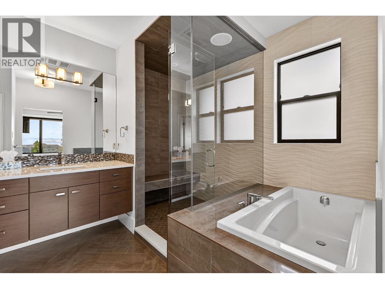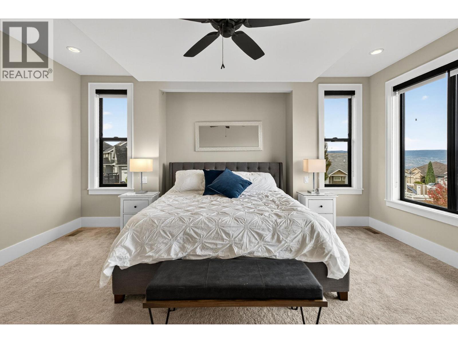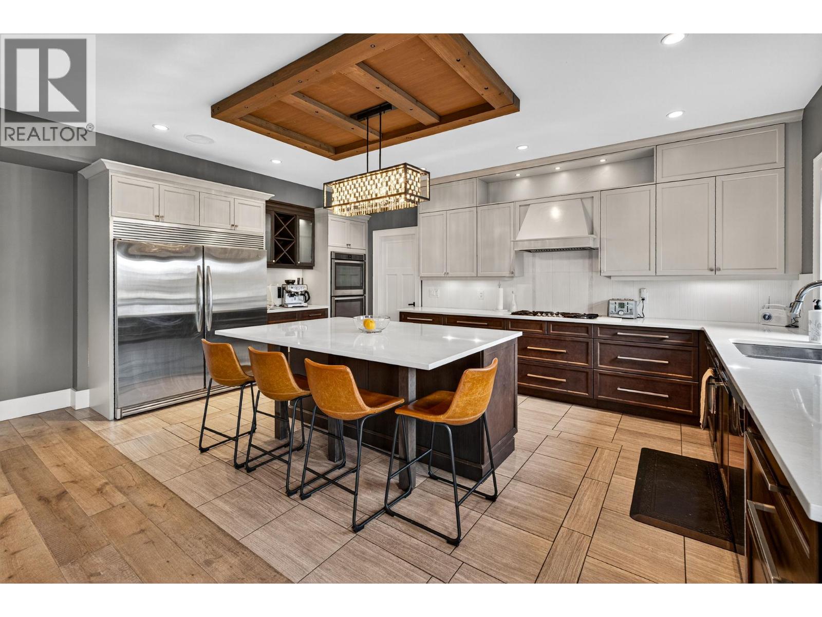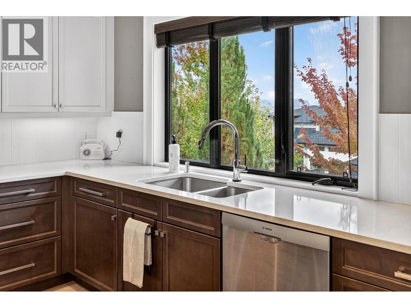Ideally situated on a quiet, dead-end street in one of Kettle Valley’s most sought-after neighbourhoods, this exceptional residence exemplifies premium family living. Occupying a landscaped corner lot, the property features expansive lake and mountain views and is conveniently located across from walking and hiking trails. The interior offers both functionality and elegance, with a double-sided fireplace that unites the main floor living and dining areas in a welcoming atmosphere. Hardwood flooring extends throughout the main level, complemented by plush carpeting in the bedrooms. The contemporary two-tone kitchen is equipped with stainless steel appliances, a spacious walk-in pantry, and modern cabinetry for optimal utility and style. A dedicated office with a private entrance provides an opportunity for a home-based business. All measurements are approximate. The upper level boasts three well-designed bedrooms, including a primary suite with impressive lake views, a walk-in closet, and a spa-inspired ensuite. Everyday convenience is enhanced by a walk-through laundry room connected directly to the primary suite. On the lower level, a self-contained in-law suite offers versatile accommodations suitable for extended family members, older children, or guests. The heated four-car garage includes an RV hookup and ample space for a large RV or boat, catering to outdoor enthusiasts. This residence is positioned just minutes from schools, parks, shopping, and biking trails. (id:6770)