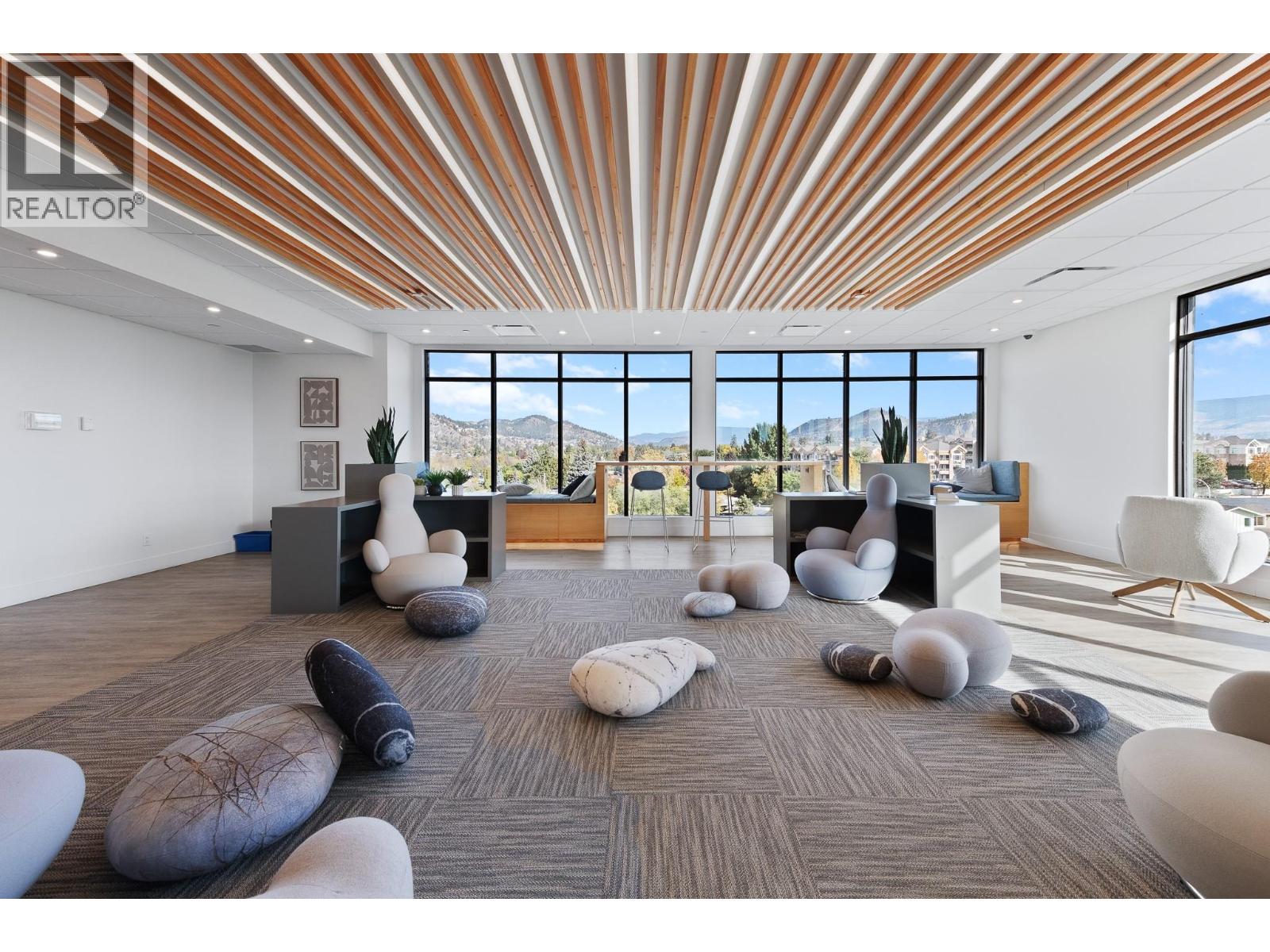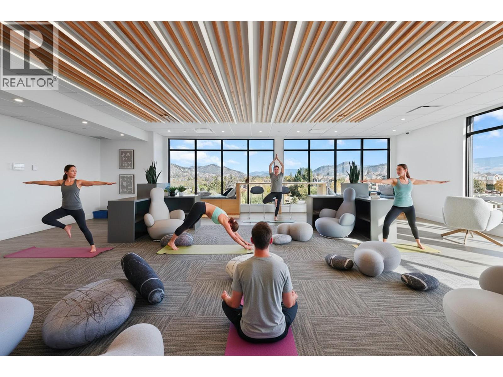 Five Crossings is an super cool building. It's so amenity rich and truly a lifestyle unlike any other. This thoughtfully designed micro suite maximizes space with a built-in Murphy bed, clever storage, a sleek galley kitchen, and a fully curated furniture package. The building offers resort-style amenities including a well equipped fitness centre, bike storage, dog wash, and a sophisticated lounge with a full kitchen, golf simulator, pool table, and elegant fireplace. The sixth floor reveals a serene yoga lounge and an expansive rooftop deck with BBQ area, covered outdoor dining/fireplace with breathtaking city and mountain views. The rooftop also features many cozy fire pit areas to enjoy with friends. On the ground level, enjoy a bocce area and a dog run. Additional conveniences include MODO car share, EV chargers, and a nice park across the street, all steps from Capri shopping and many restaurants. This condo combines style, comfort, and an unrivaled urban lifestyle. (id:6770)