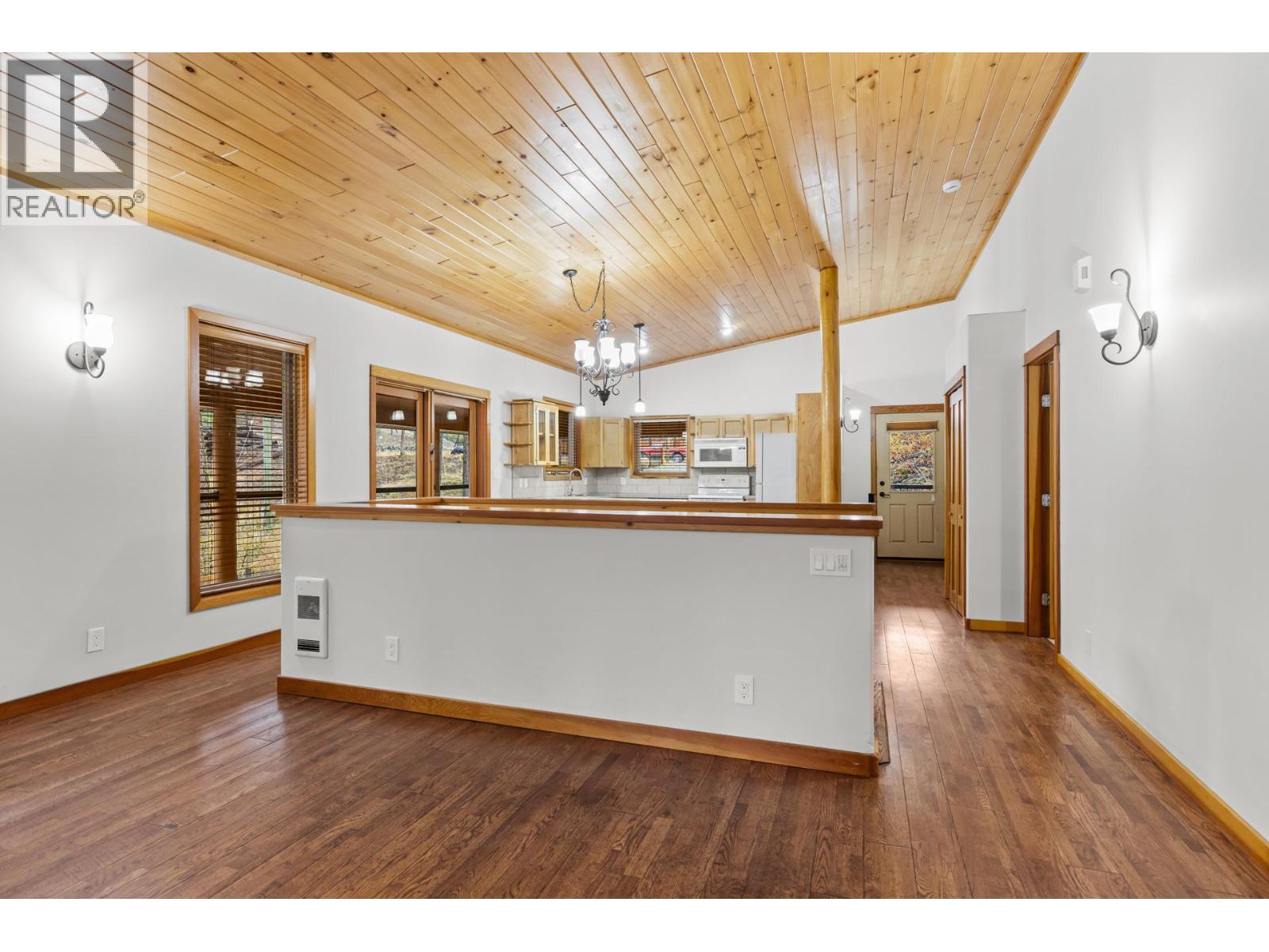 Welcome to this cozy custom-built home, located on generous 0.44 acre lot, close to parks, trails, and recreation, with four bedrooms, three bathrooms, and 2,383 square feet of living space. The main level features open concept living with vaulted ceilings, beautiful wood ceilings, and a full wrap around covered deck. The primary bedroom has a large closet and full ensuite, while a second bedroom and full bath finish his level. Downstairs, the basement has been completely redone with new floors, paint, lighting, and a beautiful bathroom with dual vanities. This level is roughed in for a suite with separate entrance, so there is great income potential. There is an oversized detached double garage + limitless outdoor parking, perfect for all the cars, toys, and storage. Well maintained exterior with beautiful woodwork and beams, and a long-lasting metal roof. A great property for those who want a lot of space, a lot of privacy, income potential, and beautiful natural surroundings. (id:6770)
