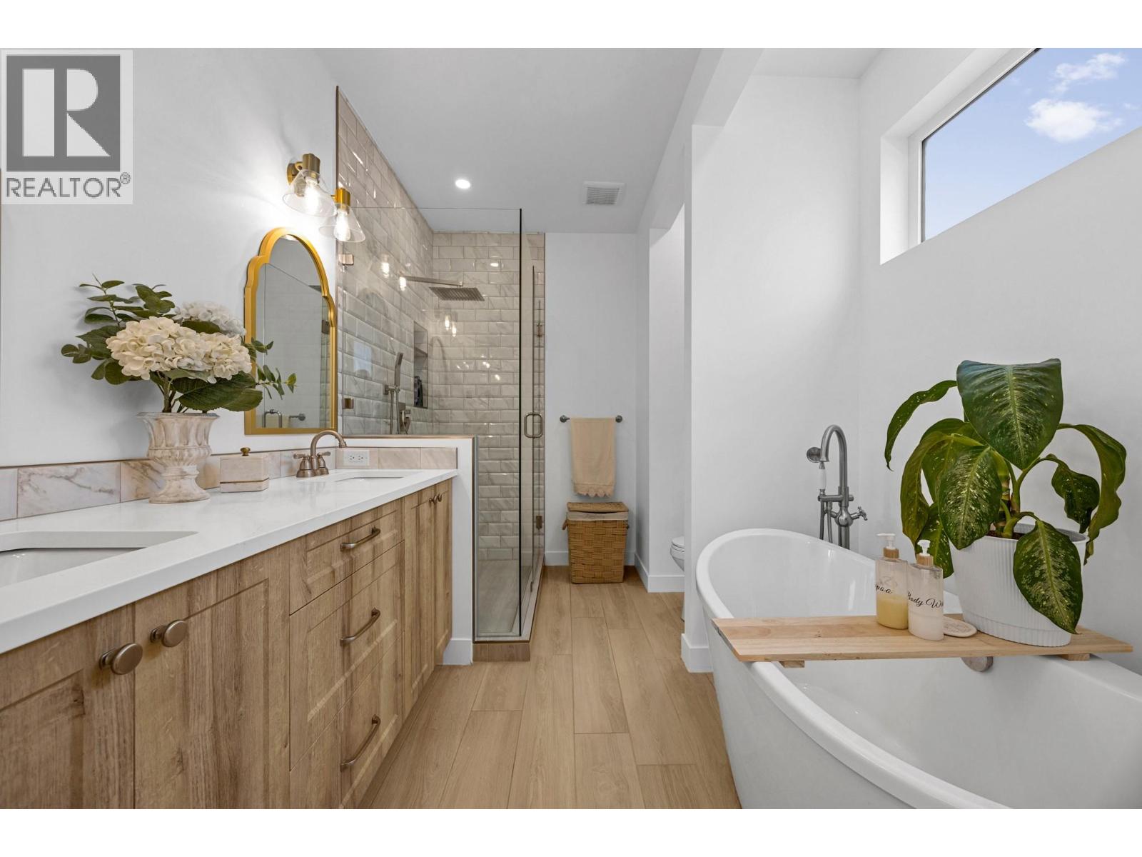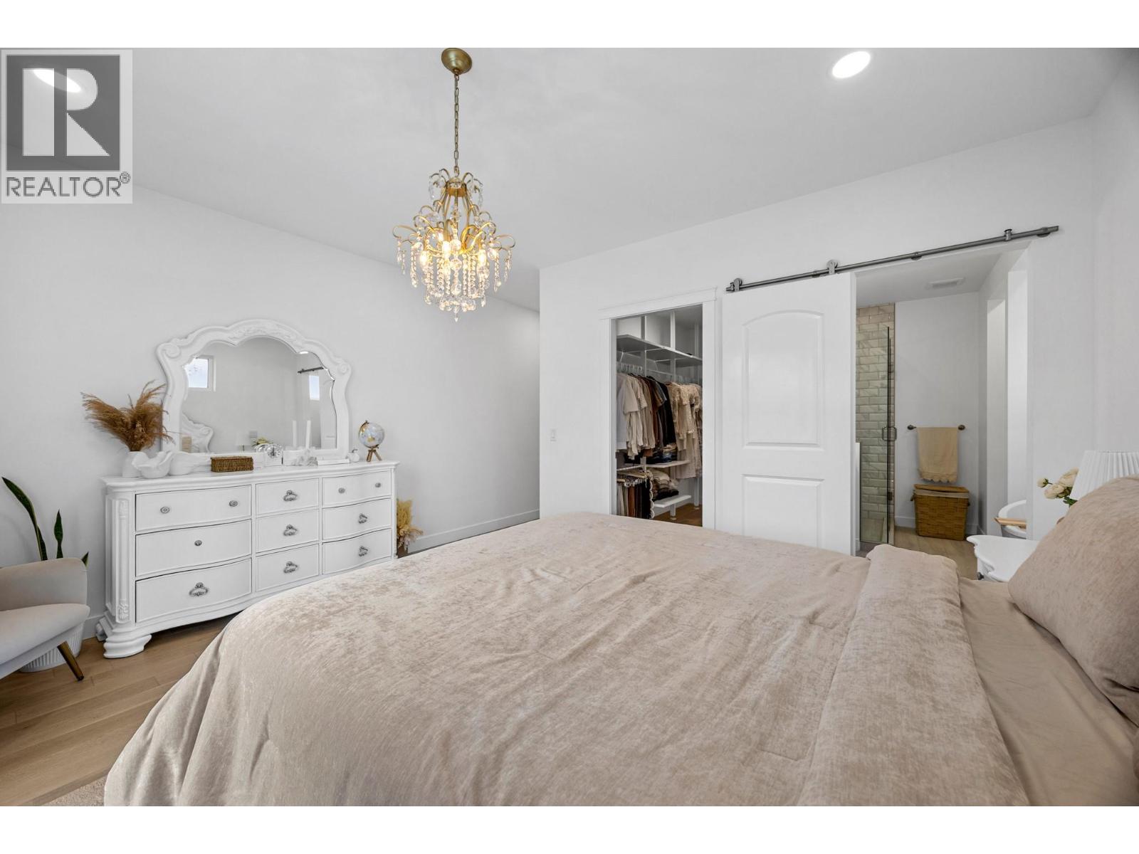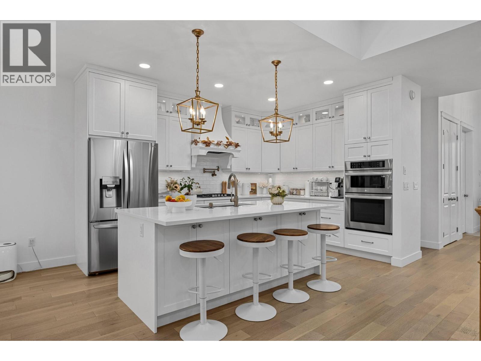 Experience modern elegance in this beautifully designed 4-bedroom, 3-bathroom walk-out rancher offering 3,701 sq. ft. of refined living space. Ideally located near Kalamalka Rd, this home blends contemporary comfort with exceptional income potential. The main level features an open-concept design filled with natural light, engineered hardwood flooring, and access to a spacious covered deck for year-round enjoyment. The modern kitchen boasts white soft-close cabinetry, quartz countertops, a large island with a breakfast bar, stainless steel appliances, and a convenient pantry. The primary suite offers a walk-in closet and a luxurious 6-piece ensuite with a stand-alone soaker tub and glass-enclosed shower. Two additional bedrooms off the foyer provide flexible options for guests, children, or a home office. The lower-level walk-out features a legal 2-bedroom suite with a private entrance, a full kitchen, dining area, family room, and separate laundry—perfect for rental income or extended-family living. Ample parking includes space for an RV and a boat. (id:6770)