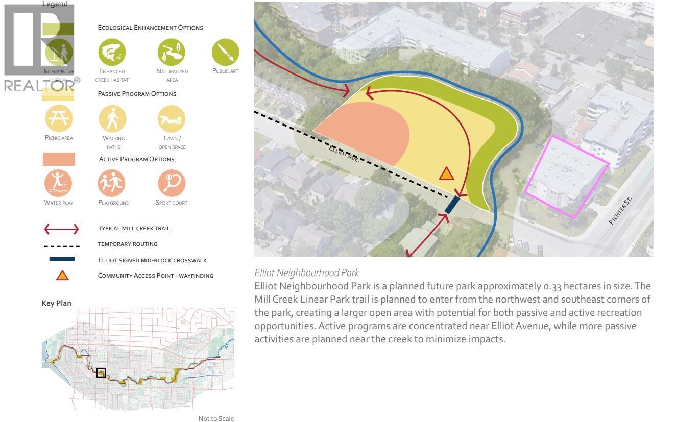 This spacious 2 bedroom, 2 bathroom corner suite offers incredible natural light, comfort, and convenience in one of Kelowna’s most desirable central locations, steps from the Off-leash dog park at Rowcliffe Park. Freshly painted with new flooring throughout, the home features a large kitchen that opens onto a bright living and dining area complete with a gas fireplace and crown mouldings. Enjoy year-round outdoor living on the covered and enclosed patio. The primary bedroom includes two windows, a walk-in closet, and a full ensuite bath, while the second bedroom positioned on opposite end of unit for added privacy, offers excellent light and space. A large laundry and storage room adds to the functionality. Additional features include secure parking, a storage locker, central heating and cooling, and strata fees that cover heat, hot water, natural gas, and the gas fireplace. Located in the Kelowna General Hospital district and right beside the planned future 81 Acre Elliot Park, this bright and well-kept home provides easy access to downtown, shops, restaurants, beaches, and parks - close to everything you need. (id:6770)