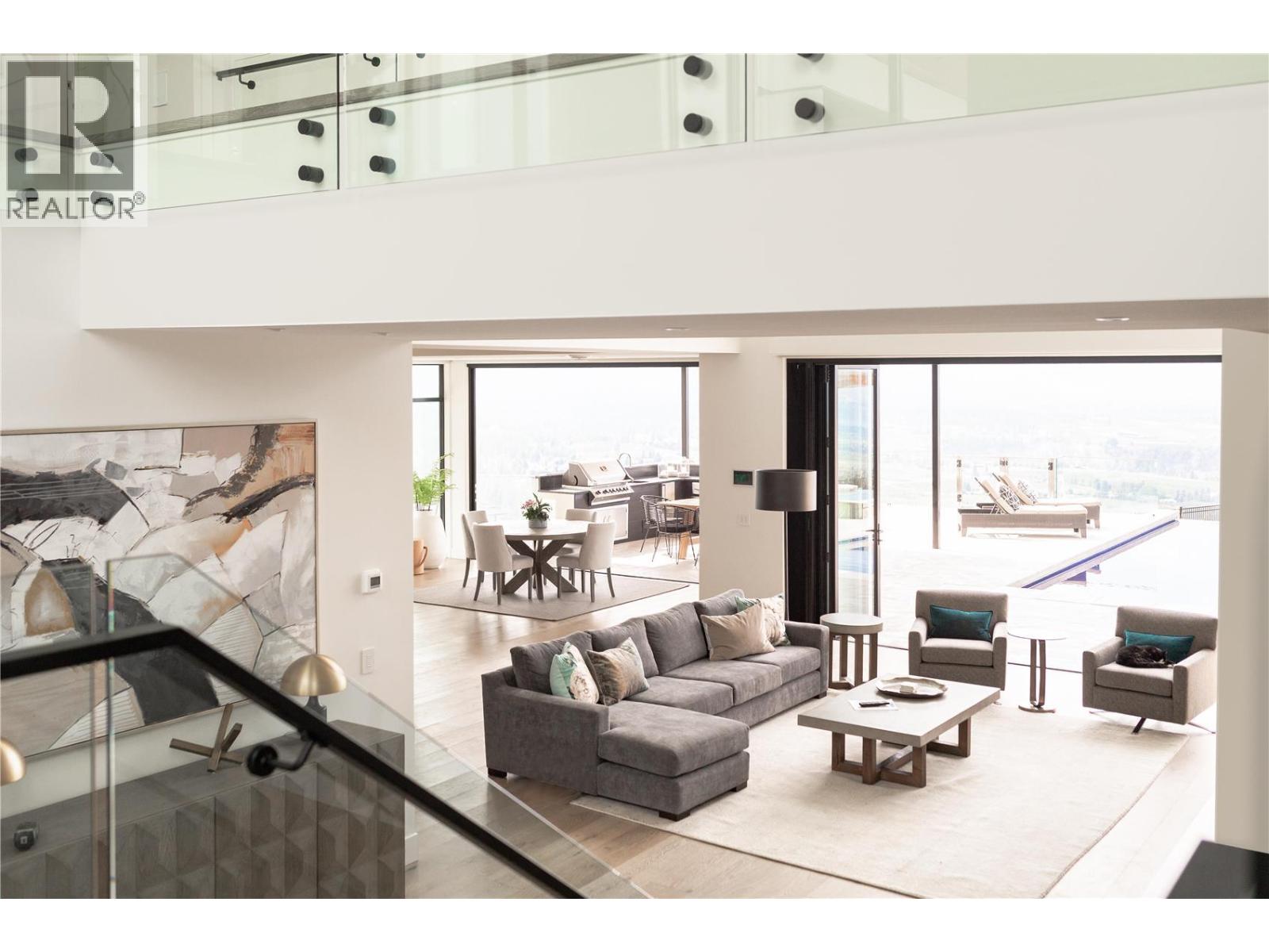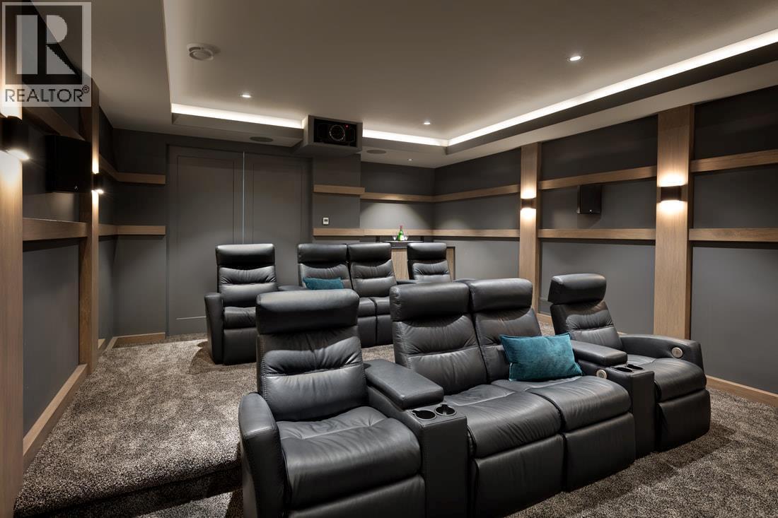 Perched on an expansive double lot, this stunning seven bedroom, six bathroom home boasts 270 degree views of the gleaming lake, city lights, and rolling hills. You are welcomed with soaring ceilings and windows to maximize natural light. The open concept main level starts with the great room, leading into the gourmet kitchen with butler pantry. A dedicated dining room with two-way fireplace and built-ins throughout. Unparalleled outdoor living includes a stunning infinity edge pool and hot tub, lounging areas, and covered outdoor kitchen. Upstairs are three large bedrooms including the luxurious master wing, with dedicated laundry and private patio. Downstairs is a family paradise with games area with pool table, lounge area, and large wet bar to accommodate every occasion. Bonuses include a cinema and full indoor sports court. There are two triple garages, plus a huge back yard. Above the garage is a luxurious legal suite. With incredible space and outdoor living, this property is irreplaceable. (id:6770)