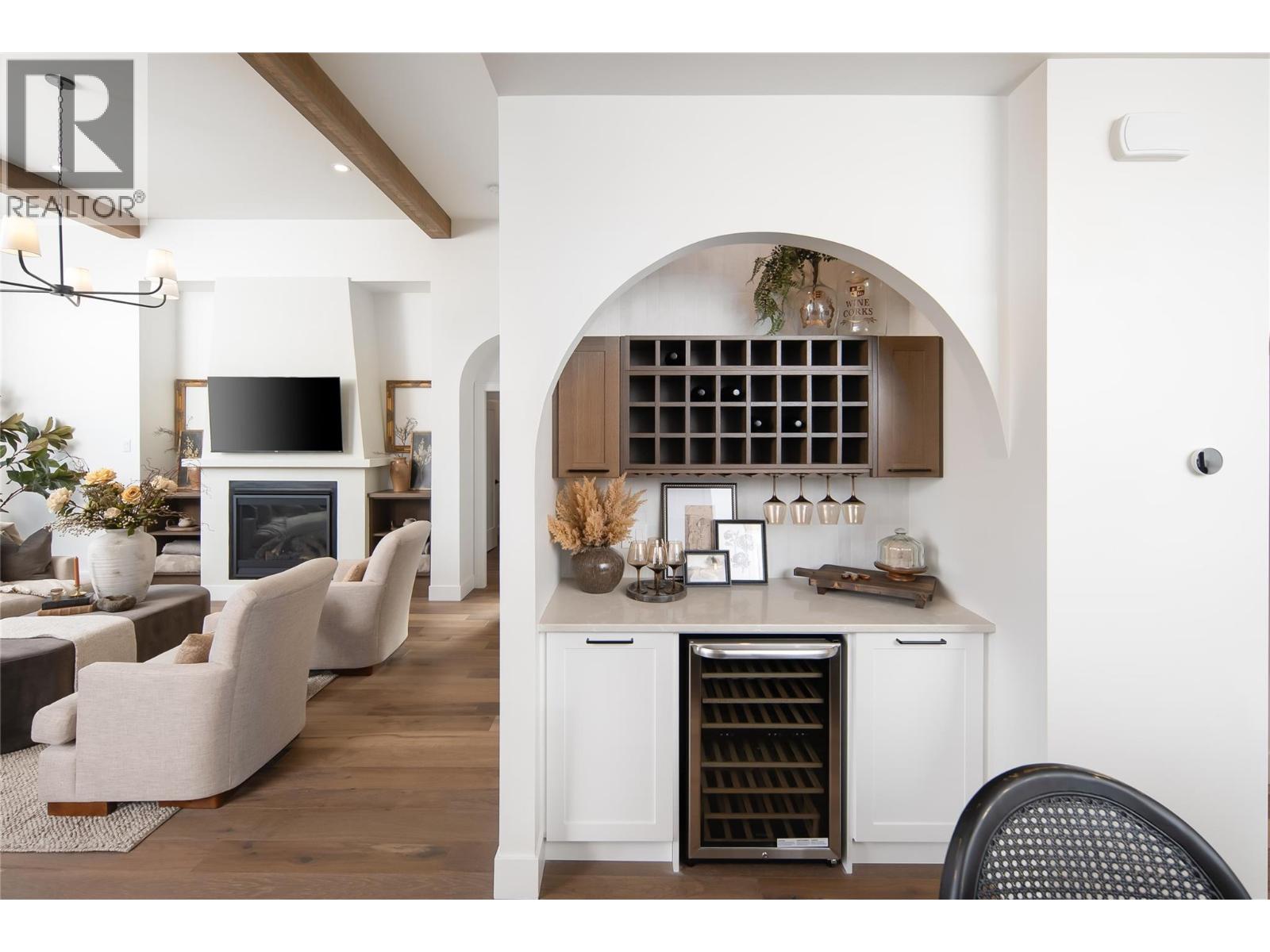 Former SHOWHOME with over $400,000 in upgrades, this Wesmont Homes masterpiece in Armstrong’s growing Rosemont subdivision embodies moody luxury and bold design with soaring ceilings, a striking front office with dark, dramatic walls, and a great room accented by elegant wood beams. The entertainer’s kitchen is both stunning and functional, showcasing custom built-ins, a wine fridge, cabinetry in the nook area, a coffee and wine bar, Fisher & Paykel fridge, and 36” gas range with pot filler—perfect for hosting or everyday living. The primary suite offers a serene retreat with a custom headboard wall, heated tile flooring in the ensuite, and upgraded shelving in the walk-in closet. The finished basement continues the upscale design, with a spacious entertainment area anchored by a bar with tile flooring, bar fridge, and sink, plus two additional bedrooms and a full bath with heated tile—ideal for family, guests, or weekend gatherings. Step outside to your backyard oasis featuring an in-ground 10x16’ pool, roughed-in space for a future hot tub, built-in fire pit, patio, artificial turf, and putting green—completely maintenance-free. Additional highlights include a custom laundry/mud room with cabinetry, solar panels (2.04kW, 6-panel system), and thoughtfully designed spaces that blend texture, contrast, and timeless sophistication. This is modern luxury at its finest—claim your place among Armstrong’s most coveted homes and make this statement property your own. (id:6770)