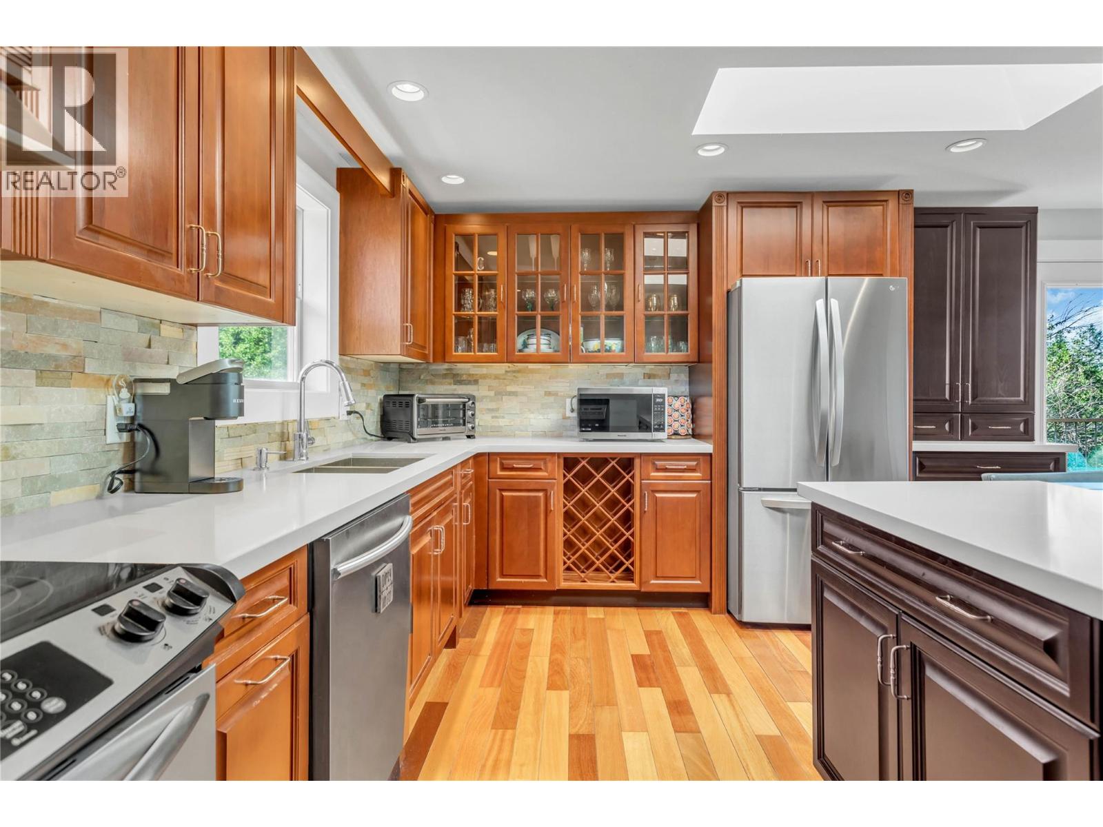 This amazing home set in the tranquility of Carrs Landing. 4-bed, 2-bath home offers breathtaking views in every direction, including stunning lake scenery. The home has a studio in-law suite with Murphy Bed, that was previously licensed for short term rentals. No through road leading to the Maki Coral Beach Trail right trail. The spacious property boasts ample parking for vehicles and recreational toys, an expansive front yard, fully fenced backyard, underground irrigation and a well-constructed storage building for added convenience. Step onto the inviting wrap-around deck and through the front door, where an open-concept living, kitchen and dining area welcomes you. The cozy gas fireplace, set within a stunning stone feature wall, compliments the custom-designed kitchen with quartz countertops and skylights that flood the space with natural light. Spanning over 1,900 sq. ft., this home has been thoughtfully upgraded with a 2019 A/C unit, furnace, and hot water tank, along with a 2016 kitchen renovation, a Type 2 septic system and a durable roof installed in 2008. Enjoy the ultimate Okanagan lifestyle with walking distance access to Gable Beach, Coral Beach and 50th Parallel Winery, plus easy proximity to Predator Ridge, Sparkling Hill Resort, Kelowna International Airport and all the amenities of Lake Country and Vernon. Don’t miss out—schedule your private viewing today! (id:6770)