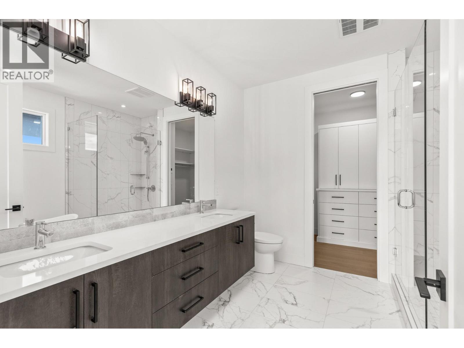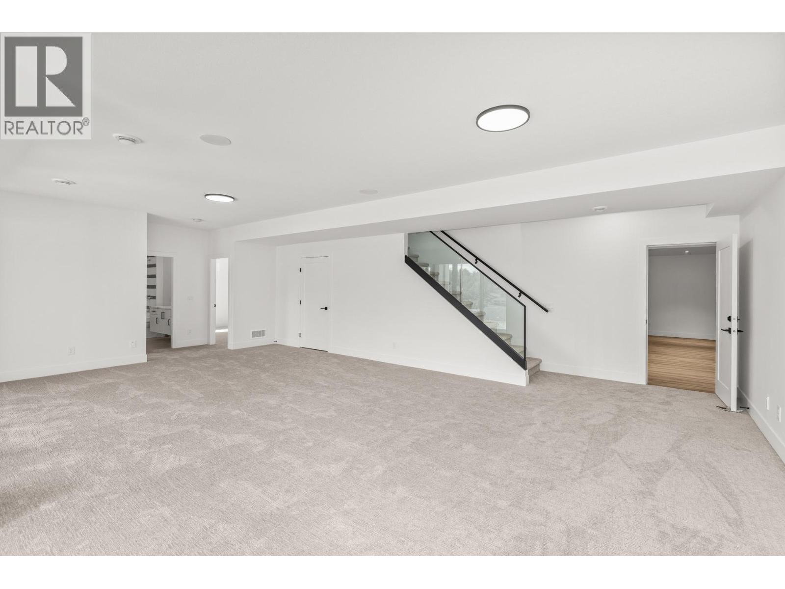 Brand New Walkout Rancher with Legal Suite! Welcome to this stunning new home offering sweeping valley and mountain views. Every detail has been thoughtfully designed — from the custom tile work and chic modern color palette to the smart, open-concept layout. The main floor features a gourmet island kitchen with a gas cooktop, overlooking the Great Room with a unique Hydra fireplace and floor-to-ceiling windows that flood the space with natural light. A spacious laundry room with abundant cabinetry adds everyday convenience. You’ll also find a second bedroom and a stylish powder room on this level, ideal for guests or family. The bright living and dining areas flow seamlessly onto a large covered deck, perfect for entertaining. The elegant primary suite enjoys a gorgeous outlook and features a luxurious ensuite with double sinks, a soaker tub, and an oversized glass and ceramic shower, plus a generous walk-in closet. The lower level includes two additional large bedrooms, a full 5-piece bath, a recreation room, and access to a covered patio. A self-contained legal one-bedroom suite offers flexible options for guests or rental income. Additional highlights include an oversized double garage with an extra-wide driveway, superior insulation and airtight construction, and Energy Step Code 3 compliance (R24 walls and R60 ceilings) for exceptional energy efficiency. Located just 20 minutes to downtown, and 30 minutes to Big White Ski Resort. 10-Year New Home Warranty (id:6770)