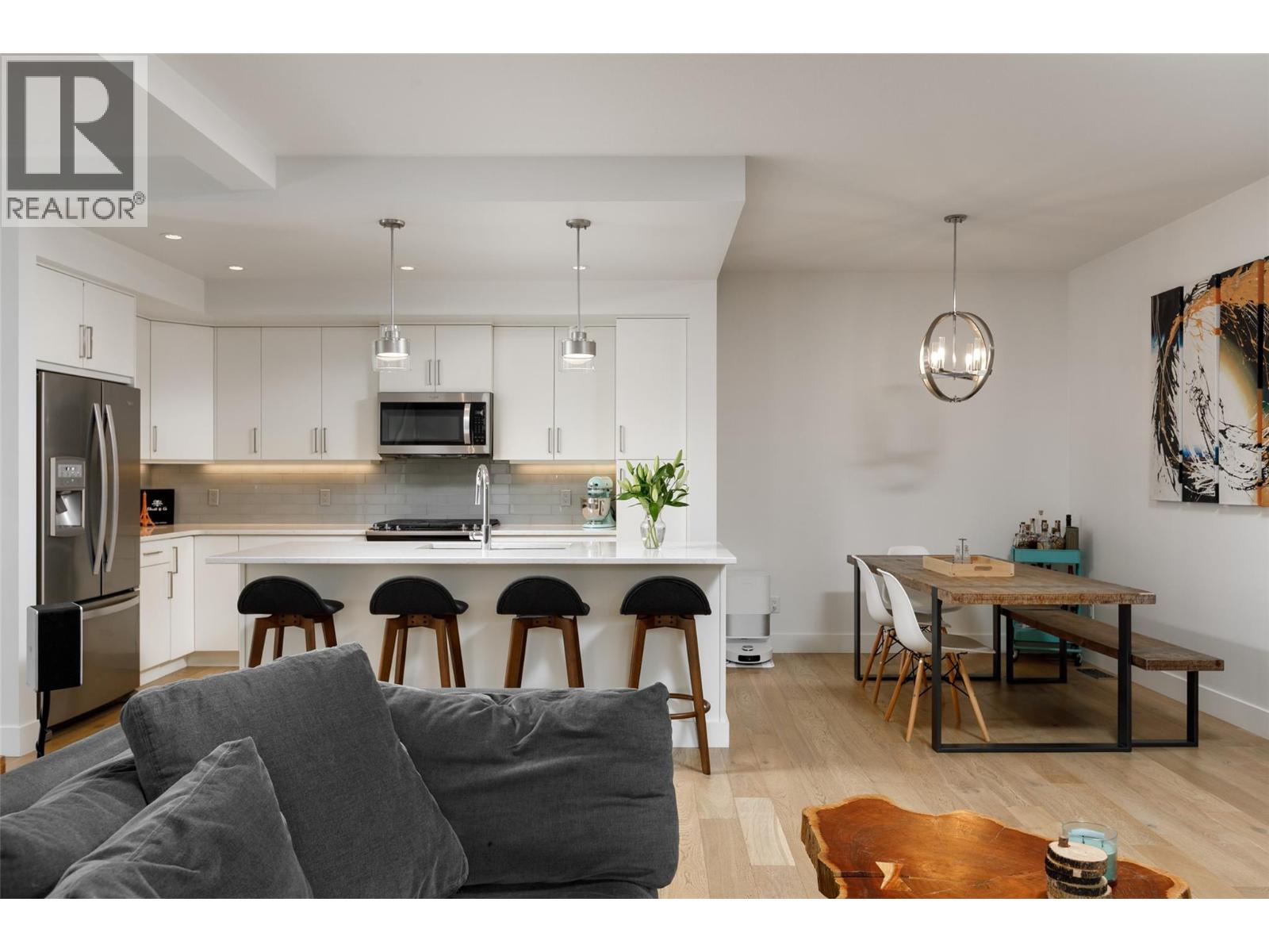 Modern lines and classic shades set the stage for this beautifully finished, move-in-ready home just a short walk from downtown Kelowna and only two blocks from the Brewery District. As you enter, you’ll notice the engineered hardwood floors, custom fireplace feature, and a gourmet kitchen with quartz counters, quality appliances, a gas stove, and a large central island with a wine fridge. The comfortable living area opens directly to the main floor patio for easy indoor–outdoor living. A large powder room and an oversized heated single garage with 220V power and EV-charger rough-in complete the main level. Stairs lead down to an almost 700 sq. ft. 5' crawlspace, offering exceptional storage. Upstairs, you’ll find two true primary bedrooms - each with a generous ensuite and walk-in closet - along with a convenient laundry room. The top floor opens to a very private 400 sq. ft. rooftop deck with gorgeous mountain views. And with no strata fees, this home offers both quality and value in a prime location. (id:6770)