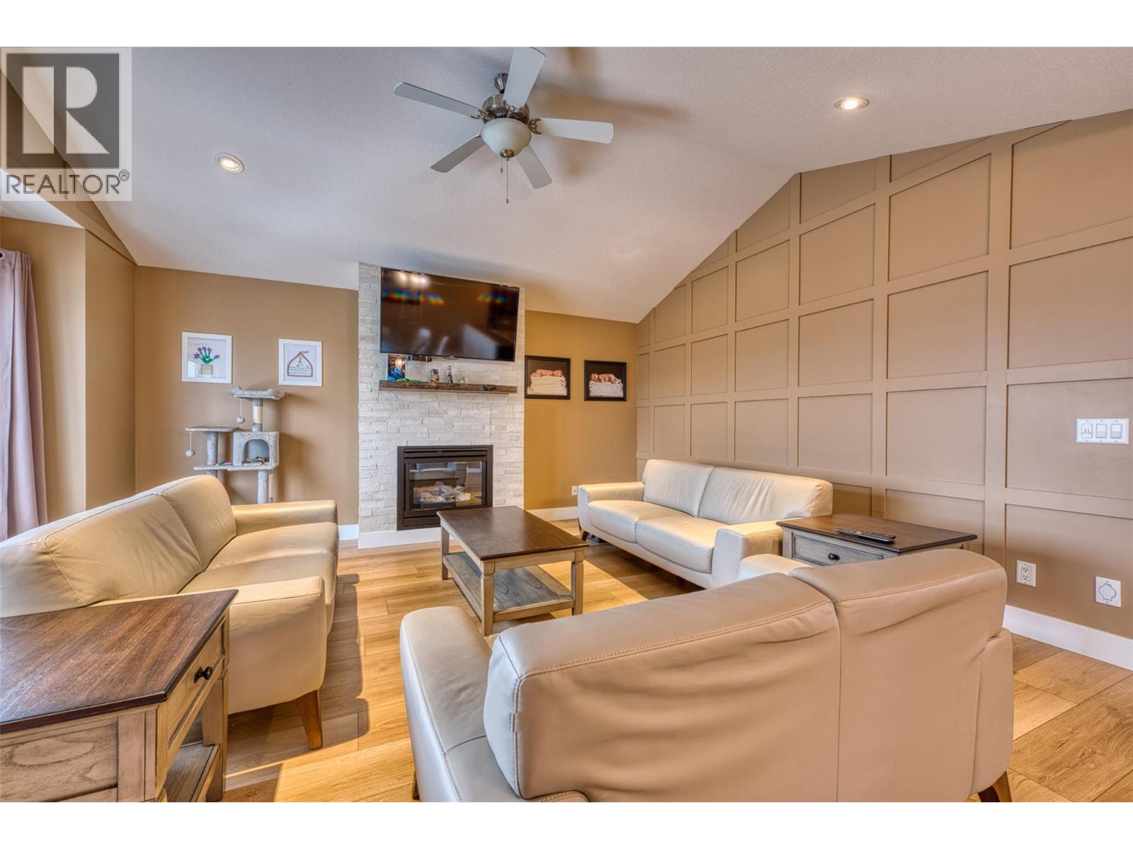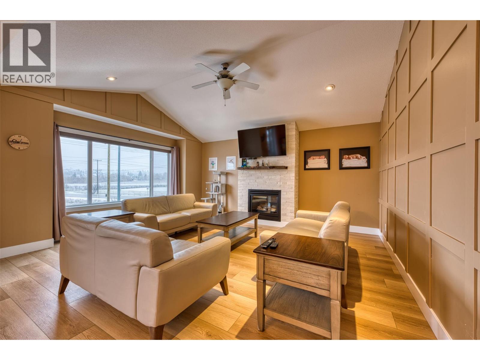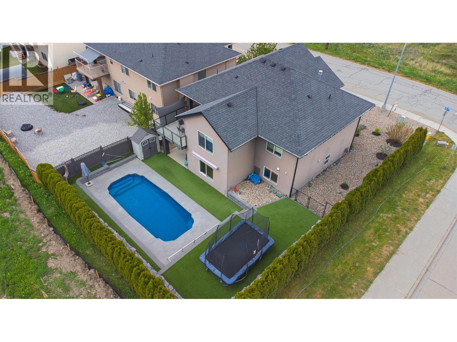 Discover the ultimate family home in the picturesque Okanagan! This exceptional home features a seamless open-concept design on the main floor with brand new vinyl flooring throughout, complete with vaulted ceilings and expansive windows that frame stunning mountain views. The kitchen is equipped with ample storage and sleek stainless steel appliances. Enjoy dining al fresco on the deck adjacent to the kitchen, or unwind on the front deck. The main level also includes a generously-sized primary bedroom with a walk-in closet and ensuite bathroom, plus two additional spacious bedrooms and another full bathroom. The lower level offers versatile options with a fourth bedroom (or office) for visitors, a half bath that can be easily converted back to full bath with a shower or tub, and a separate entrance, ideal for converting into a suite or utilizing as a large rec room or entertainment space. Step outside to a low-maintenance yard featuring an in-ground pool and synthetic lawn, perfect for children and pets with its secure fencing. Embrace the Okanagan lifestyle with this ready-to-enjoy home! (id:6770)
