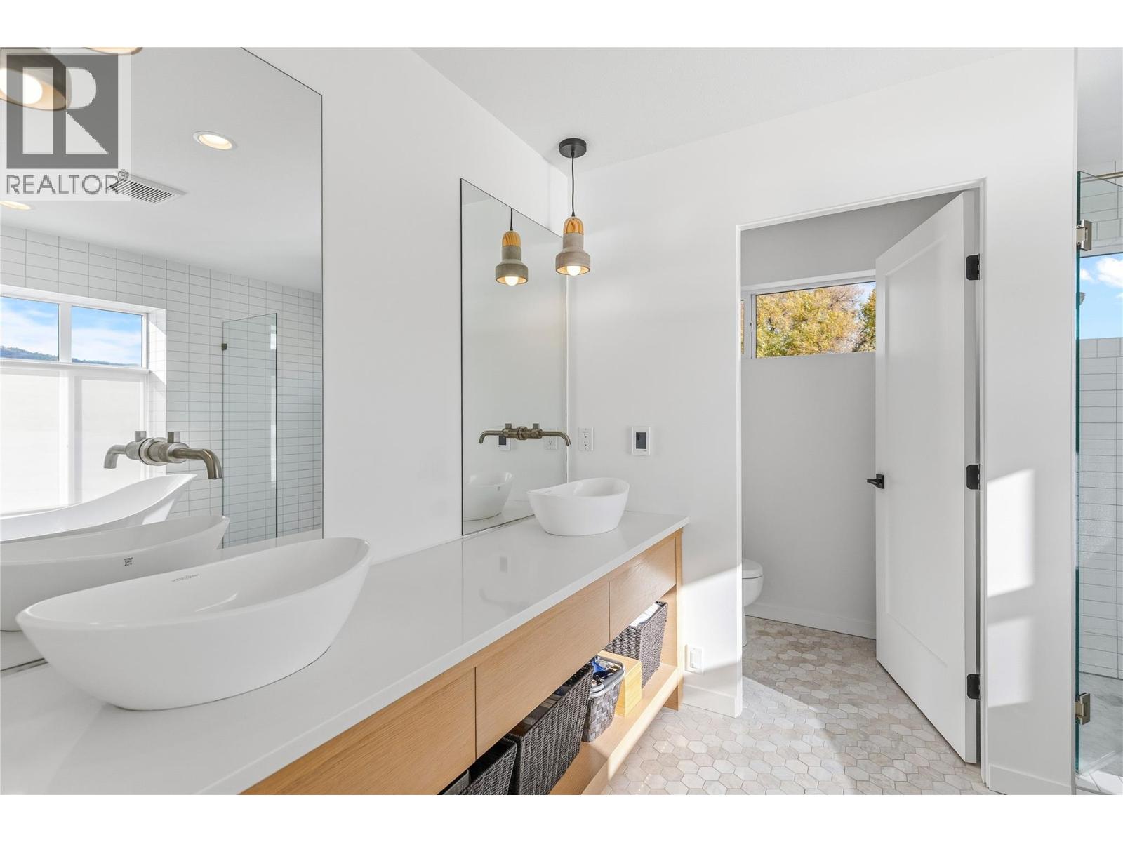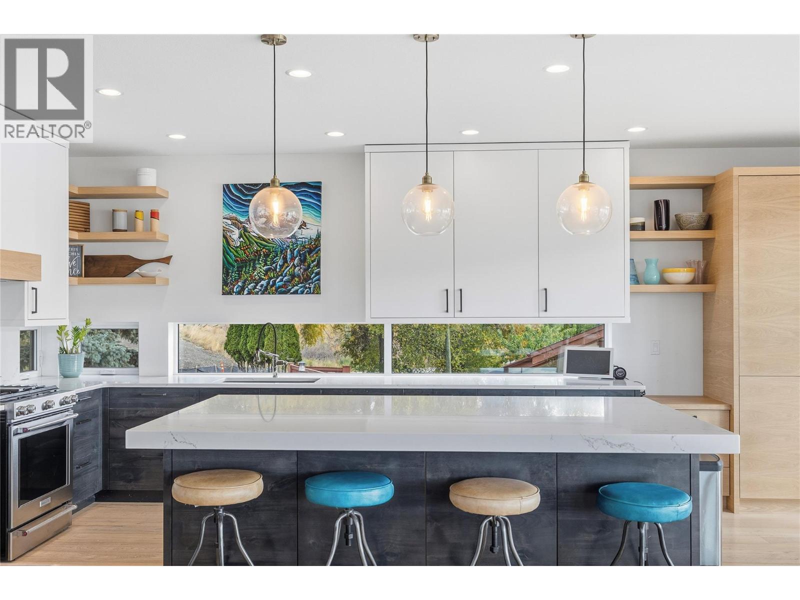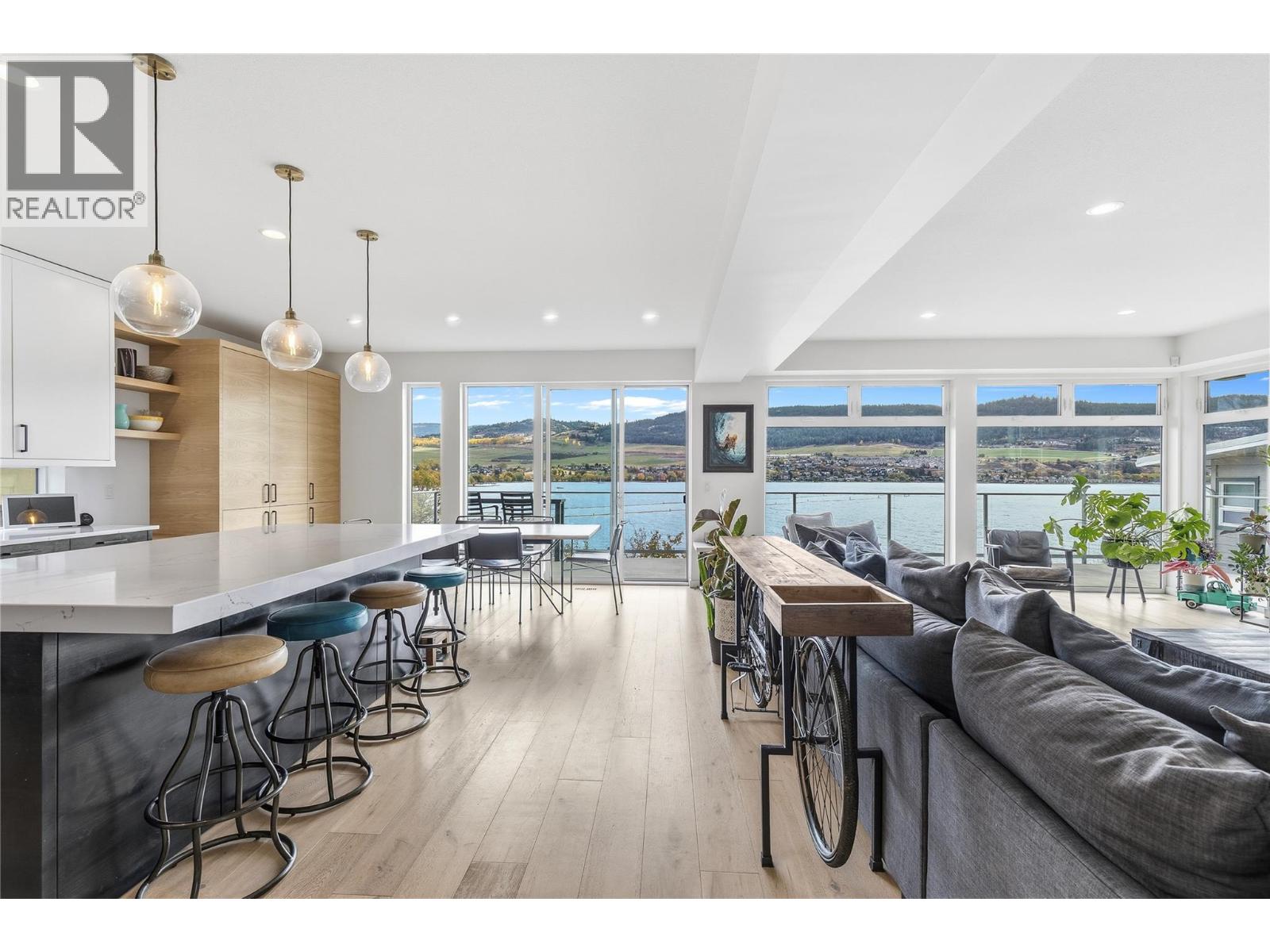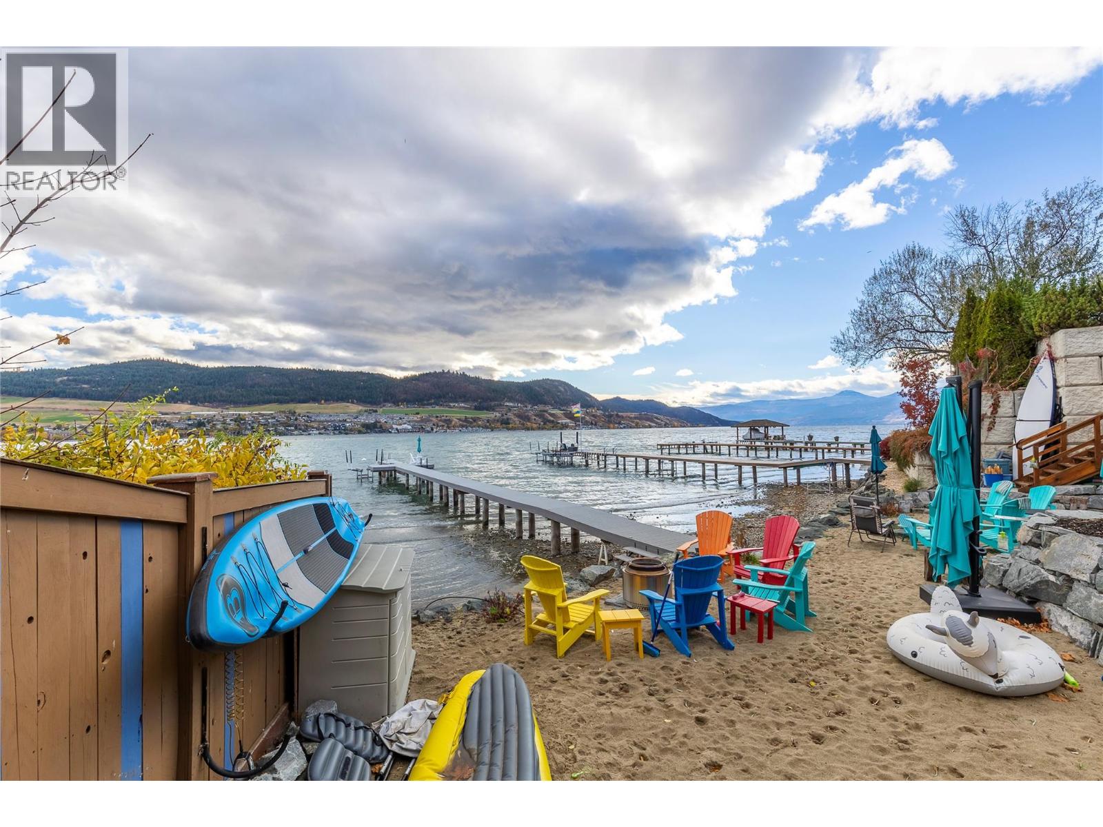 Stunning contemporary home on Okanagan Lake! Architecturally designed by MQN and built by Richbuilt Homes, this 4 bedroom, 3.5 bath home has quality finishings from top to bottom. An elevator provides easy access to all 4 levels, including a spacious rooftop patio with an outdoor kitchen, hot tub and gorgeous views of the lake. Inside, the home is bright and open, with tall windows for an abundance of natural light and enjoyment of the views. The property features private boat lift, shared water frontage and dock with the adjacent property. Double garage. Extensive retaining systems and landscaping. (id:6770)