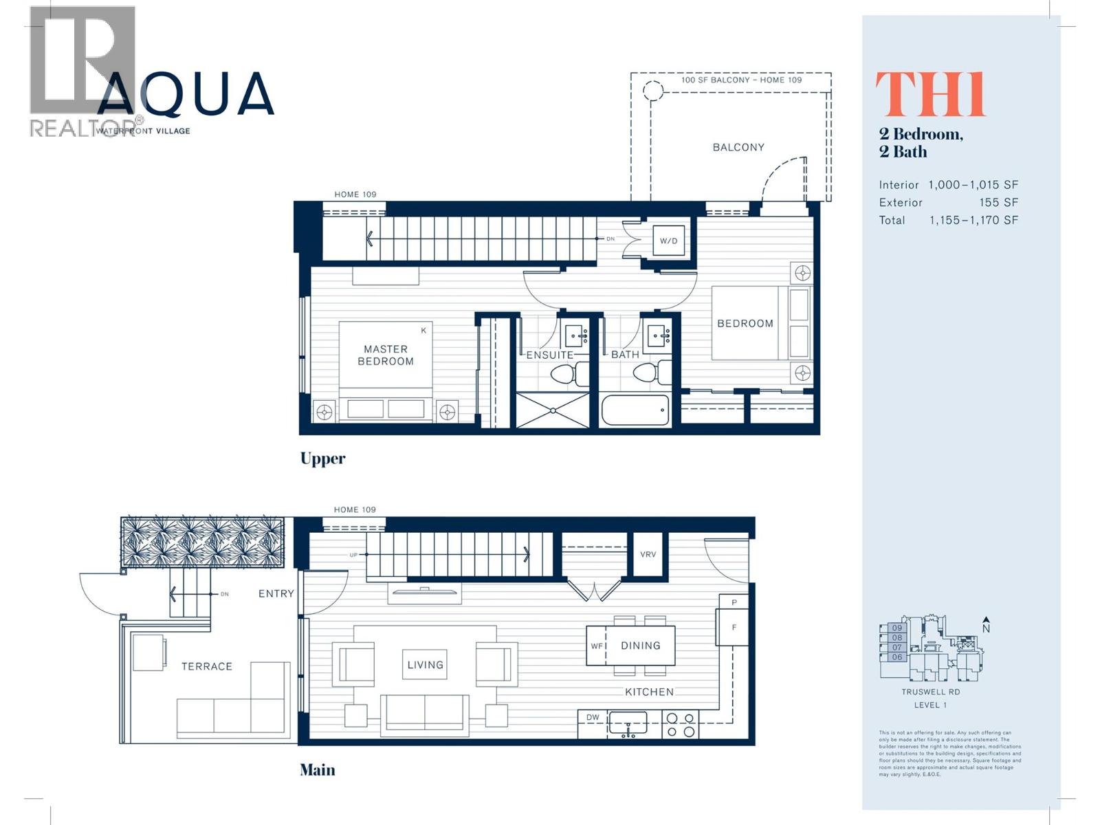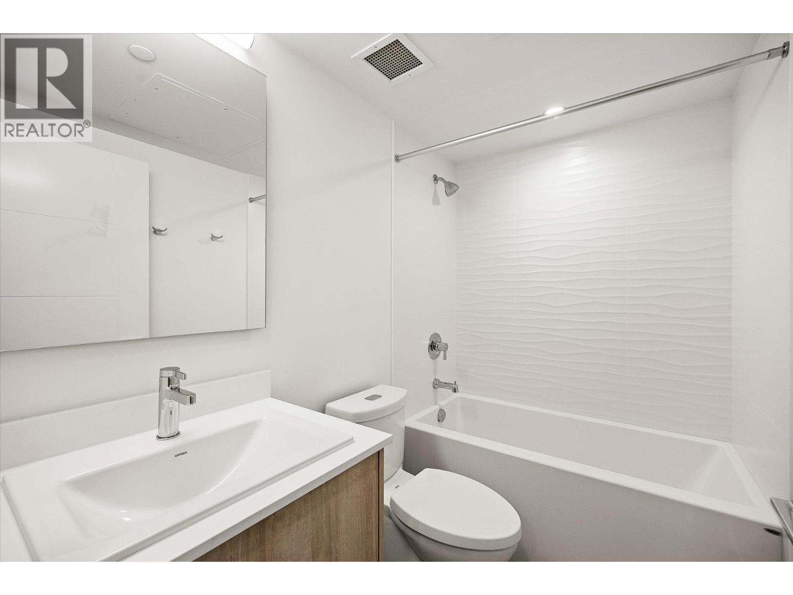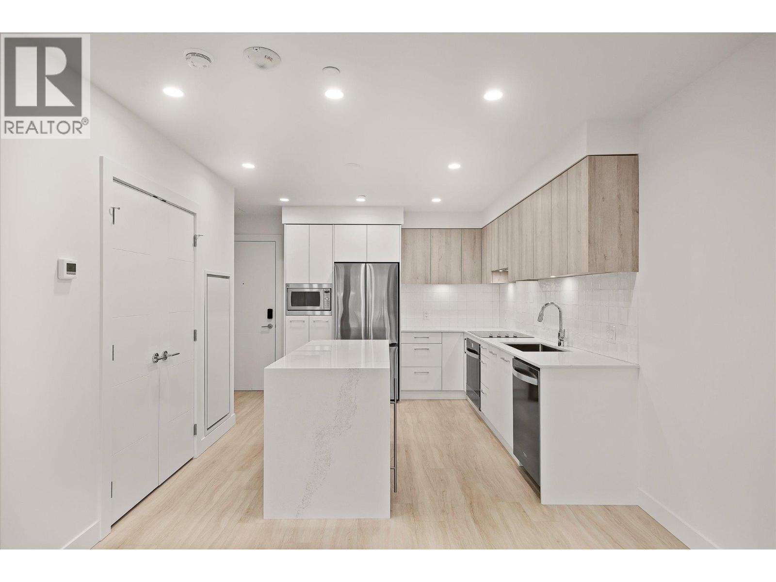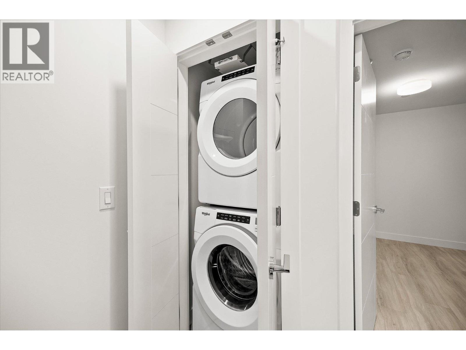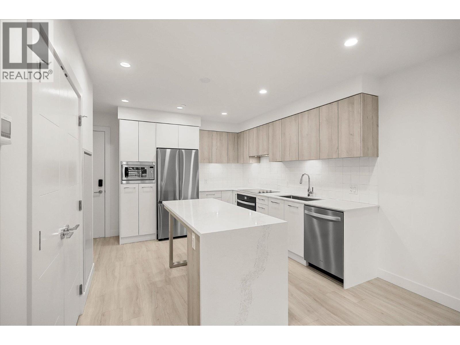 Welcome to Aqua Waterfront Village, Kelowna’s premier lakefront community in Lower Mission. This 2-storey, 2 bed, 2 bath townhome offers approx. 1,015 sqft of interior living, 155 sqft of exterior space, and includes a private, tandem 2-car garage in the building's parkade. The main floor features a bright, open-concept layout with oversized windows providing ample natural light. Luxury wide-plank vinyl flooring extends throughout the kitchen, living, dining, and bedroom areas. The kitchen showcases modern two-toned cabinetry, polished quartz countertops, dining island, integrated LED lighting, and a premium stainless steel appliance package that includes a wine fridge. Upstairs, you’ll find 2 generous bedrooms and 2 contemporary bathrooms featuring quartz vanities, porcelain tile and stylish finishes. Additional touches include blackout roller shades in the primary bedroom, custom closet organizers in both bedrooms and an energy-efficient central heating/cooling system. 1 storage locker, 1 bike locker included. Amenities include: an outdoor pool and hot tub, gas fire pits and BBQ’s, a fireside lounge and co-working area, 2-level fitness centre, pet wash and bike wash and maintenance area. Vacant and ready for quick possession. Only a 5% deposit required. Buyer to verify all details and measurements if deemed important. All offers must be written on the Developer’s CPS. (id:6770)