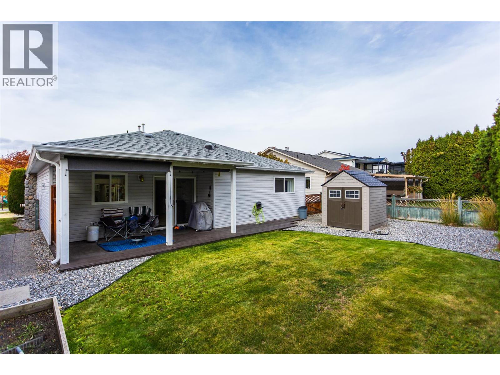 Welcome to the desirable Country Rhodes family community!!!! This spacious rancher features a bright kitchen with nook, open flow dining and living room areas great for entertaining, large windows which bring in lots of natural light. Two larger bedrooms, laundry room and two bathrooms... all on one main floor living!! Sliding glass doors welcome you to your private patio area with fully fenced landscaped back yard. Room for garden area and storage shed. Central air, gas fireplace, covered front porch overlooking the large park area, 4ft full basement crawl space, gutters, roof, appliances, garage door, washer/dryer, water softener...you name it!!.. and double garage. Amenities include inground outdoor pool, large park, playground, clubhouse with kitchen great for those large gatherings. RV/boat parking based on availability. Just minutes to Kelowna International Airport, UBCO, golf courses, Kangaroo farm, shopping, schools and so much more! No age restrictions. 2 pets (dogs or cats) per household - no size restrictions. A must see!! (id:6770)