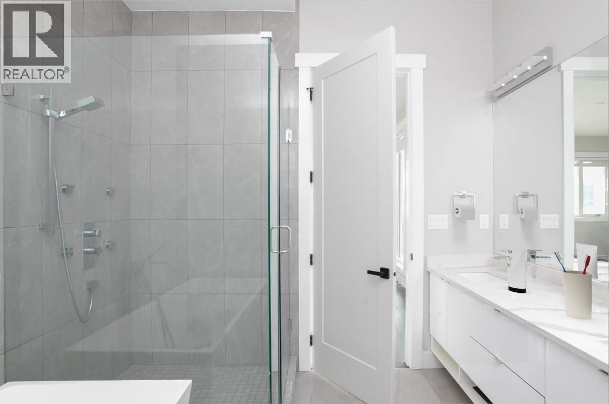 Modern 6-bed, 6-bath home suited home in Black Mountain's private Mine Hill Lane! The main floor of this remarkable home features an airy open-concept layout, grand vaulted ceilings, large picture windows featuring stunning views sweeping East of Kirschner mountain to Okanagan Lake, cozy fireplace, elegant kitchen , large island with bar seating, beautiful quartz counters, tons of cabinets, spacious master suite abundance of south exposure windows with doors leading to the and wrap around patio, spa-like ensuite with glass shower, free-standing soaker tub, well-appointed main bathroom, office and extra bedrooms. 3-car garage & access to the large covered patio with glass railing to showcase those remarkable South and West facing views. The self-contained, legal lower-level suite is every bit as stunning as the main floors featuring 1-bedroom, 1-bathroom, laundry, access to yard & covered patio. There is also an additional 2-bedroom nanny suite downstairs for multi-generational living! (id:6770)