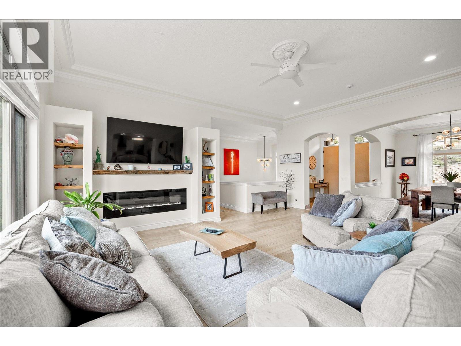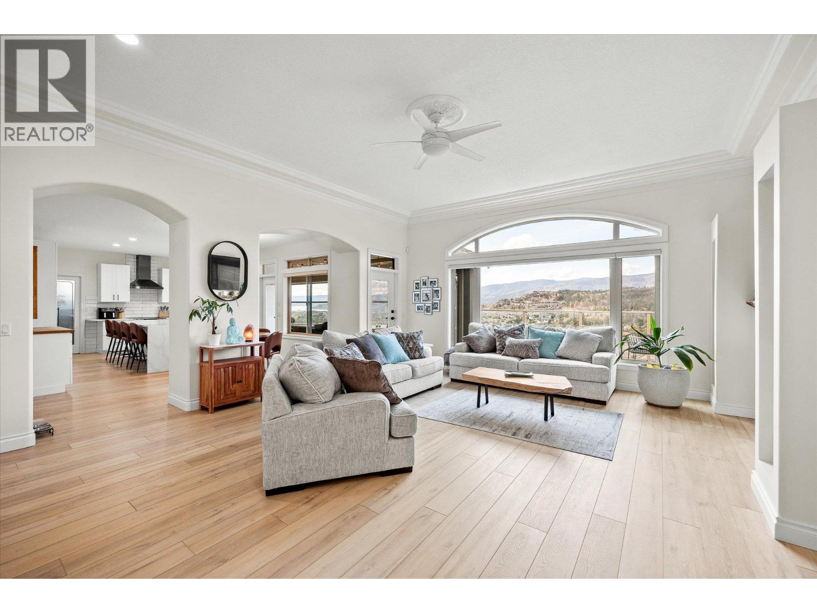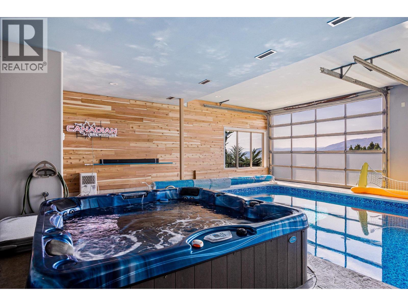Elevate your lifestyle with this executive walkout rancher showcasing some of the best views in Kelowna. Perched in the sought-after Dilworth Mountain community of Denali Court, this residence offers over 5,200 sq. ft. of thoughtfully designed living space blending elegance with comfort. Inside, 12-foot ceilings, gleaming floors, and expansive windows frame the city skyline and shimmering lake. The gourmet kitchen features custom cabinetry, quartz countertops, perfect for entertaining and seamlessly connected to both indoor and outdoor living areas. A highlight is the unique indoor/outdoor pool. Low-maintenance and usable year-round, it provides endless enjoyment. Oversized bay doors open for sunny, open-air lounging. A steam shower completes this private wellness oasis—ideal for relaxation or fitness. The garage design is rare: an oversized two-car garage on the main level plus a single garage below, attached to a private office with separate entrance. Perfect for remote work, a studio, or quiet retreat. Situated on a 0.26-acre corner lot, the home offers more space and privacy than most nearby. Parking for up to nine vehicles, including RV space, adds convenience. Downtown Kelowna is only five minutes away for shopping, dining, and entertainment. Whether enjoying the panoramic views, retreating to the luxurious pool and steam room, this residence delivers the ultimate combination of luxury, nature, and convenience in one of the city’s most coveted locations. (id:6770)