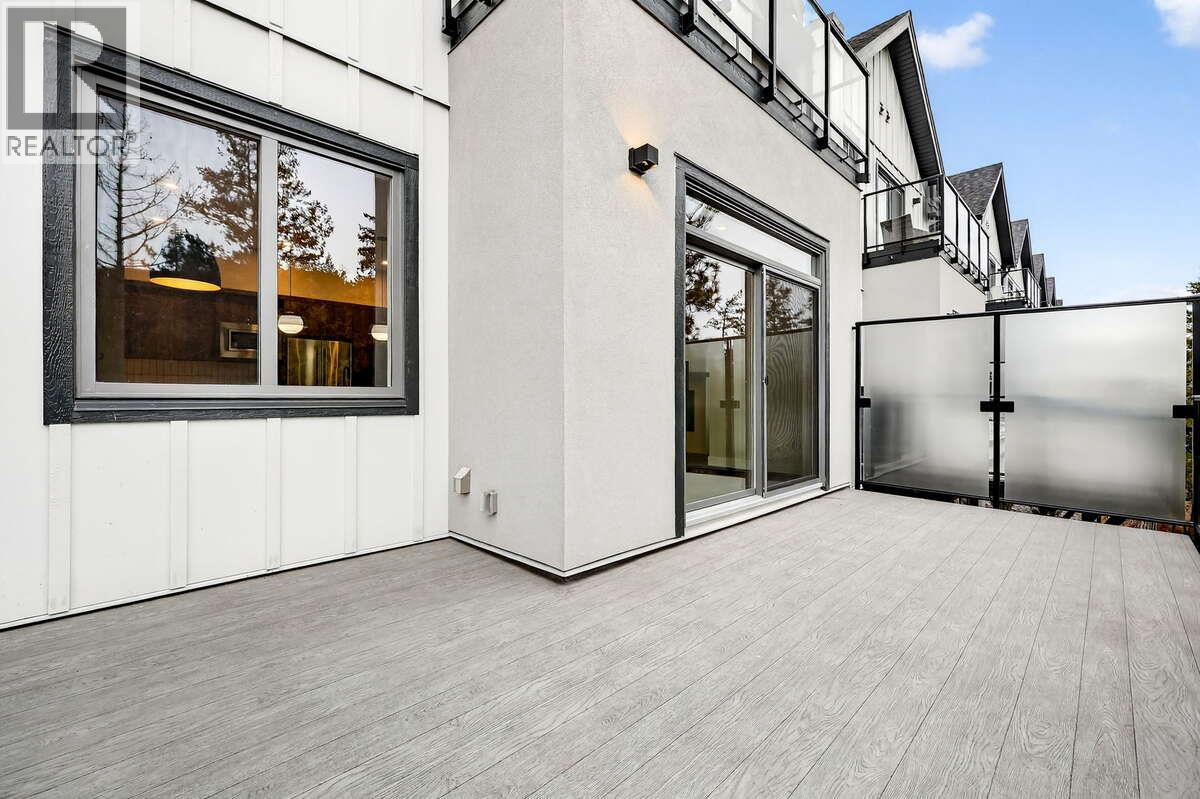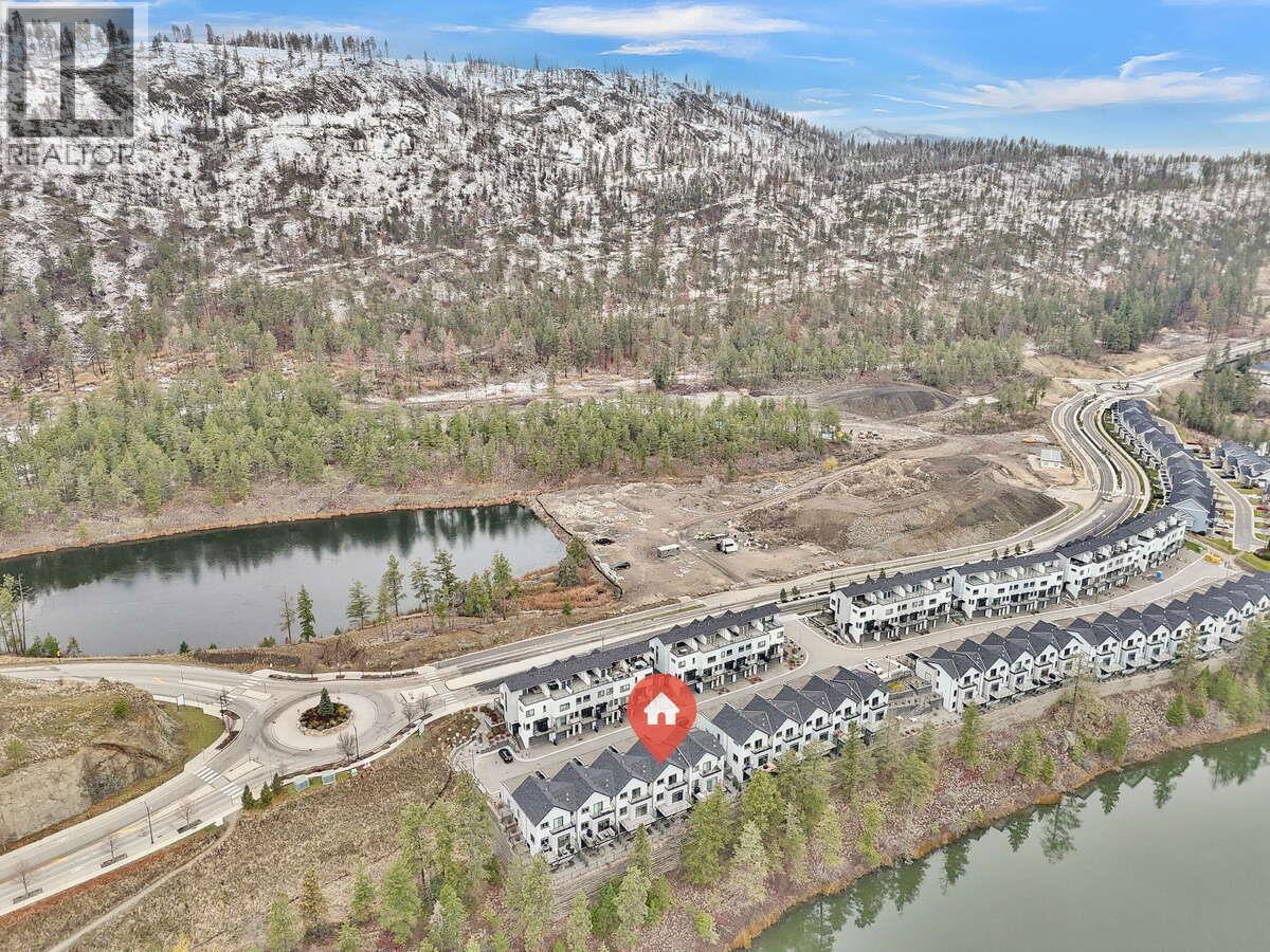 For more information, please click Brochure button. NO Strata Fees for One Year! Priced below assessed value! Discover Unit 40 – The Elderberry Plan at Pondside Landing. Step into 2,626 sq. ft. of bright, contemporary living in this stunning interior townhouse, featuring the elegant Warm Nordic colour scheme. One of the final homes eligible for the GST incentive, this residence showcases direct pond views and abundant natural light throughout. The thoughtfully designed split-level layout offers 3 bedrooms, 3 bathrooms, and a study, blending functionality with comfort. Enjoy three inviting outdoor living spaces: a spacious main-level deck, a private balcony off the primary suite with a 5-piece ensuite and walk-in closet, and a covered patio extending from the walkout basement. The main floor features an open-concept living area with a cozy gas fireplace, while the lower level provides two bright bedrooms and a family room that opens to the patio. A side-by-side double garage connects conveniently to a well-appointed laundry room. Ceiling heights range from 9' in the basement, 10' on the main floor, and 8' in the upper bedroom, soaring to 11' in the study, creating an airy, light-filled atmosphere. Ideally located just 10 minutes from downtown Kelowna and the airport, Pondside Landing offers a peaceful yet connected lifestyle surrounded by scenic trails, ponds, and the upcoming community Market Square. All measurements are approximate. (id:6770)