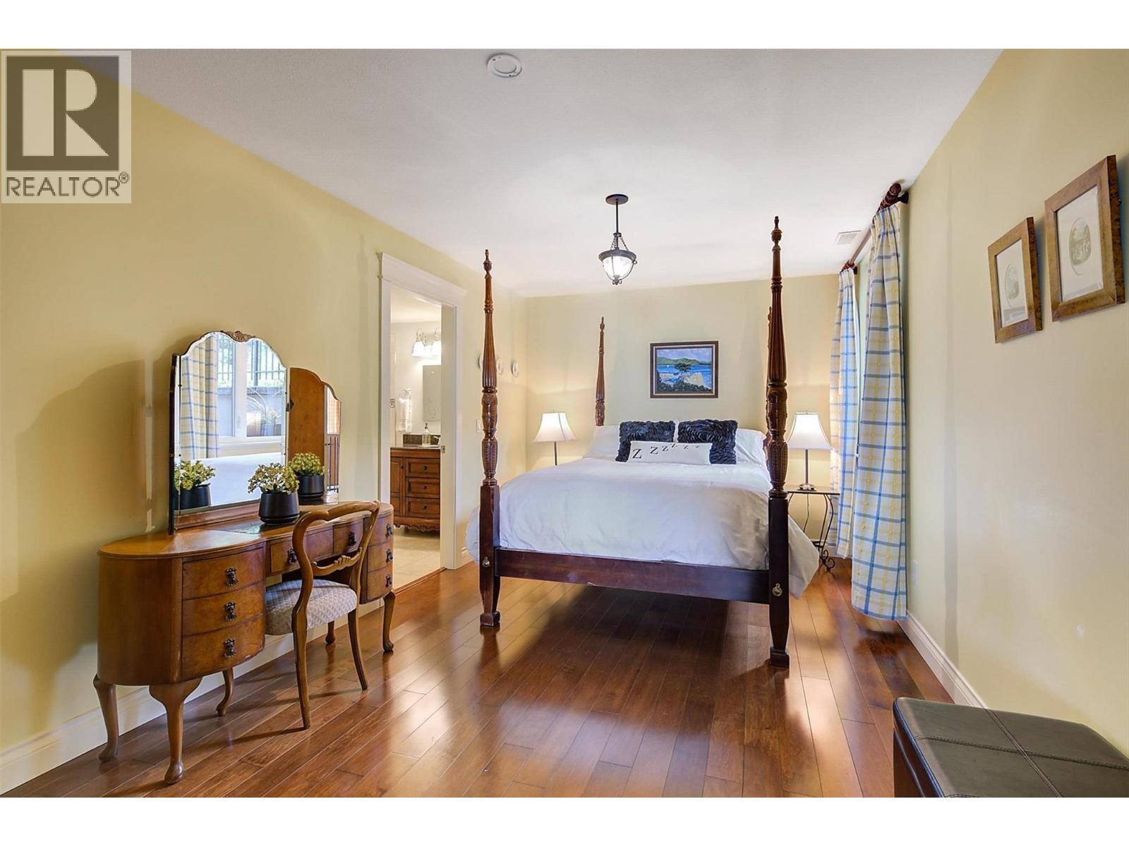 Buy Now to customize and make it yours before Next Summer! This Lakeshore Property has one of the best views on Okanagan Lake! There are just a few pockets that showcase the stunning night lights of Downtown Kelowna. If you are looking for a unique lakeshore opportunity this is it. Sitting just a few minutes North of the Kelowna bridge, you will appreciate the convenience of the location, as well as the privacy that this neighbourhood offers. This custom home, built to represent French Country Style, provides you with a piece of Okanagan Paradise. Expansive, oversized windows on all levels insure you can take in the views from the majority of the home. While you are guaranteed to enjoy the upper level primary sleeping and living quarters, with 6 beds and 5 baths over 3800sqft, the home was crafted for the ultimate guest experience with multiple rooms featuring large ensuite bathrooms and a private lower level suite that walks out to a hot tub and putting green. The open concept kitchen flows comfortably into the main living room with 10ft ceilings and stunning fireplace. You will be impressed by the kitchen's large pantry, dual ovens, gas range and custom maple cabinetry. The exterior stairwell will take you down to a flat grassy area beside 70 feet of waterfront with beach house and large dock. If you need parking, this home has it all, with a double garage, 4 car carport, and RV parking, as well as a large workshop and storage area. (id:6770)