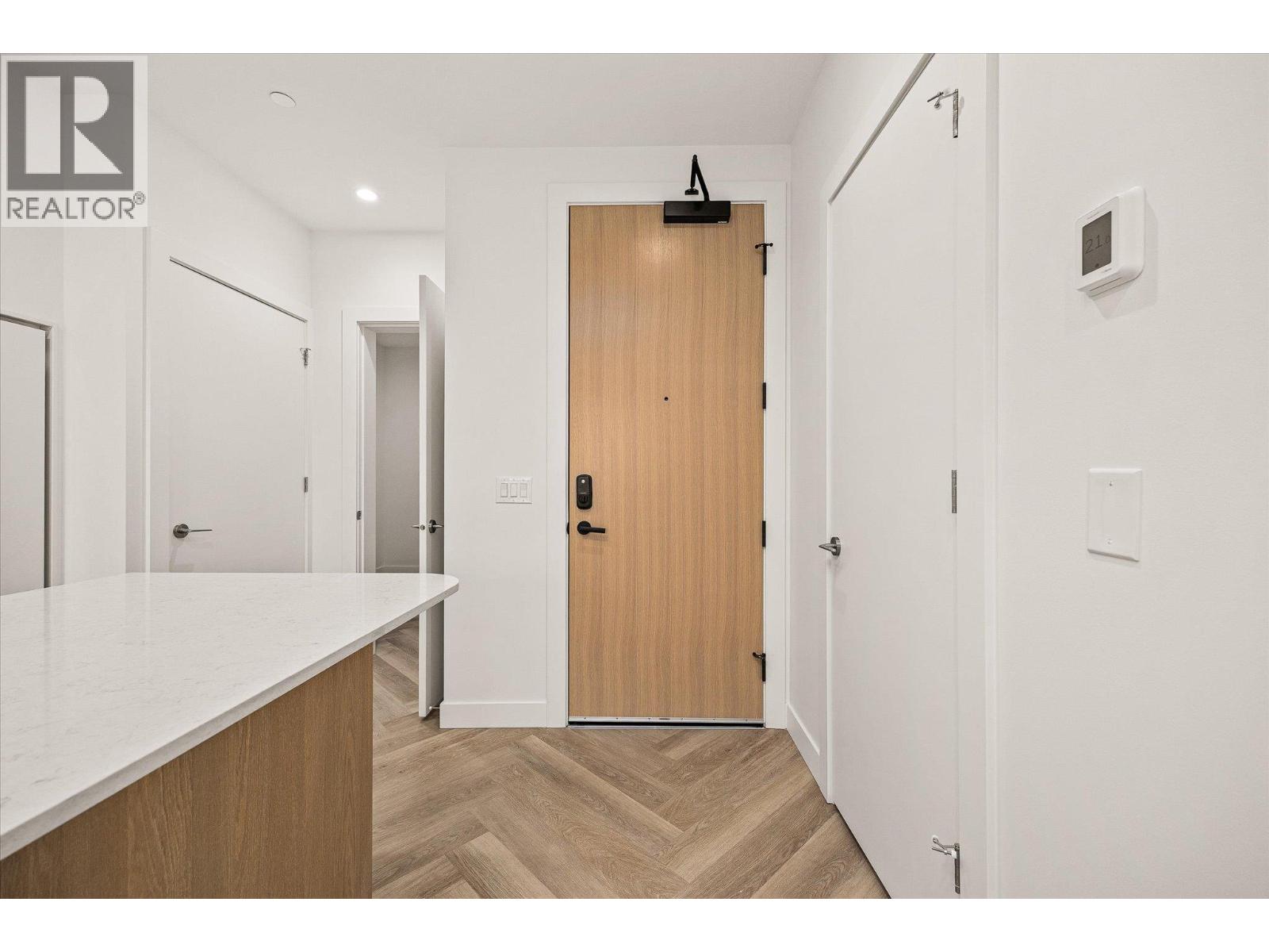 Modern Lakeside Amenity-Rich Living at Movala; Kelowna’s most anticipated new address, positioned between sandy beaches, vibrant eateries & boutique shopping! This gorgeous lakeview 1-bdrm+den condo combines modern design with functionality, creating an effortless urban retreat just steps to Pandosy Village. Beautifully crafted, featuring modern cabinetry, luxury vinyl plank flooring, quartz surfaces & 9ft ceilings. The chef-inspired kitchen offers premium SS appl. complemented by a fully integrated refrigerator. The spacious island offers plenty of prep space & casual seating for 4 - perfect for entertaining! The bright living area flows seamlessly to the covered south-facing patio w/natural gas hookup, where you can take in views of Okanagan Lake, Gyro Beach Park & soak up the Kelowna sunshine! The primary bdrm features a walk-in closet w/custom built-ins & large south-facing window, while the sleek 4pc bath boasts an oversized walk-in shower, dual sinks & modern tile finishes. A versatile den completes this cozy home & offers flexibility for guests or home office. Movala offers resort-inspired amenities - A lakeview pool & hot tub and cabanas surrounded by lush landscaped grounds with fire tables, bocce lawns & alfresco BBQ areas. Inside, enjoy a gym & yoga studio, co-working spaces, entertainment lounge, great room with casual seating, a library, private dining room + a guest suite & pet wash! Truly an unmatched lifestyle in an unmatched location! & GST has been paid! (id:6770)