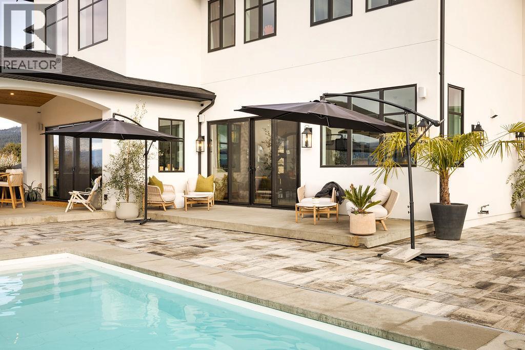 Stunning new architecturally designed executive home on 12 acres of prime, fertile BX land, with unbelievable views overlooking Swan Lake. This property would lend its self so amazingly well as an estate winery with tasting room, agri tourism business, incredible wedding venue or just as an outstanding private estate property. The detail and complexity will captivate you the moment you step out of your vehicle and in through the custom designed arched glass door and foyer and into the great room with soaring 27 foot ceilings and glass wall soaking in the incredible views. Incredible kitchen with 10 foot ceilings, a massive white quartz island, 36 inch gas stove with custom hood fan and high end appliances. The main living space will blow your mind with gleaming heritage hickory hardwood flooring throughout, 5 bedrooms, 4 bathrooms, 2 laundry areas, a butlers pantry, wine cellar, and architectural bridge overlooking the great room. The lower level offers an expansive rec-room/games room, the main level great room leads out to an incredibly inviting covered patio area with gas fire table overlooking the valley and a custom tiled unground pool with waterfall feature. Massive triple car garage with 10x10 insulated doors, and a stunning 2 bed carriage home suite above, and pool change room next to the hot tub. Fertile and lush south west facing land that is fully fenced with 10ft deer fencing, irrigation water and domestic water with extensive irrigation throughout. (id:6770)
