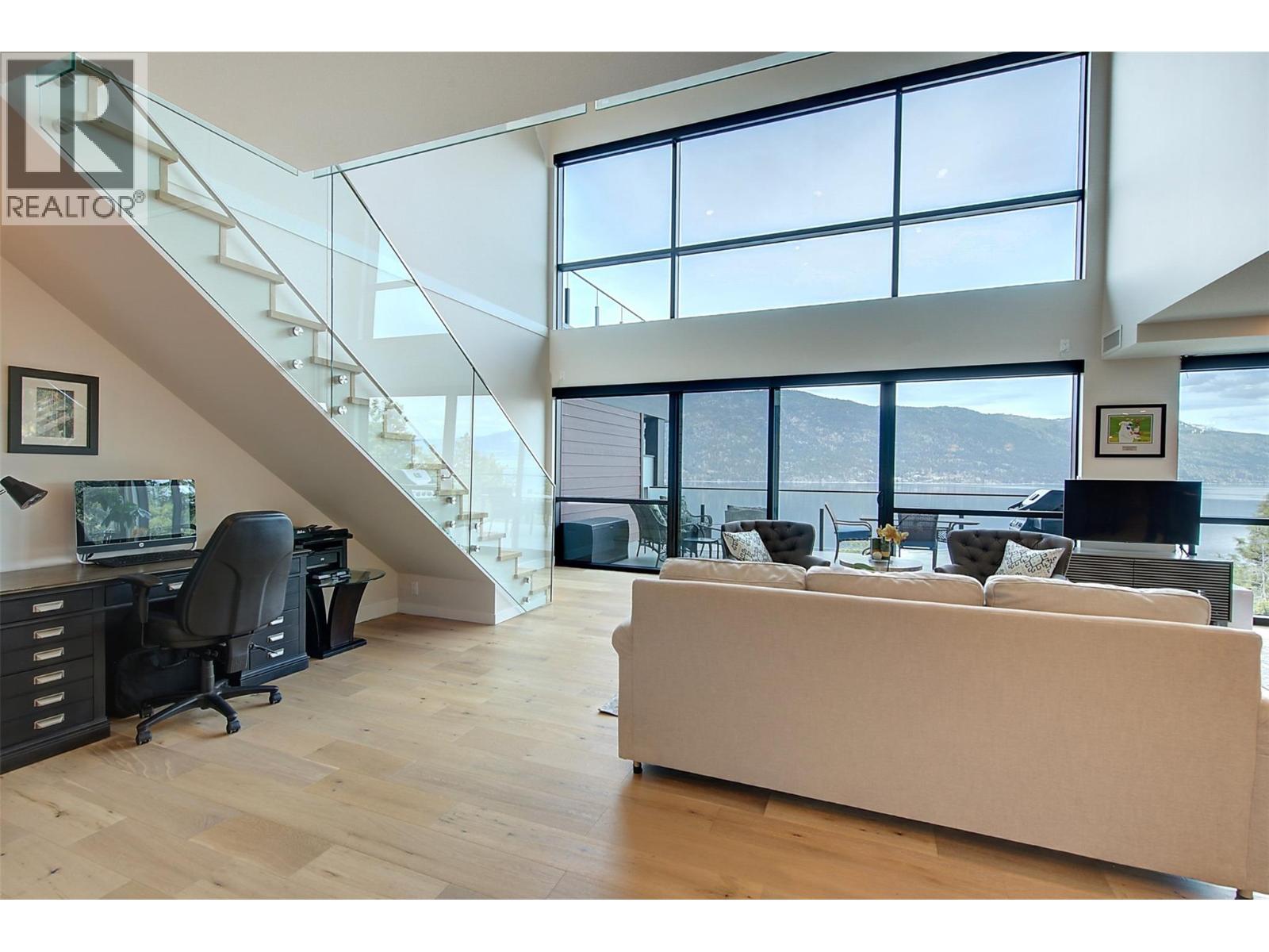 The One of a kind Granite Penthouse with 3 bedroom , 3 bathroom of over 2400 sq ft and over 1700 sq ft of deck space in McKinley Beach where this custom luxury home has absolute stunning Lake Okanagan views! Walk into this home with its engineered Opus-Whitestone Oak hardwood floors and take in the view of the 20' height double high windows over looking the lake from the dining and living area. The gourmet kitchen is a chef’s dream, complete with Fisher & Paykel appliances, ample cabinetry, and generous workspace. Upstairs you will find a sitting area to enjoy the lakeviews or watch TV.. Step outside to enjoy the expansive rooftop patio, designed for year-round entertaining with a TV, premium gas heaters, and a cozy fire pit. premium features include a Control 4 smart home system for TV, blinds, music, and locks, plus 200amp service with a 100-amp outdoor sub-panel. Th primary suite has wrap around floor to ceiling glass. McKinley Beach community boosts of a marina, beach area, New amenities building including an indoor pool, miles of hiking trails, tennis courts, pickleball courts and the winery currently being built. Only 15 minutes to the international airport or 15 minutes to Kelowna or 10 minutes to UBCO. With a kilometer of pristine lakefront, the Granite Yacht Club, , you’ll experience the very best of waterfront living. This home comes with two secured underground parking stalls near the elevator. This is a must see home!!! Book your showing.. (id:6770)