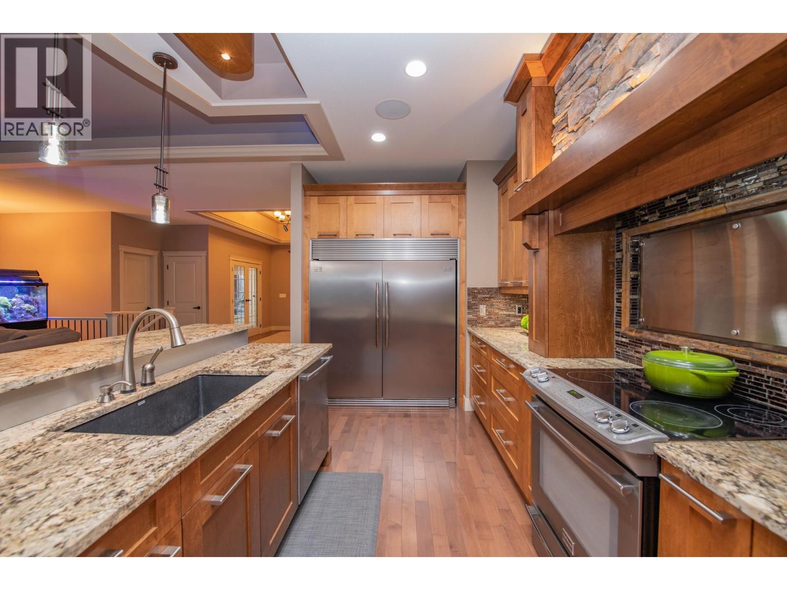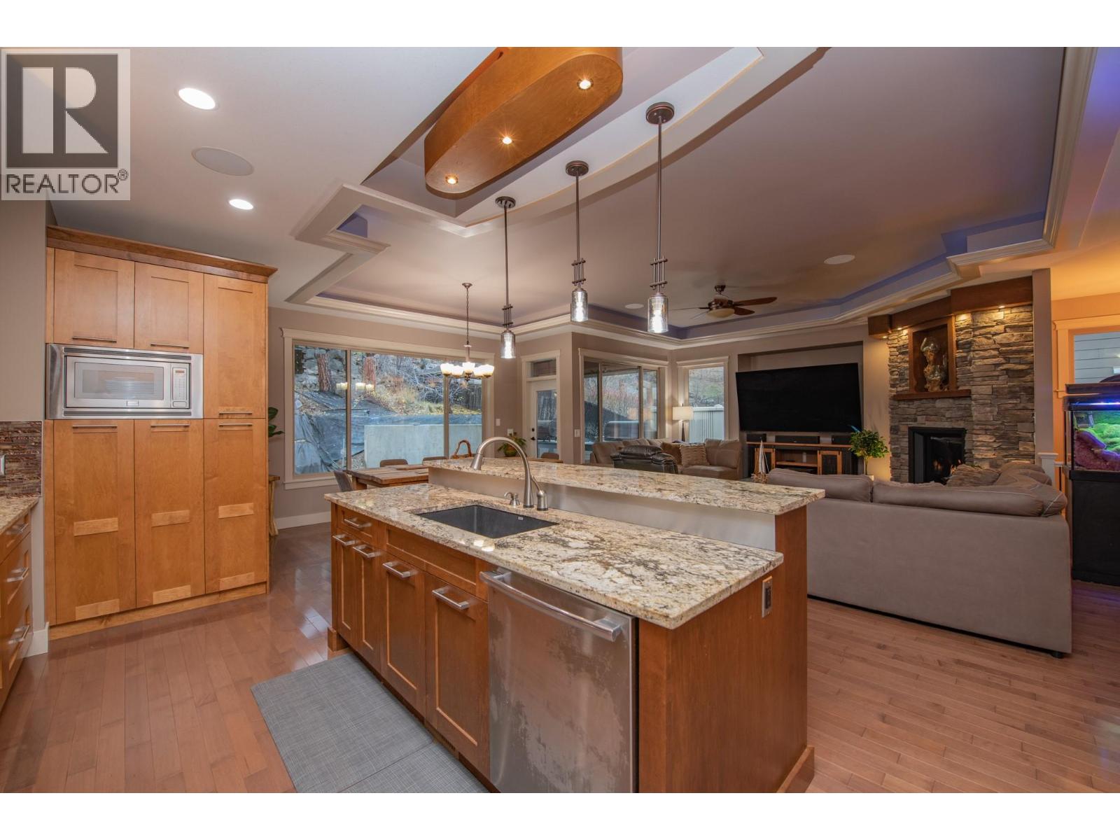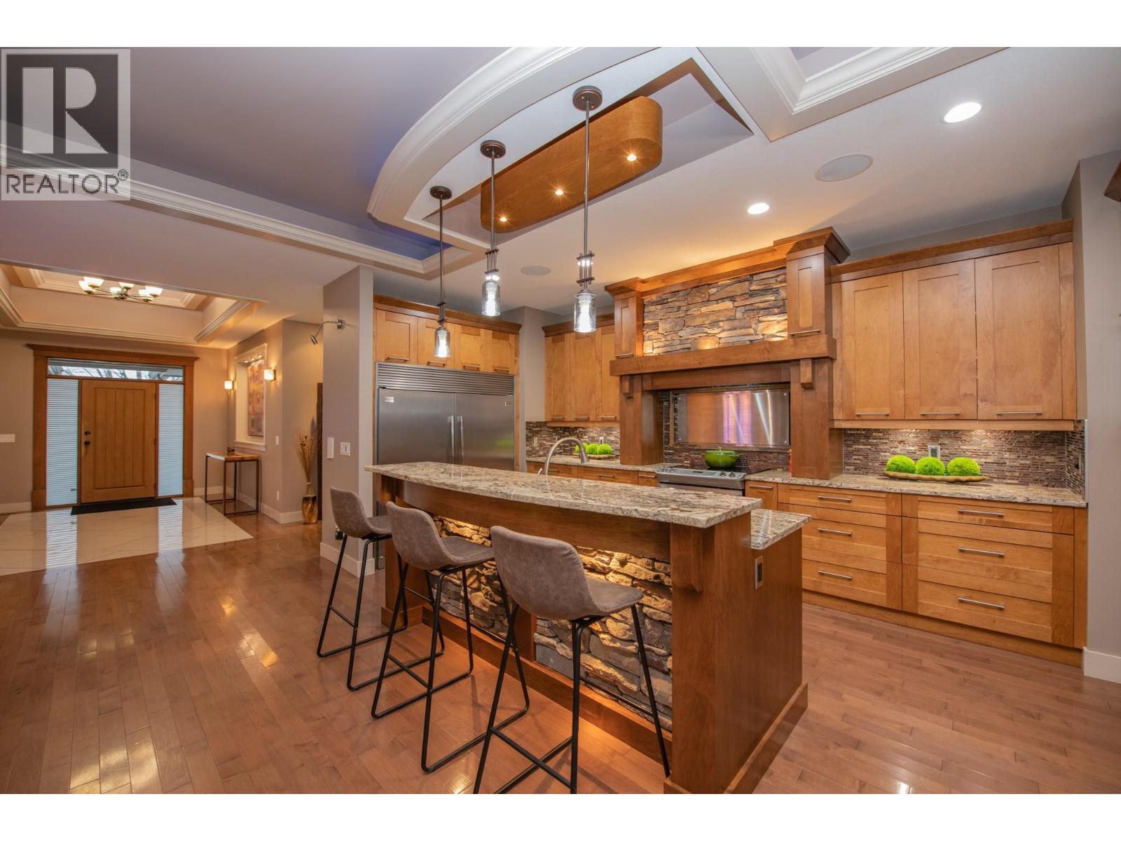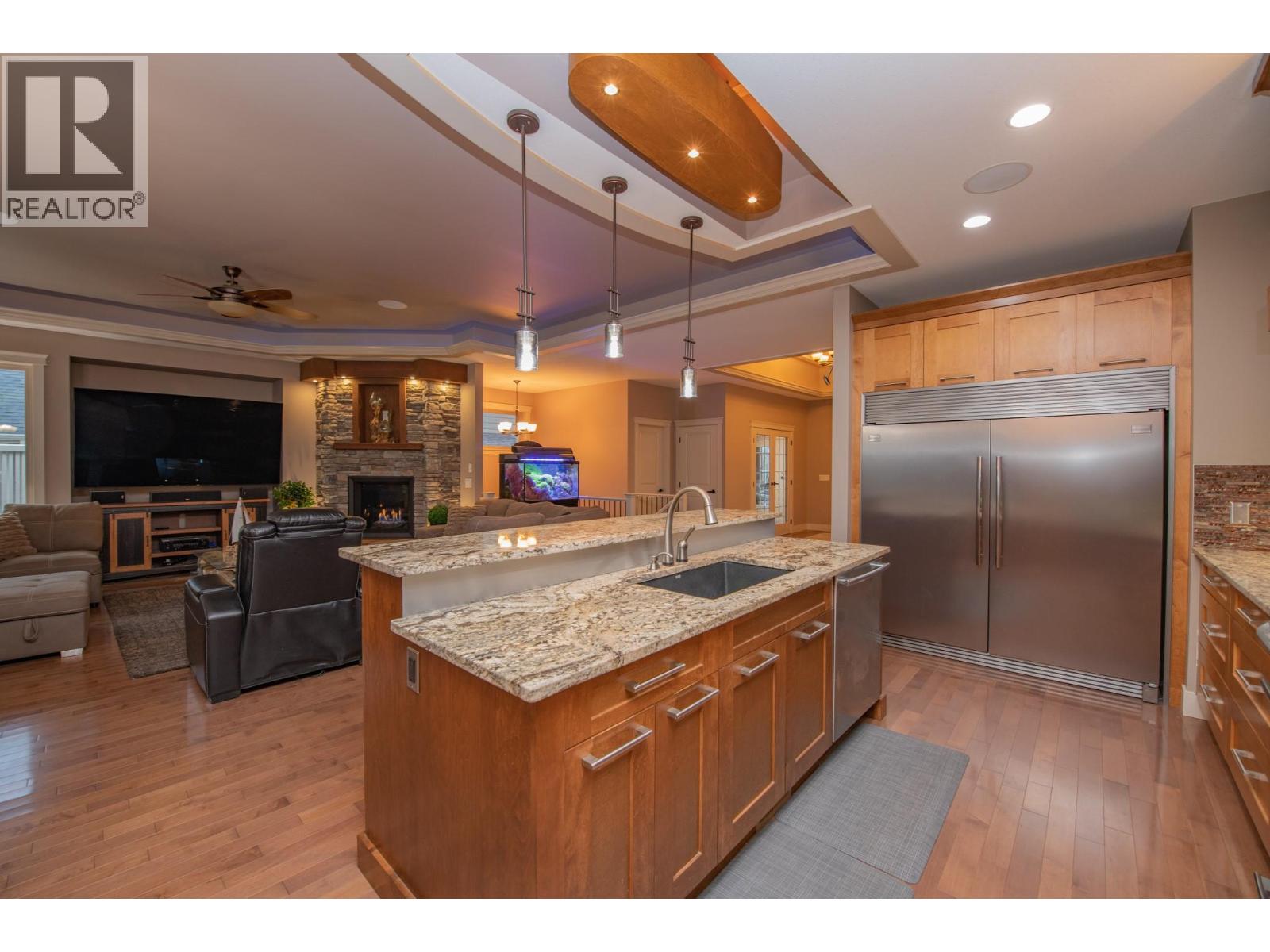 Beautiful Rancher on a quiet cul-de-sac in Kelowna's sought after Wilden Neighborhood. As you step through the front entry of this 4,357 sq ft home, you’re greeted by the elegance of large format open-concept layout. Natural light fills the main level, highlighting the ten-foot tray ceilings and warm hardwood floors. The heart of the home is the two-tone kitchen, an elegant blend of custom shaker-style cabinetry, granite countertops and spacious island. Gallery edition appliances with an oversized stainless steel fridge/freezer, glass cook top oven and dishwasher. From here, the flow leads seamlessly into the living area with a cozy gas fireplace. Enjoy an entertainers lifestyle with smart home tech with built in speakers and smart lighting. The dining fits a large table and walks onto the patio. Here you’ll find vaulted timber post-and-beam construction. A concrete outdoor kitchen with a gas cooktop, and private yard ready to be personalized. The serene primary suite offers a spa-inspired ensuite with travertine tile, soaker tub, and a multi-zone luxury shower. The comfort continues with a NuWave in-floor heat, walk-in closet and a connected laundry room. Additionally on the main floor you'll find a second bedroom/office/den and a full guest bath. Downstairs, a blank-canvas offers limitless potential for additional bedrooms, a future suite, or rec room. This home perfectly blends elegance and lifestyle close to amenities and rec. Ample storage and RV/ additional parking. (id:6770)