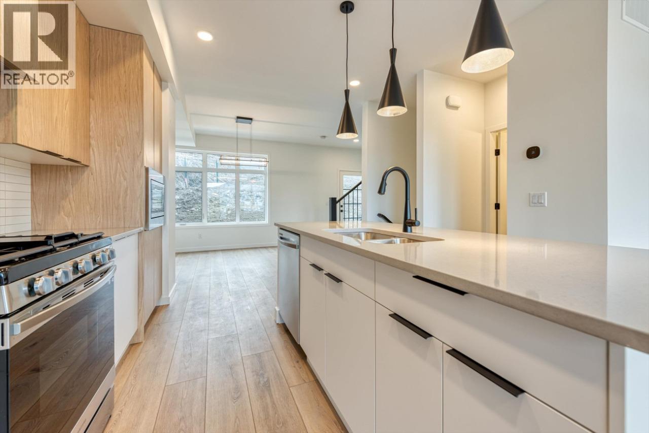 Welcome to Sailview by Carrington Communities! These beautiful townhomes are ideally located less than a 10-minute walk from Paddlewheel Park and Okanagan Lake, close proximity to schools, parks, shopping, restaurants, groceries, golf courses, the Vernon Yacht Club, and Silver Star Ski Resort—everything you need for a vibrant lifestyle! From the moment you step through the covered front entry or park in your double car attached garage, you'll feel the luxury of this thoughtfully designed home. The main floor welcomes you with an open-concept layout, featuring a sizeable kitchen with a 6pc appliance package, a spacious dining area, and a great room with large windows that open up to a generous balcony—perfect for enjoying the views and fresh air. The carefully planned second floor has 2 secondary bedrooms, laundry (machines included) and the primary with 4 pc ensuite and WIC. (id:6770)