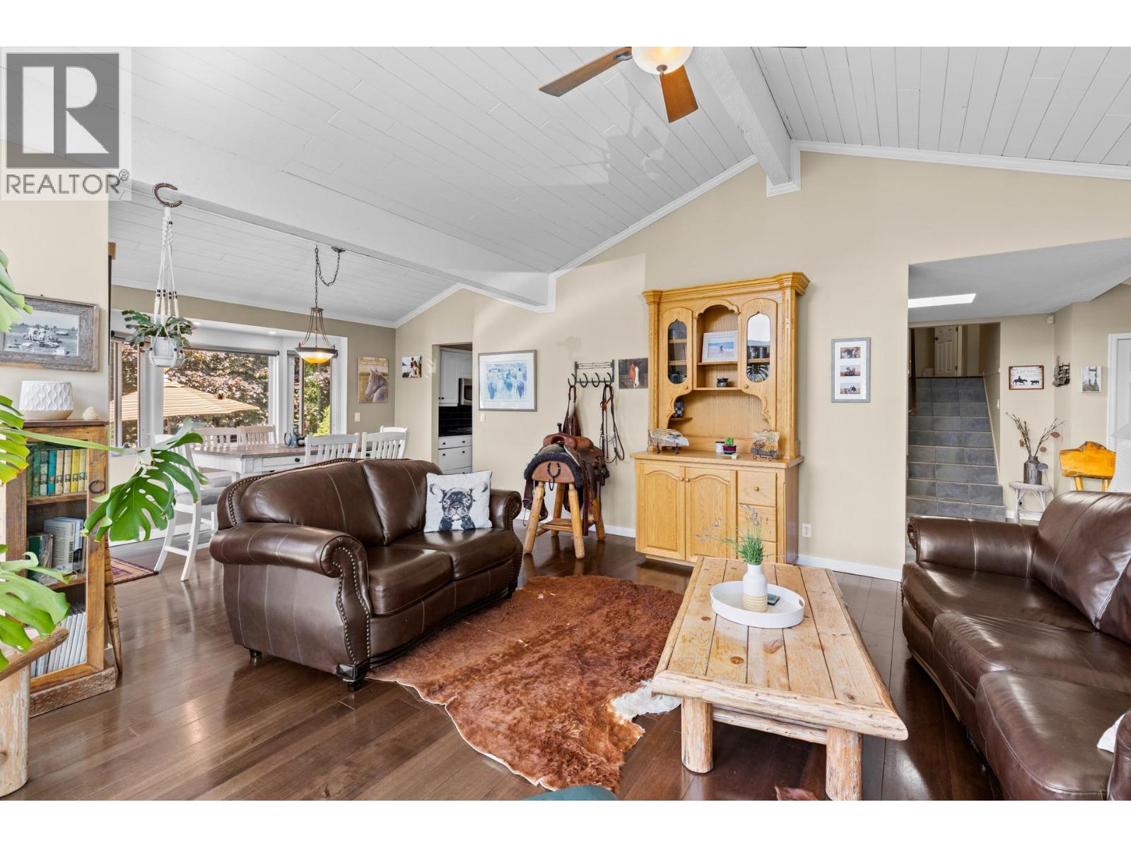 10.04 acre parcel in the Coldstream area of the Okanagan Valley. This residence boasts over 3,100 square feet of living space, featuring four bedrooms, three bathrooms, a double car garage, and renovations throughout. The living room offers vaulted ceilings to get excess natural light in from your valley views ahead, while your kitchen has stainless steel appliances. Off your deck, you can overlook your private garden/yard area, fenced in for convenience for any dogs. While you drive up the tree lined driveway, you pass by your extensive hay fields, irrigated with dedicated irrigation water; the land could be suitable for a variety of crops. The property is set up perfectly for equestrian uses, with a large barn (with hay loft), extensive cross fencing, and a flat, sanded riding arena (uncovered) at the top of the property. There are two dedicated paddocks with shelters. The insulated three bay workshop (with one pass-through stall) is perfect for a home based business, storage, extra covered parking, and more. This is a perfect hobby-farm or equestrian retreat, with significant dollars invested into the land, the home, and the two large outbuildings to help service any agricultural uses. The equipment/irrigation equipment may be negotiable. (id:6770)