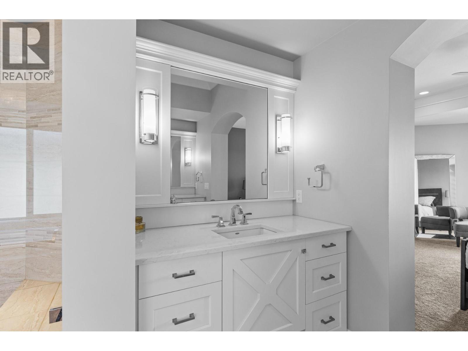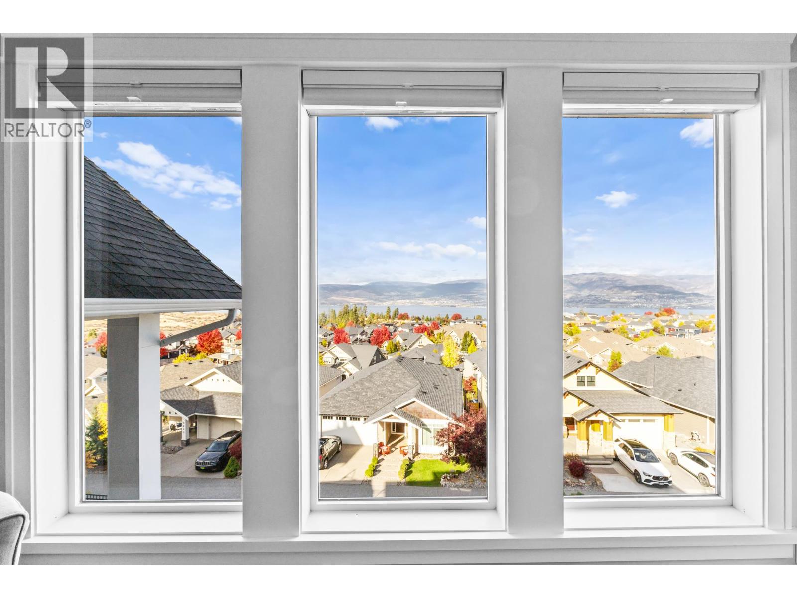 This massive, beautifully designed 6-bedroom, 5-bath, 5,350sq. ft. luxury residence is at the end of a flat, quiet family oriented cul-de-sac showcasing breathtaking lake views from all three levels and features an inground saltwater pool. This home perfectly blends craftsman charm with modern contemporary elegance. The inviting entry features a solid wood door and hand-scraped engineered hardwood floors, leading to a dramatic two-story great room with a balcony overlook and concrete feature fireplace. The open-concept kitchen is a chef’s dream with duotone cabinetry, granite countertops, raised eating bar, gas stove, built-in oven, and a walk-through butler’s pantry. Also on the main floor are a den/office, powder room, and a secondary master suite with 4-piece ensuite. Off the kitchen, step out to a spacious covered deck with topless glass railings, outdoor gas fireplace, electric privacy screens, and ample space to relax and enjoy the panoramic views. The upper level with two generous bedrooms sharing a Jack & Jill bath, a bonus room or extra bedroom, and a spectacular primary suite featuring a spa-inspired ensuite, custom walk-in closet, and direct access to laundry. The lower level features a wine cellar, wet bar, games room, theater, and a fifth bedroom with full bath. A huge oversized double garage offers ample space for vehicles and recreational gear. Located in prestigious Kettle Valley, at the end of a flat, family-friendly cul-de-sac perfect for kids. Amazing home! (id:6770)