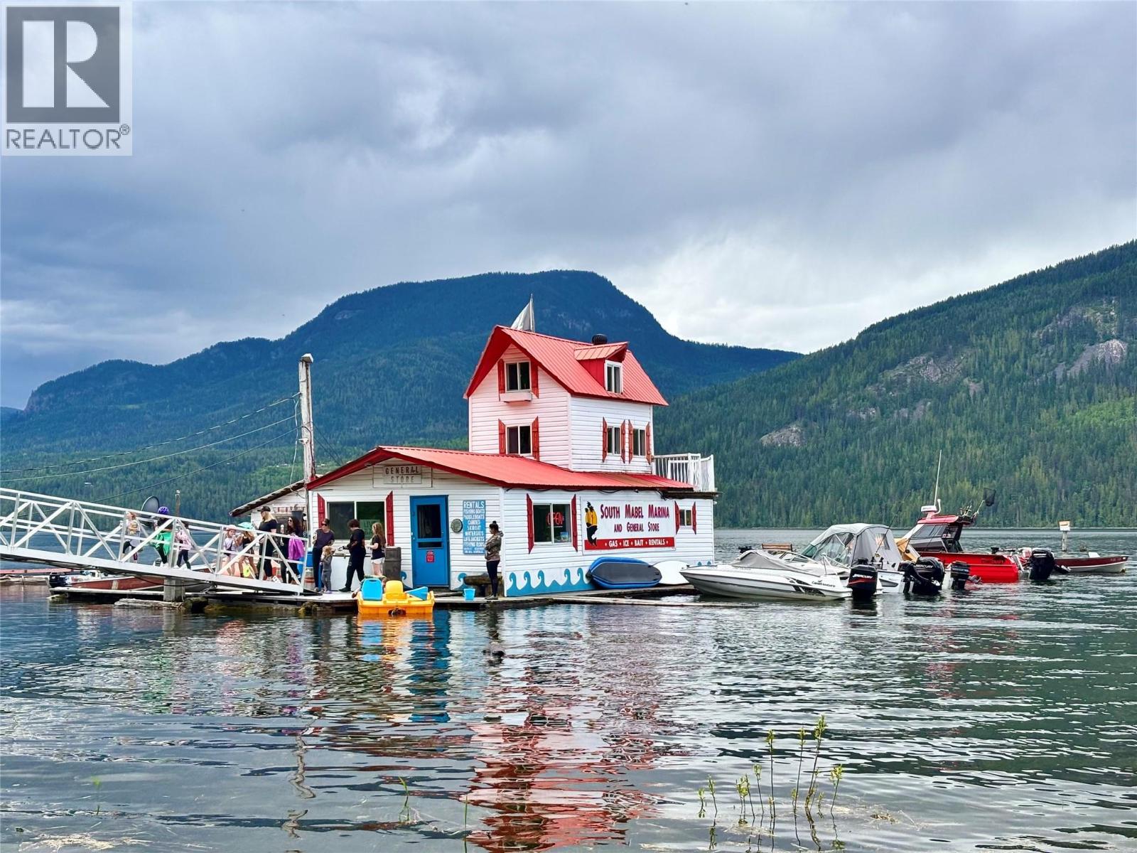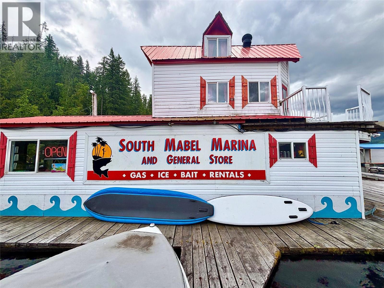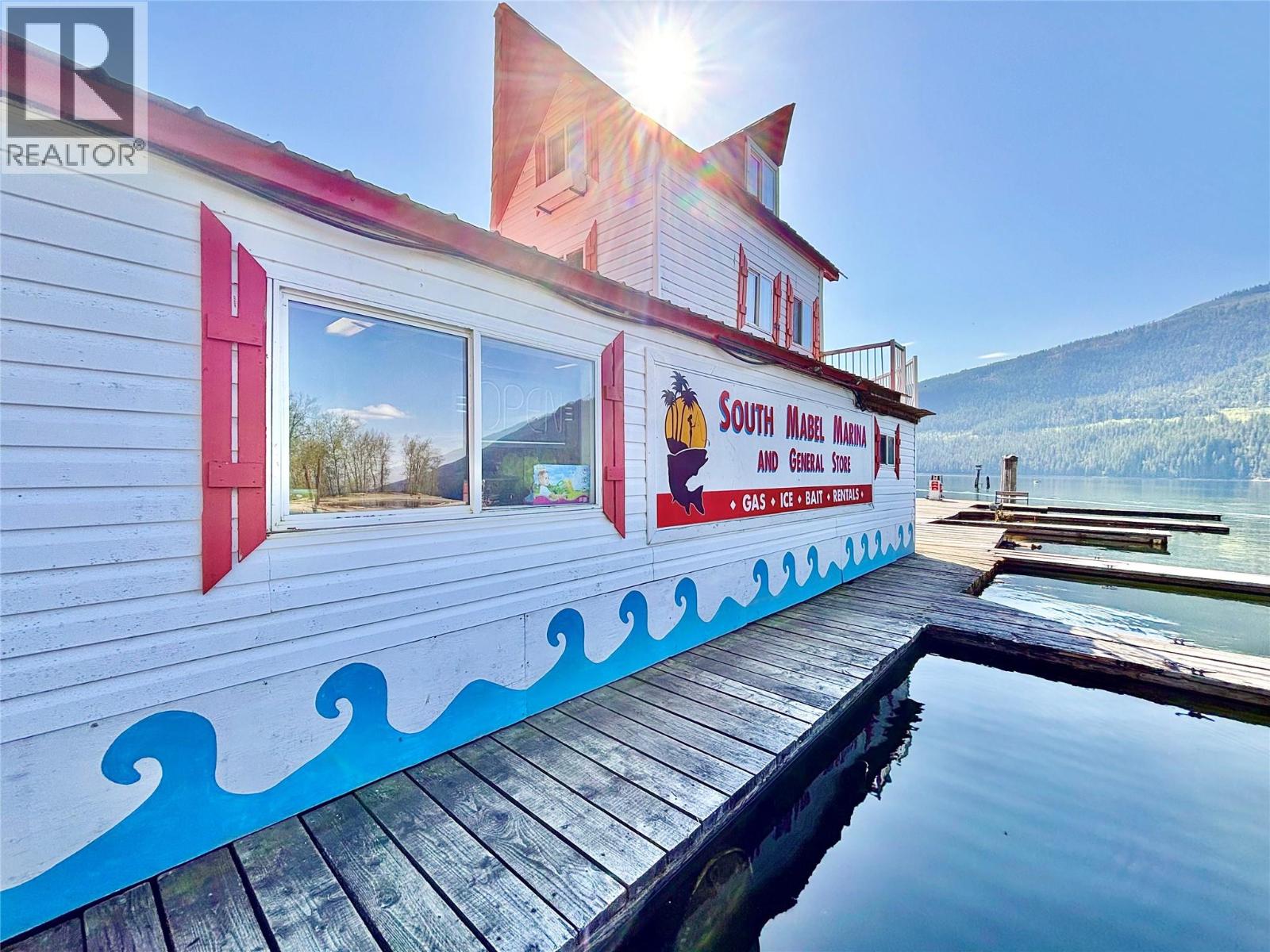 Welcome to South Mabel Marina! The only Marina and destination spot on the entire South end of Mable Lake, one of BC' deepest and most popular fishing lakes. The property consists of a 1.10-acre parcel of R-6 zoned waterfront land that comes improved with a cabin, covered trailer and a 22-boat slip Marina with gas pump, general store, bar w/ seating area, BBQ & additional residential unit. Several lakeview building sites on the waterfront acreage. The store carries an inventory that includes fish tackle, bread, milk, eggs, ice cream, fishing rods and camping supplies. Fishing charters also available. This is the only retail outfit on the South end of the lake. Located right next door to Mabel Lake Provincial Park, 100+ site campground & public boat launch which provides a never-ending stream of customers in summer along with the Mabel Lake Resort on the North end of the lake. Great opportunity to scale the business operations. Comes with several 2-stroke engine boats, canoes, paddle boats & much more. A full equipment list is available to potential buyers. (id:6770)