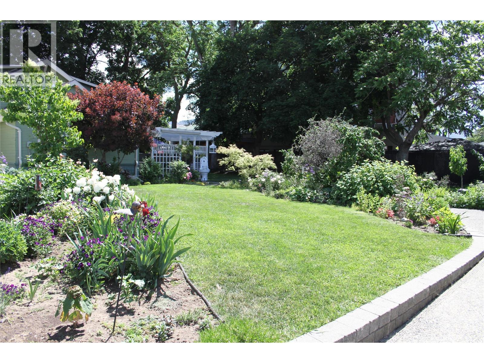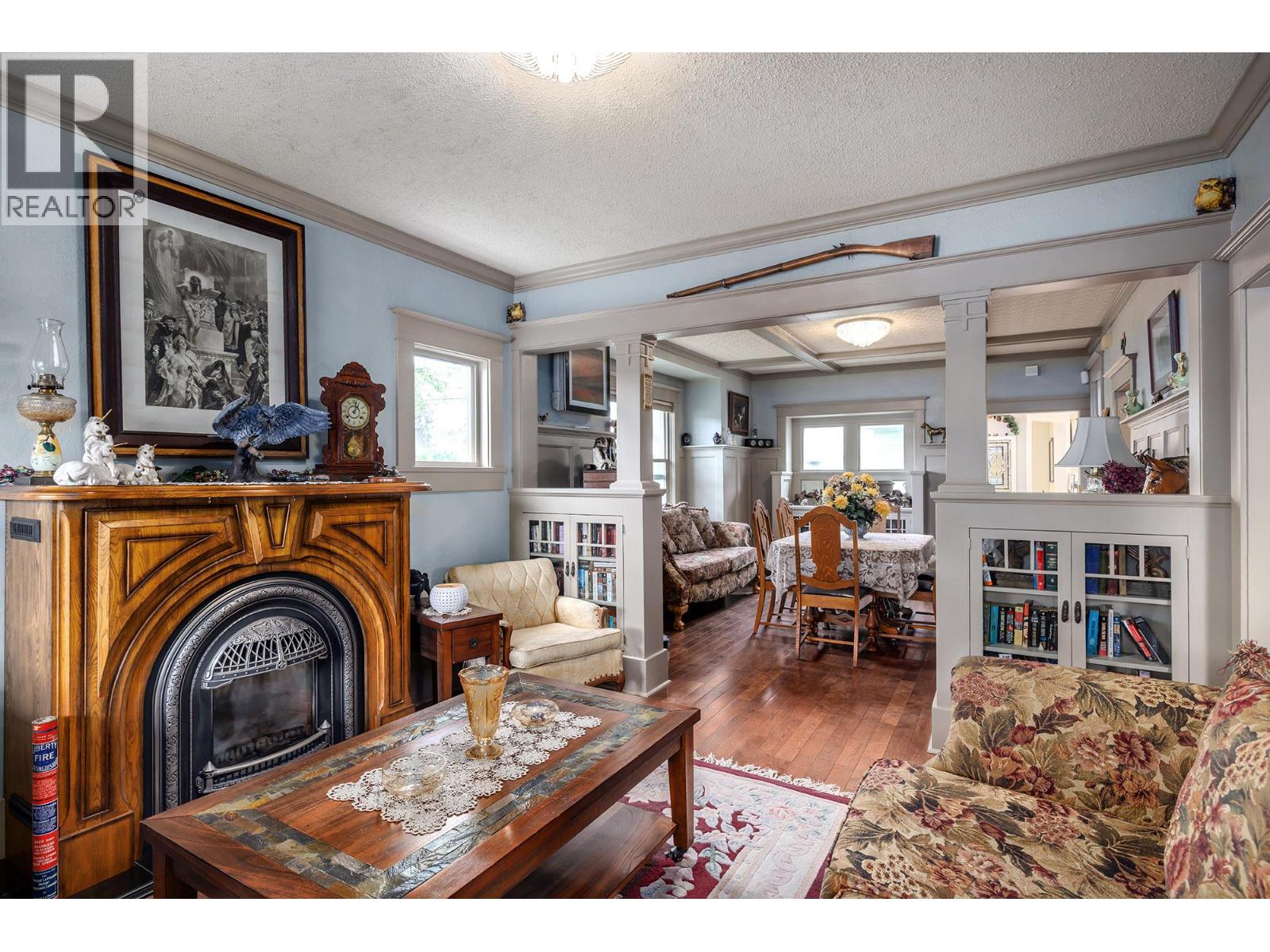 Reduced by $97,000 — Seller Ready to Consider All Serious Offers - Beautifully maintained 1913 Heritage home on a rare 0.3-acre lot in Kelowna, offers both charm and potential development opportunity. This exceptional property blends classic character with thoughtful modern updates. The traditional exterior reflects the home’s early 20th-century heritage, while the interior showcases warm, elegant living spaces. The expansive living and dining area features an ornate fireplace and large windows that fill the room with natural light—creating an inviting setting for everyday living or entertaining. This home provides three well-appointed bedrooms and two updated bathrooms that balance modern convenience with heritage appeal. The beautifully renovated kitchen includes stone countertops, a gas cooktop, upgraded appliances, and carefully preserved vintage details. A separate laundry room adds ease and functionality. Step outside to a stunning, fully landscaped yard highlighted by century-old Walnut and Hazelnut trees, along with many fruit tress and, berry bushes, flowering shrubs, and four raised vegetable beds - an ideal haven for gardeners. Enjoy the private, fully fenced outdoor space with a 6-person hot tub included. Additional features include a large double garage and generous outdoor areas, offering ample room for parking, play, gardening, or future expansion. An extraordinary opportunity to own a piece of Kelowna’s history with significant modern comforts (id:6770)