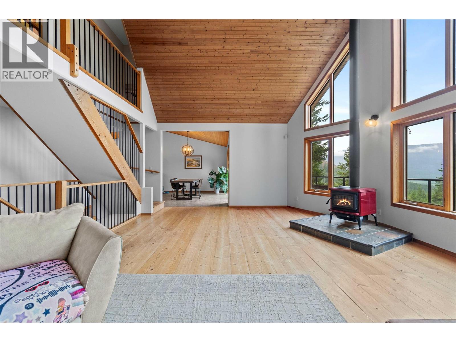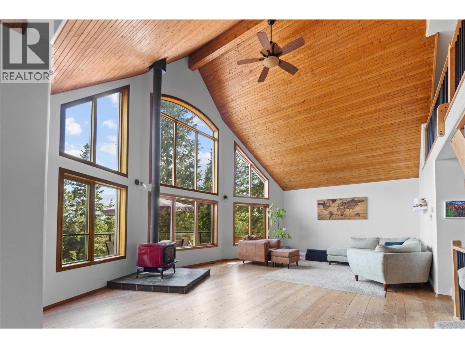 Rustic charm and modern comfort in this stunning 5.14-acre retreat. With 3,890 sq. ft., 5 bedrooms and 4 bathrooms, this home is designed for both relaxation and privacy. The heart of the home is the soaring A-frame style living room, where a wall of windows frames serene forest views and floods the space with natural light. Tongue-and-groove wood ceilings continue through the main living areas and inviting primary suite, adding warmth and character. The spacious kitchen is a chef’s delight, featuring a wall oven, gas range, and a peninsula with eating bar. An oversized sliding door from the dining area opens to an expansive deck, perfect for outdoor gatherings and soaking in the mountain views. The main floor also offers a generous primary bedroom with deck access, spa-inspired ensuite with soaker tub and walk-in shower, plus an additional bedroom or den, half bathroom, and laundry room. Upstairs, a loft overlooks the living room plus two more bedrooms & bathroom. The basement is the ultimate entertainment hub, with a large rec room, wet bar, and fifth bedroom with full bathroom. Outside offers abundant space for hobbies, animals, or whatever your needs may be. Outbuildings include a 24’ x 24’ workshop with attached double carport & equipment storage, 14’ x 10’ storage shed, 30’ x 22’ barn & chicken coop. The fully fenced and gated property offers exceptional privacy. This property is more than a home—it’s a lifestyle, offering peace, space, & endless possibilities. (id:6770)