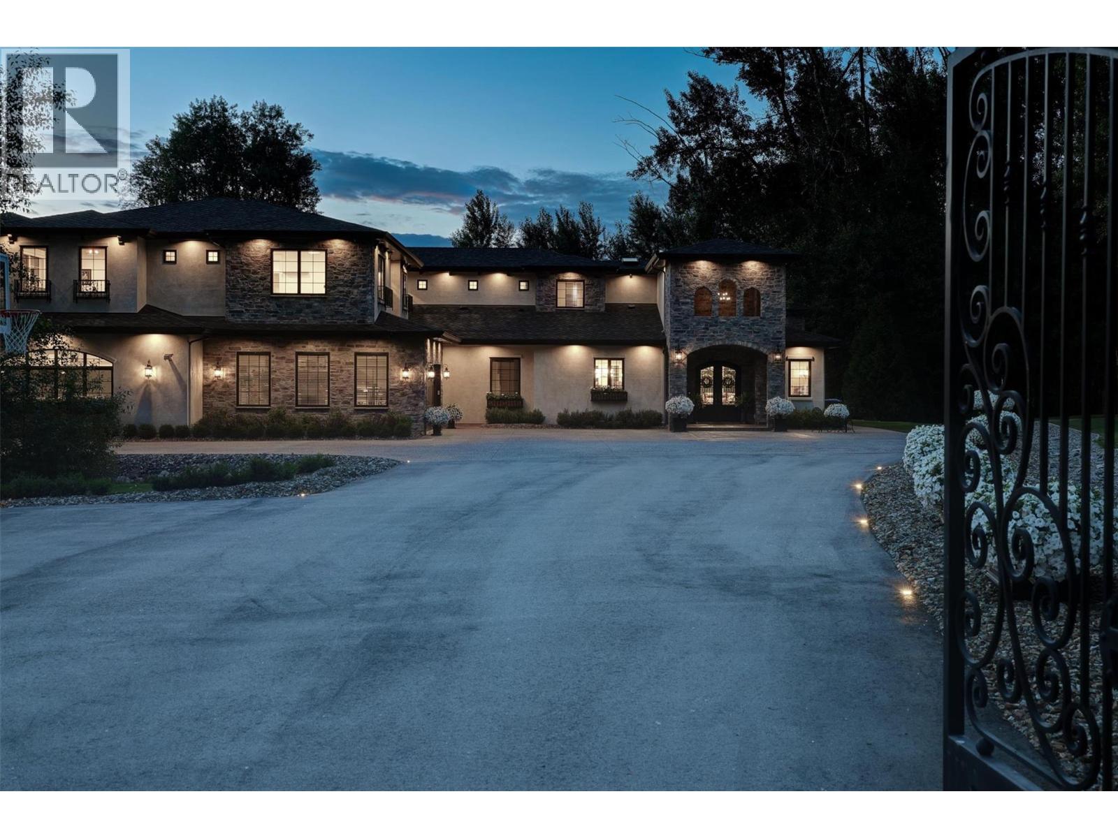 Picturesque estate in Southeast Kelowna resting on approximately 7+ pristine acres, with a Tuscan-inspired residence offering over 9000 sq. ft. of luxury living with 6 beds and 7 baths. This home has been uniquely divided into 2 separate living spaces, making it ideal for multi-generational living. Designed to be a private oasis for entertainment and tranquility, the property features a high-end concrete 20x40 saltwater pool with a Baja shelf, multiple patios for outdoor living with a fireplace & TV, an outdoor kitchen, a detached 25x40 shop, horse barn/paddock, raised garden boxes, and 3 ponds surrounding the yard, creating an exceptional ambiance. The main home has been beautifully designed for a large family; the upper level offers 4 beds, including a ""luxury hotel-like"" primary retreat with a spa-like ensuite. A custom media/home theatre and games room with deck access offer a high-end experience for the ""tech"" in the family. The separate accommodation offers quality finishes and a spacious design for the extended family/in-laws. This completely private space features 3 bedrooms, 3 bathrooms, an oversized garage, and a patio to enjoy the tranquility of the surrounding ponds. This is an excellent opportunity to enjoy a rural setting surrounded by vineyards, orchards, only minutes to Myra Canyon recreational park for hiking/biking, trail riding, and the City of Kelowna amenities. (id:6770)